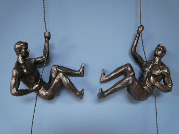 This set of two Antique Copper Abseiling Men sculptures showcases exceptional craftsmanship, expertly crafted from durable resin. Their intricate design captures the dynamic motion of abseiling, making them a striking addition to any art collection or interior décor. Durable and finely detailed, these pieces combine artistic appeal with lasting quality.