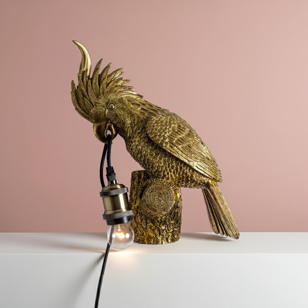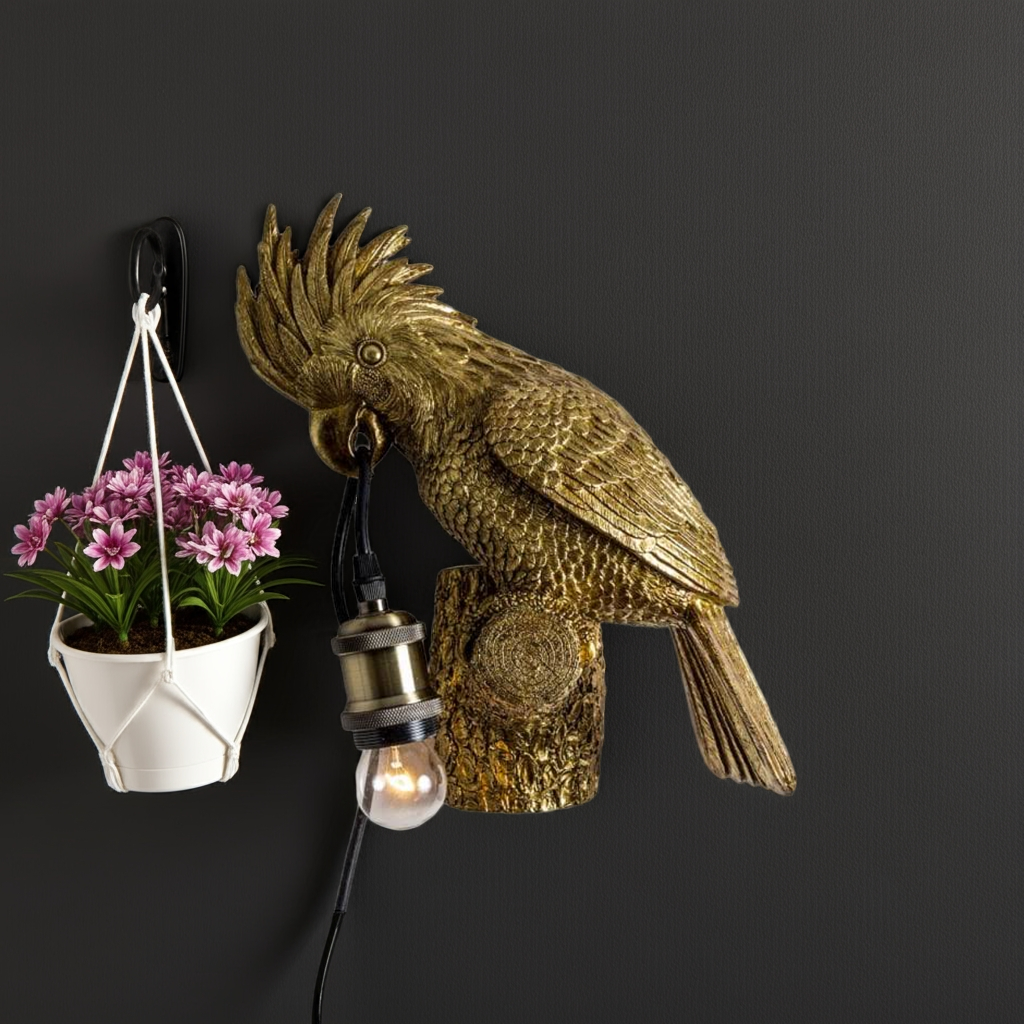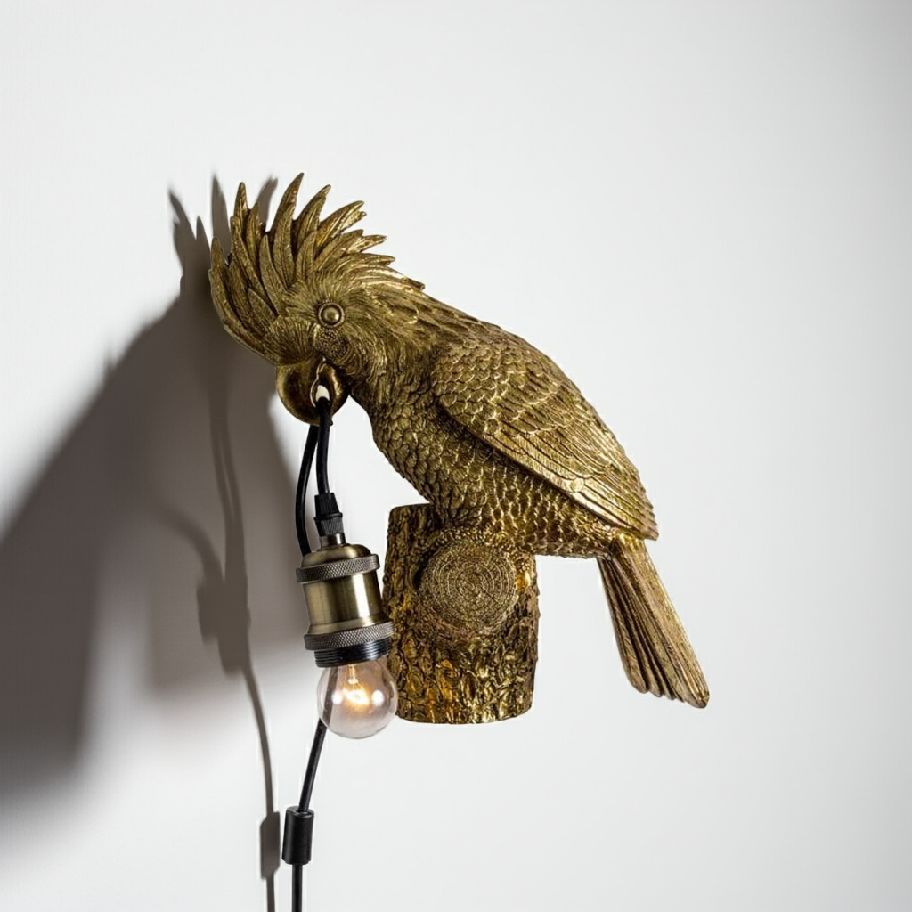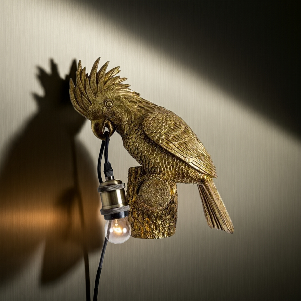Add a touch of charm and sophistication to your home with our Antique Gold Cockatoo on Perch Wall Lamp. Made with high quality materials, this beautifully crafted lamp will bring a warm and inviting glow to any room. The bright golden color and unique design make it a truly eye-catching piece of wall decor that is sure to be loved by pet lovers and interior design enthusiasts alike. Elevate your home decor with this professionally crafted and one-of-a-kind wall lamp.