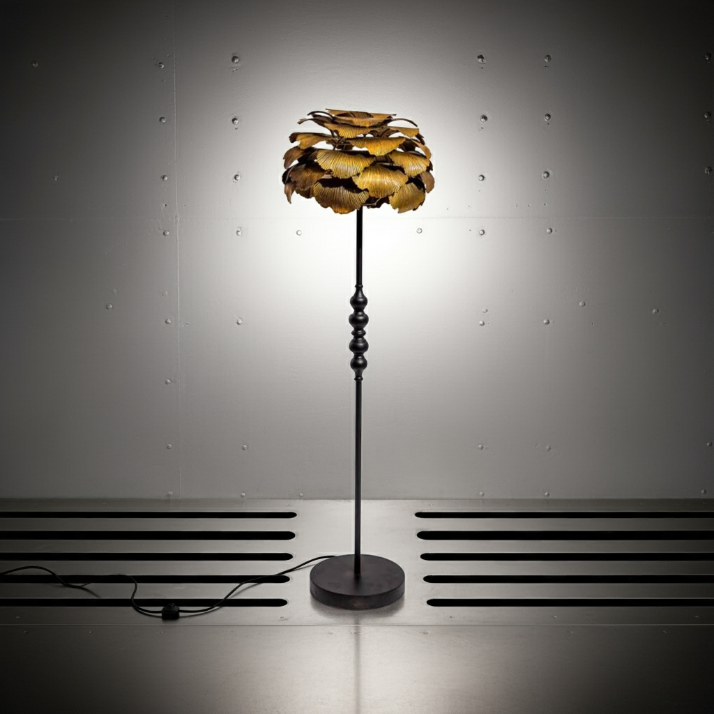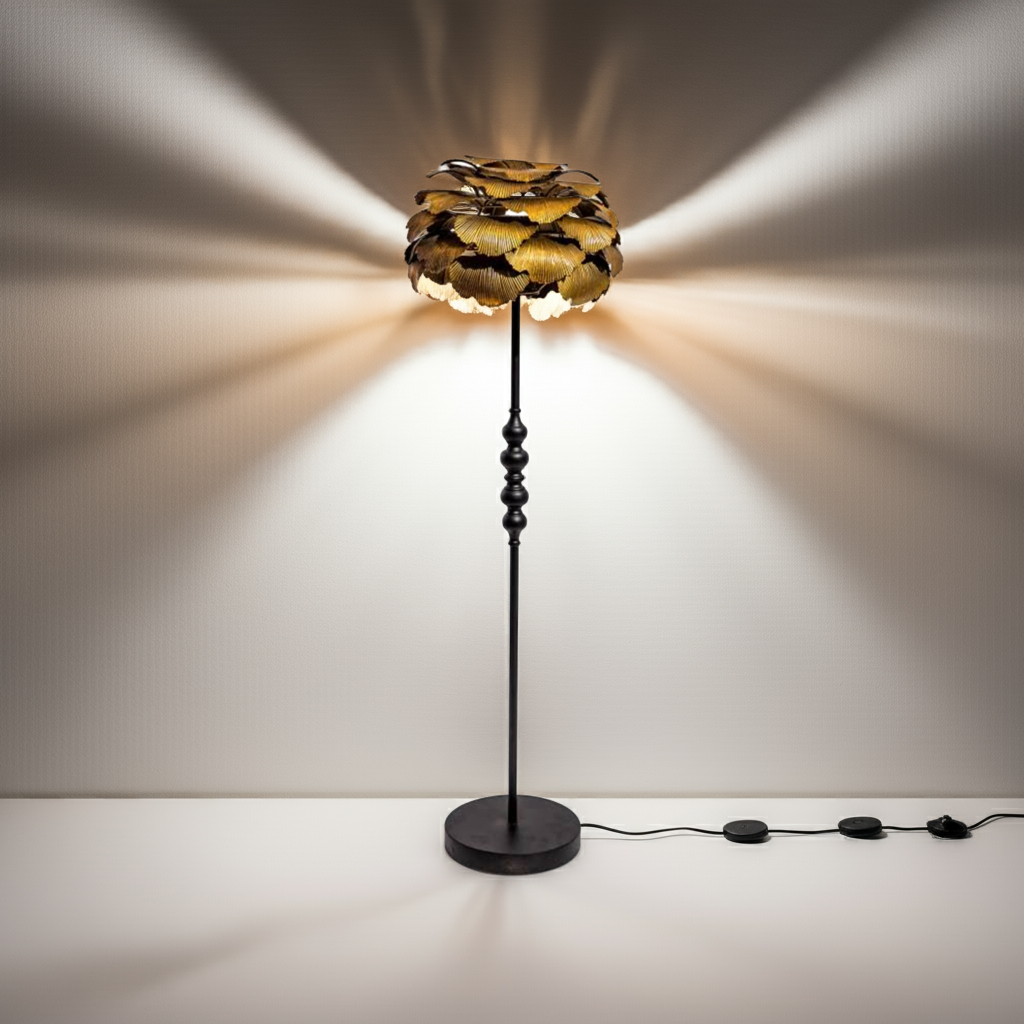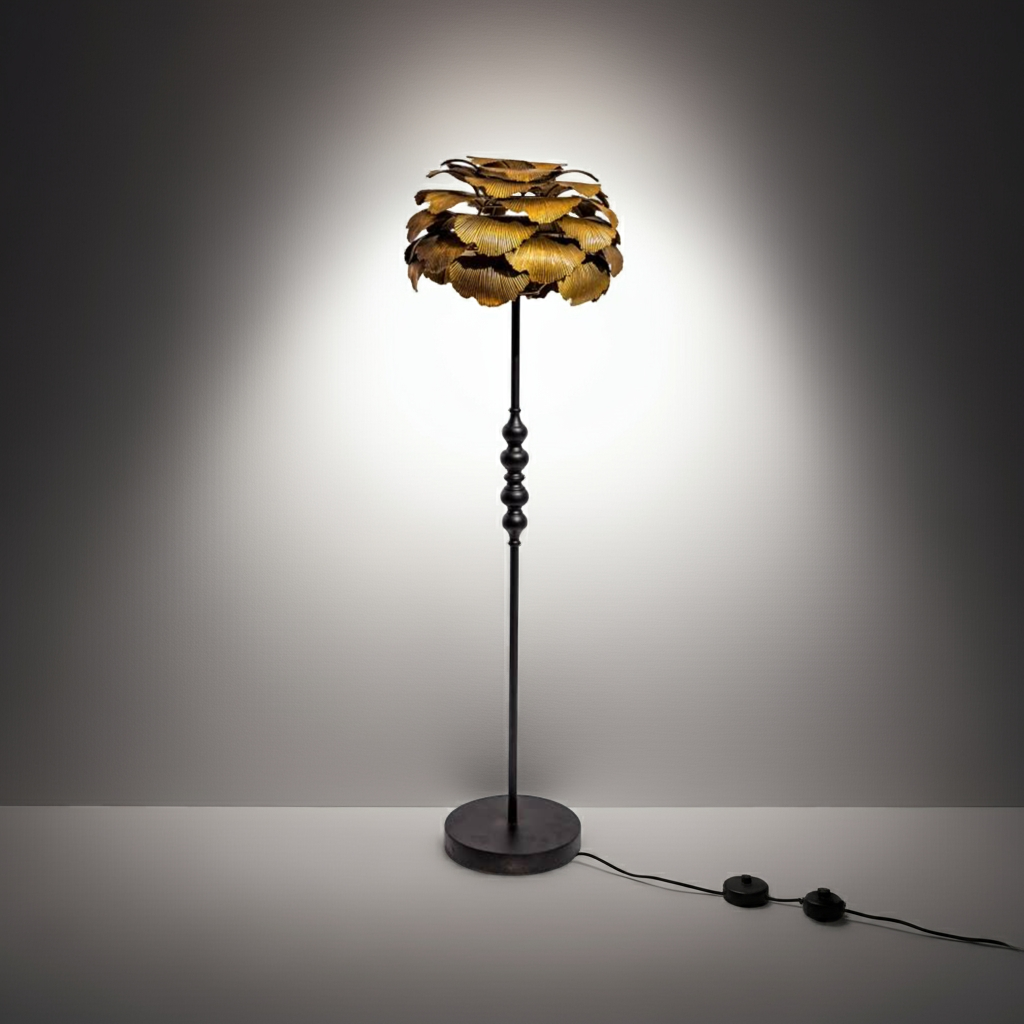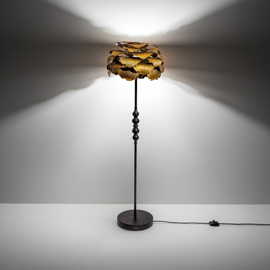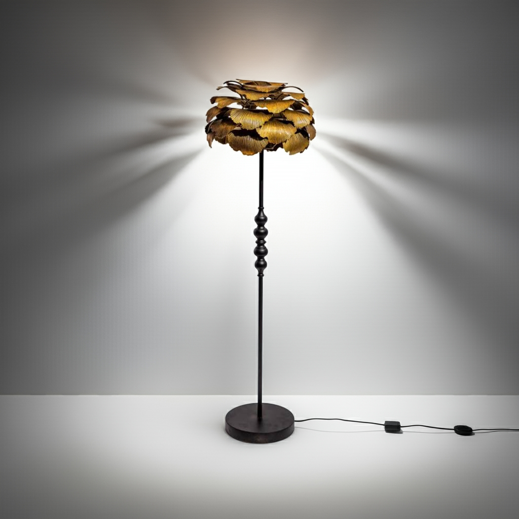 Elevate your interior with the Antique Gold Gingko Leaf Floor Lamp, a striking blend of artistry and durability. Crafted from robust metal, this lamp offers lasting quality while its unique gingko leaf design adds a luxurious, eye-catching element to any room. Perfect for those seeking a distinctive statement piece that combines function with refined elegance.