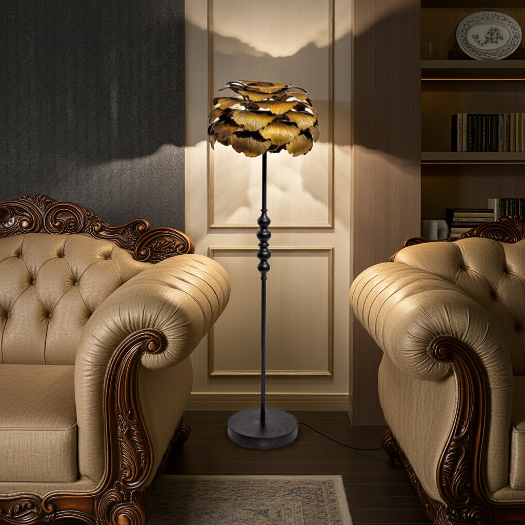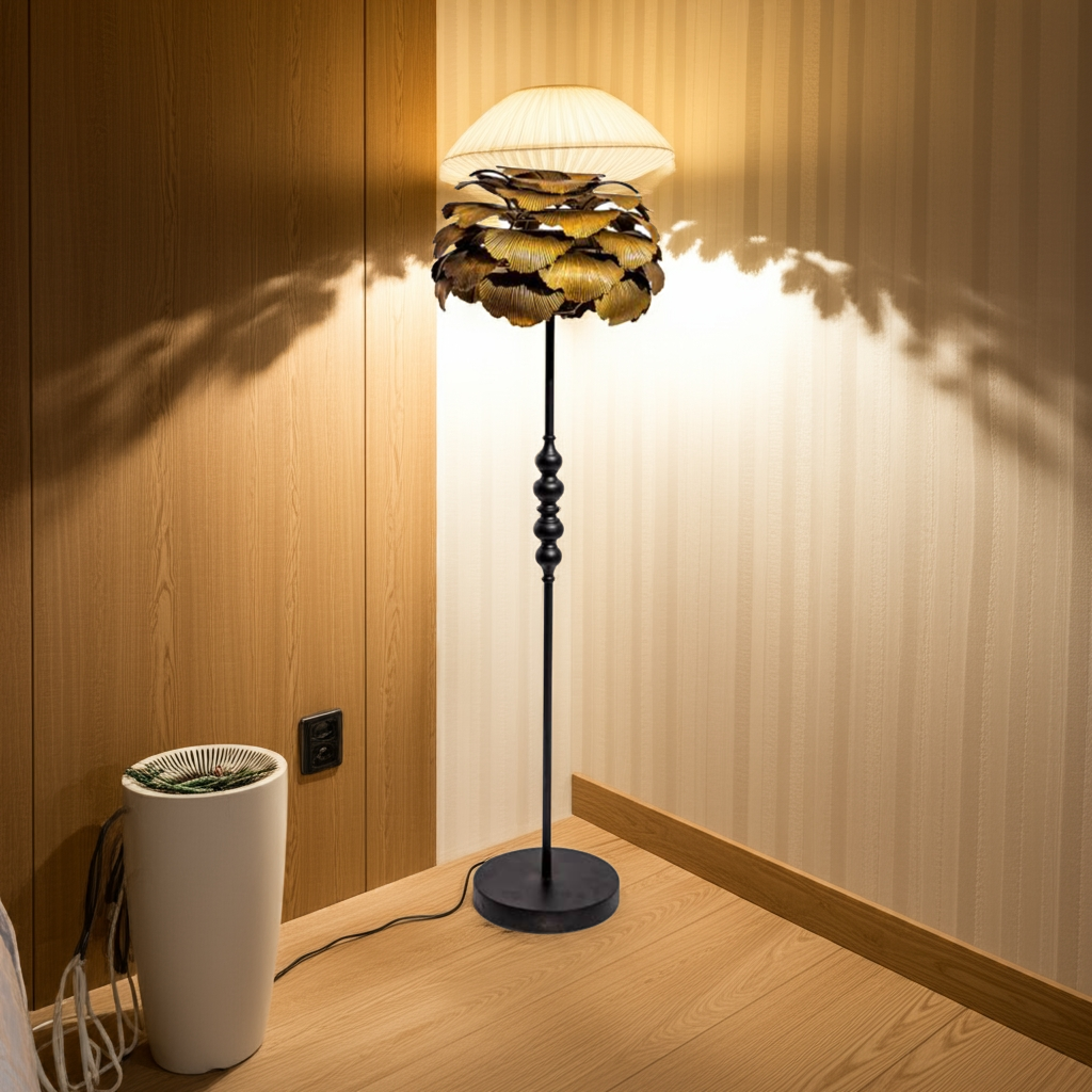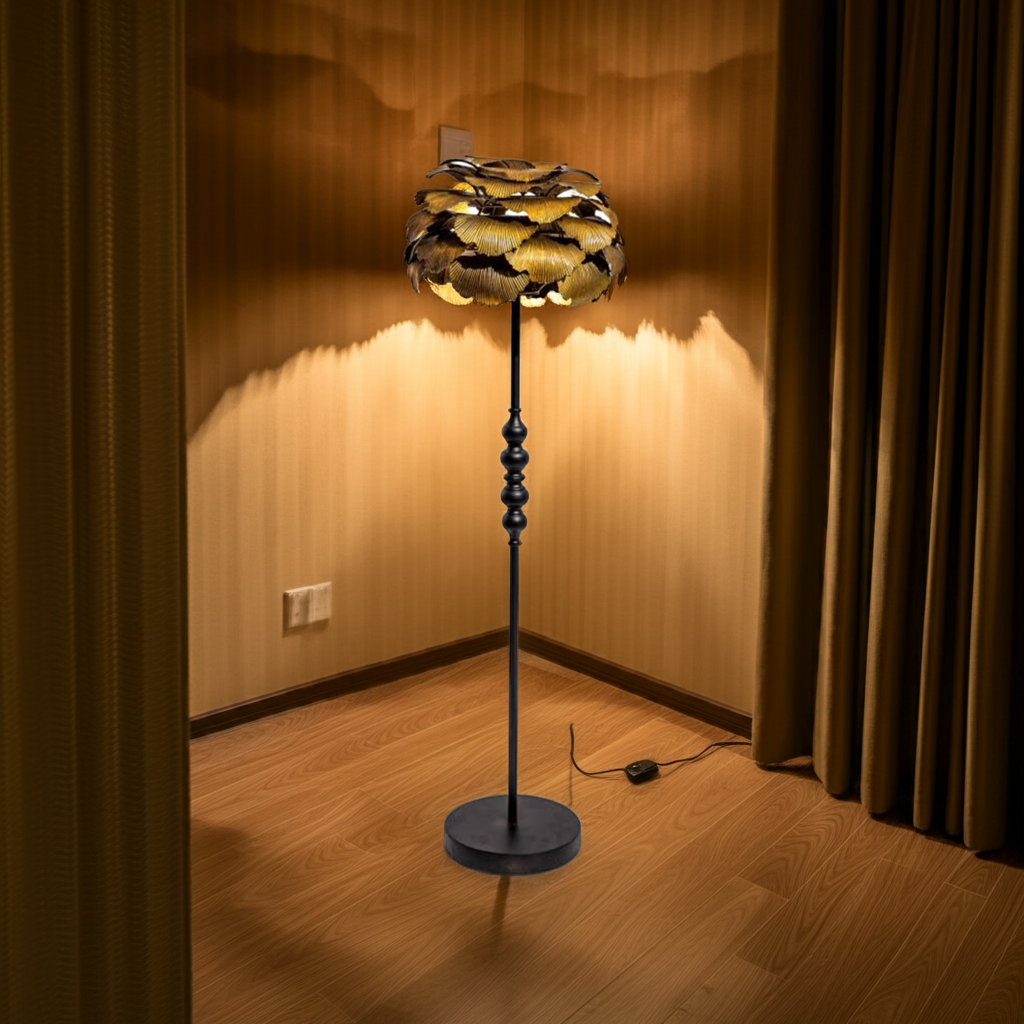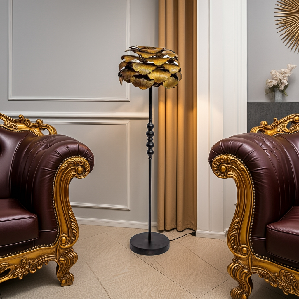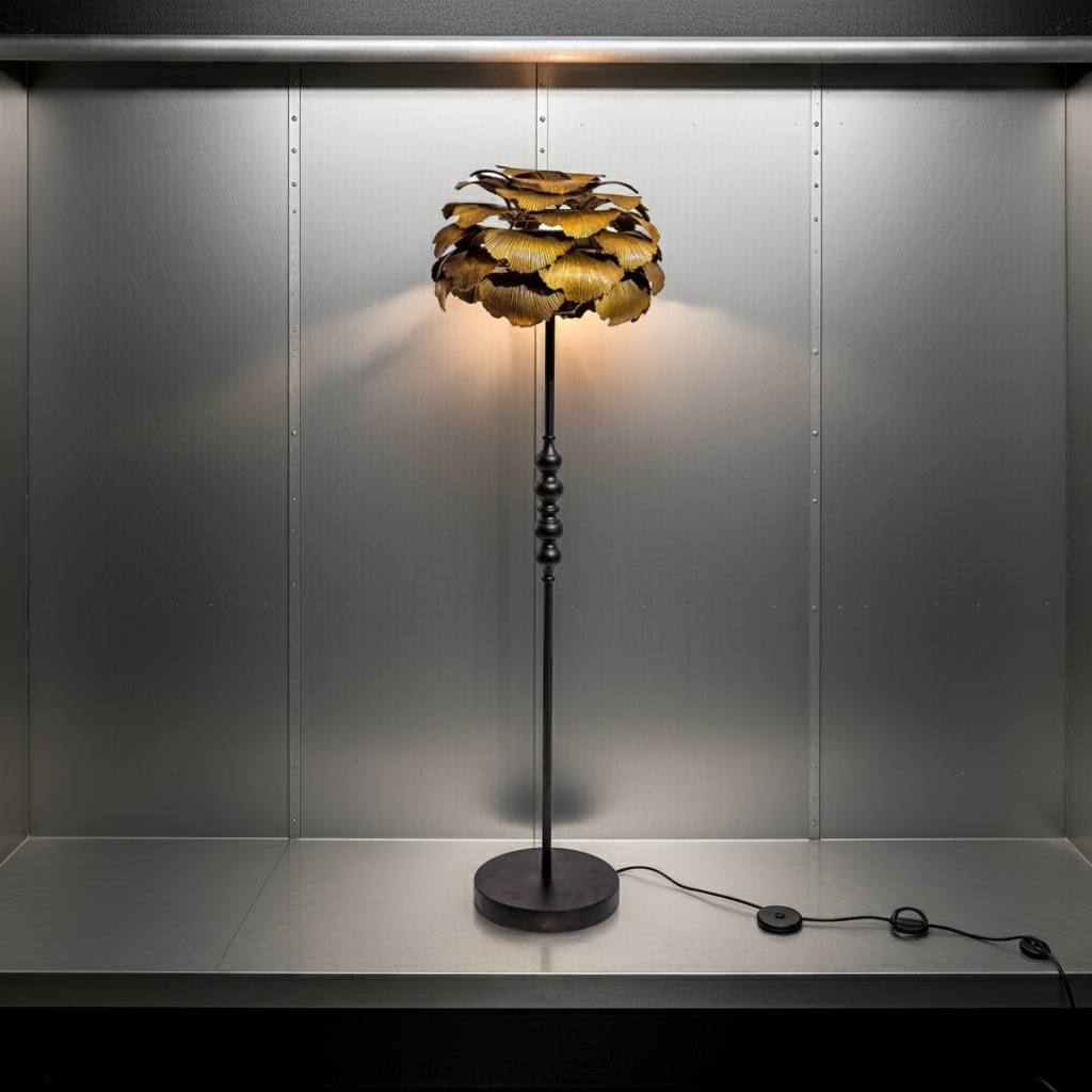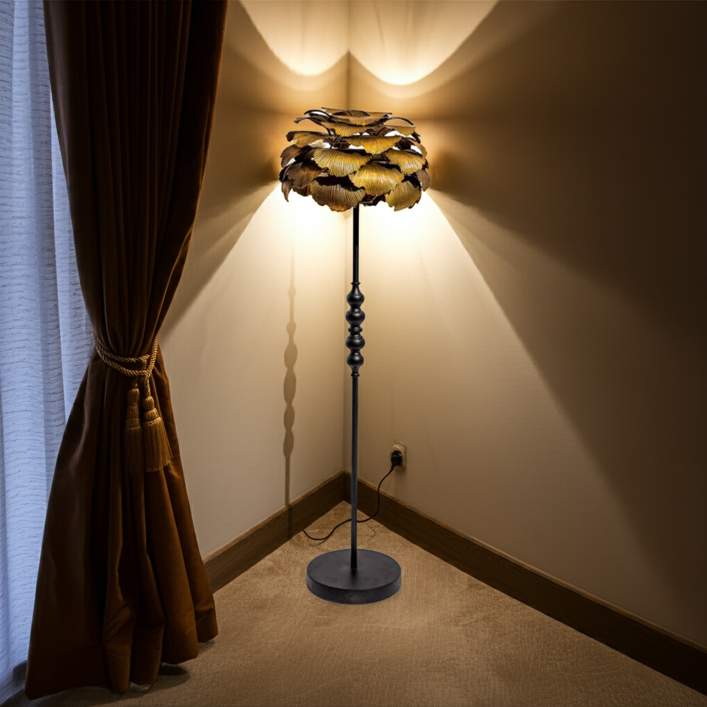 Elevate your interior with the Antique Gold Gingko Leaf Floor Lamp, a striking blend of artistry and durability. Crafted from robust metal, this lamp offers lasting quality while its unique gingko leaf design adds a luxurious, eye-catching element to any room. Perfect for those seeking a distinctive statement piece that combines function with refined elegance.