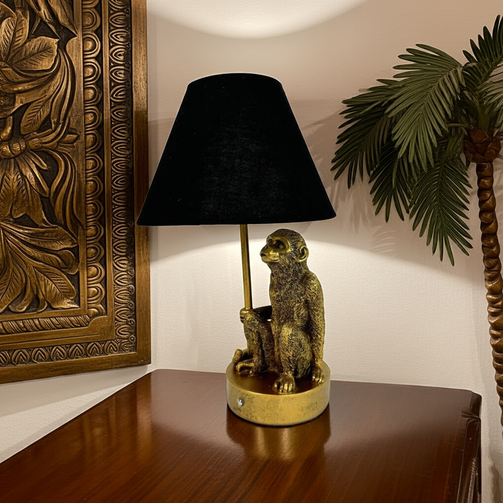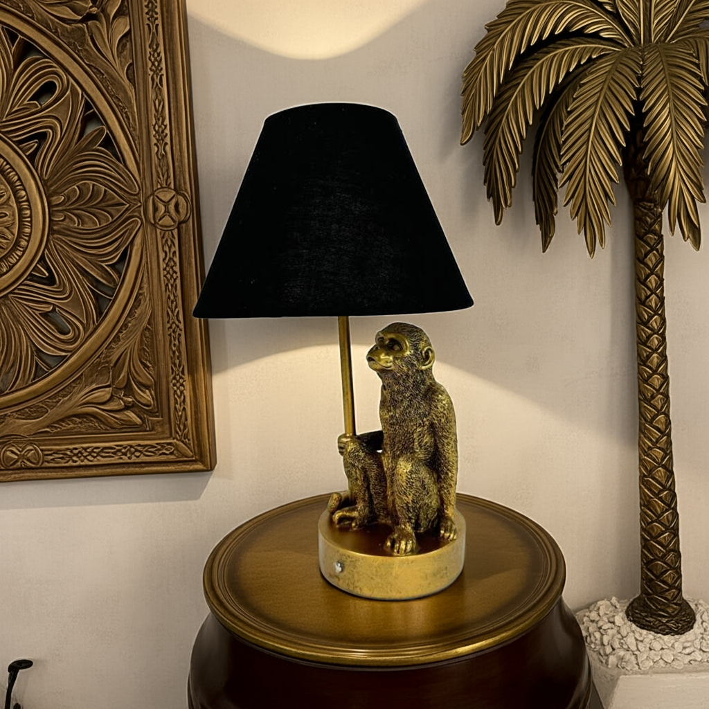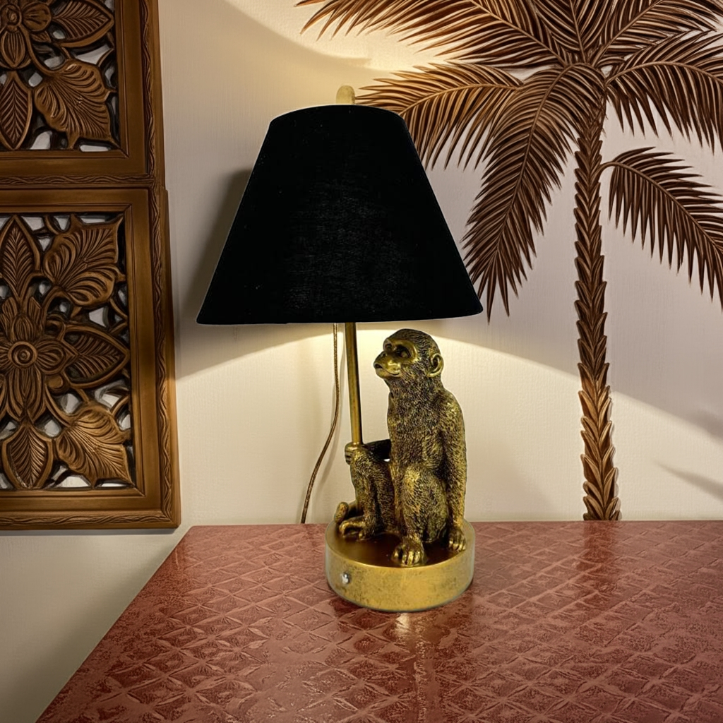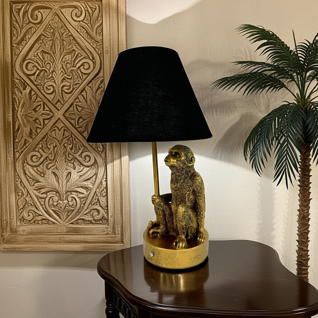 Introducing the Antique Gold Monkey Lamp with Black Shade, perfect for adding a touch of whimsy to any room. With 3 different light settings, this unique lamp offers both style and functionality. Enhance your home decor with this one-of-a-kind piece.