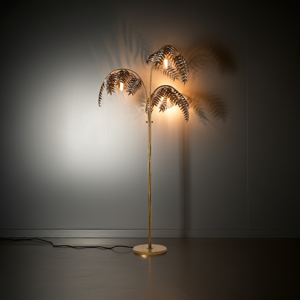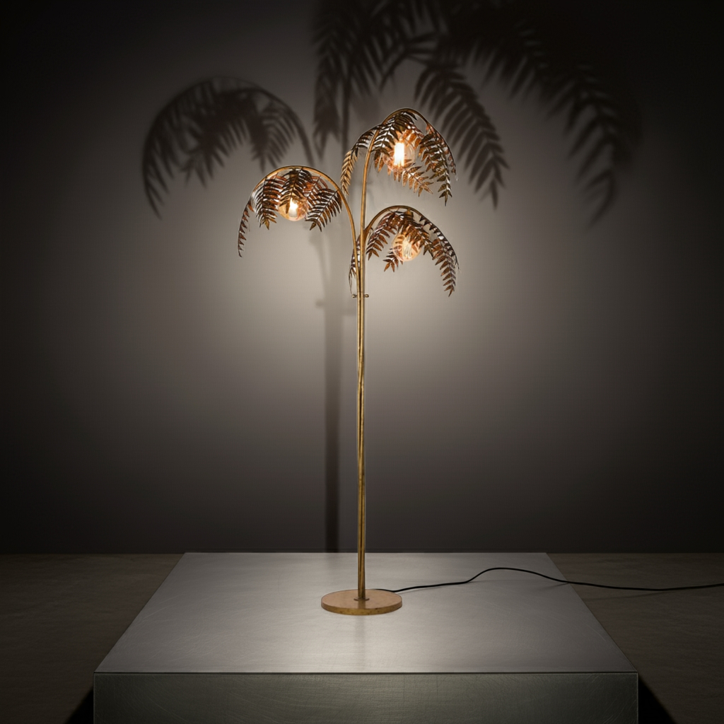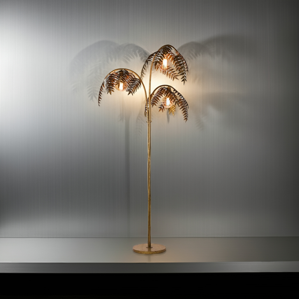 The Antique Gold Palm Leaf Floor Lamp is a beautifully crafted piece designed to enhance any living space. Its intricate palm leaf design adds a touch of elegance, while its sturdy construction ensures long-lasting use. A must-have for those looking to elevate their home decor.