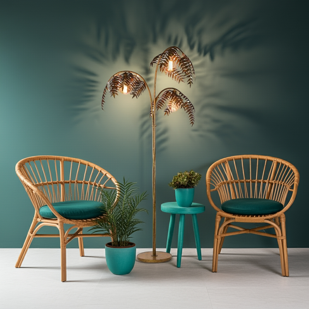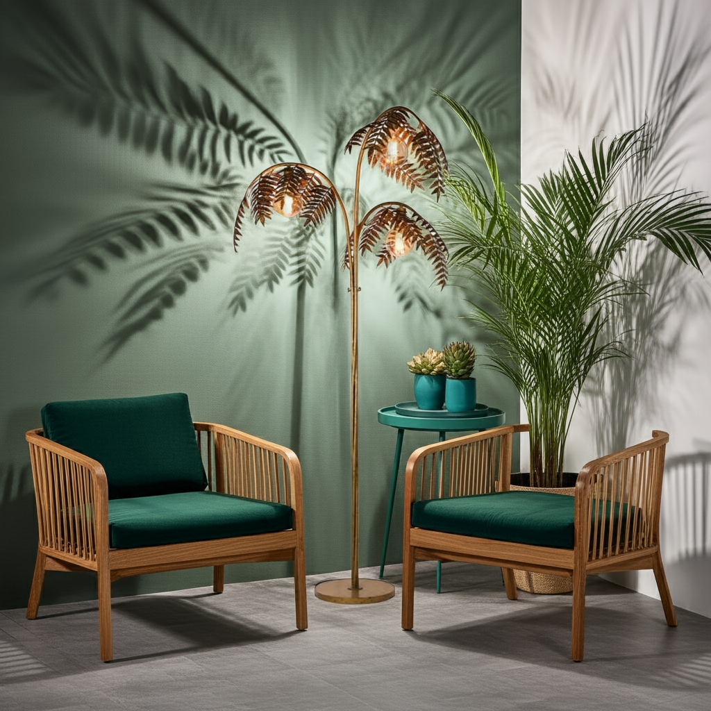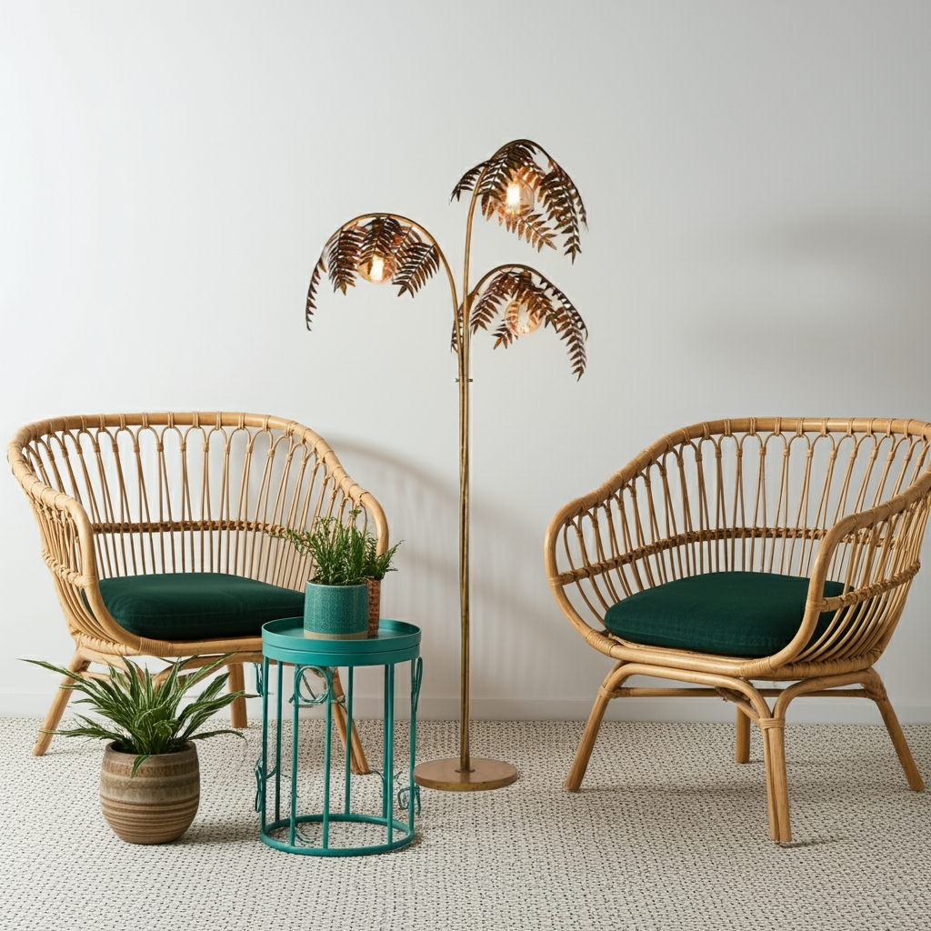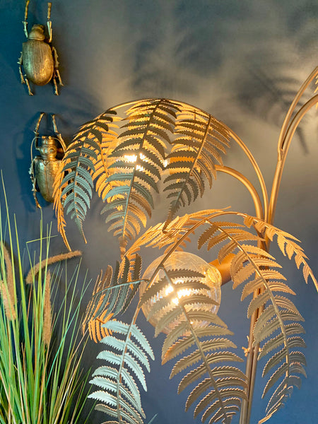 The Antique Gold Palm Leaf Floor Lamp is a beautifully crafted piece designed to enhance any living space. Its intricate palm leaf design adds a touch of elegance, while its sturdy construction ensures long-lasting use. A must-have for those looking to elevate their home decor.