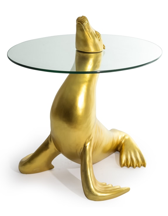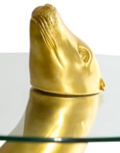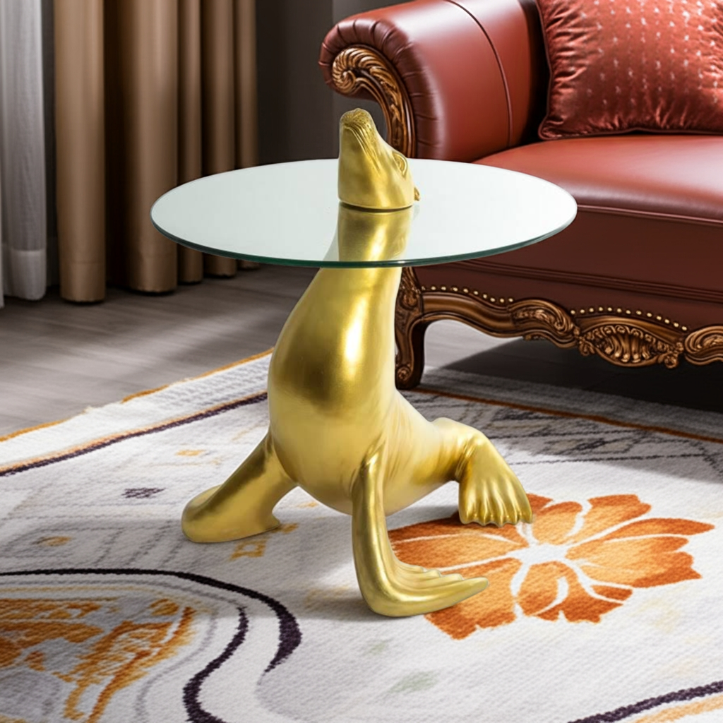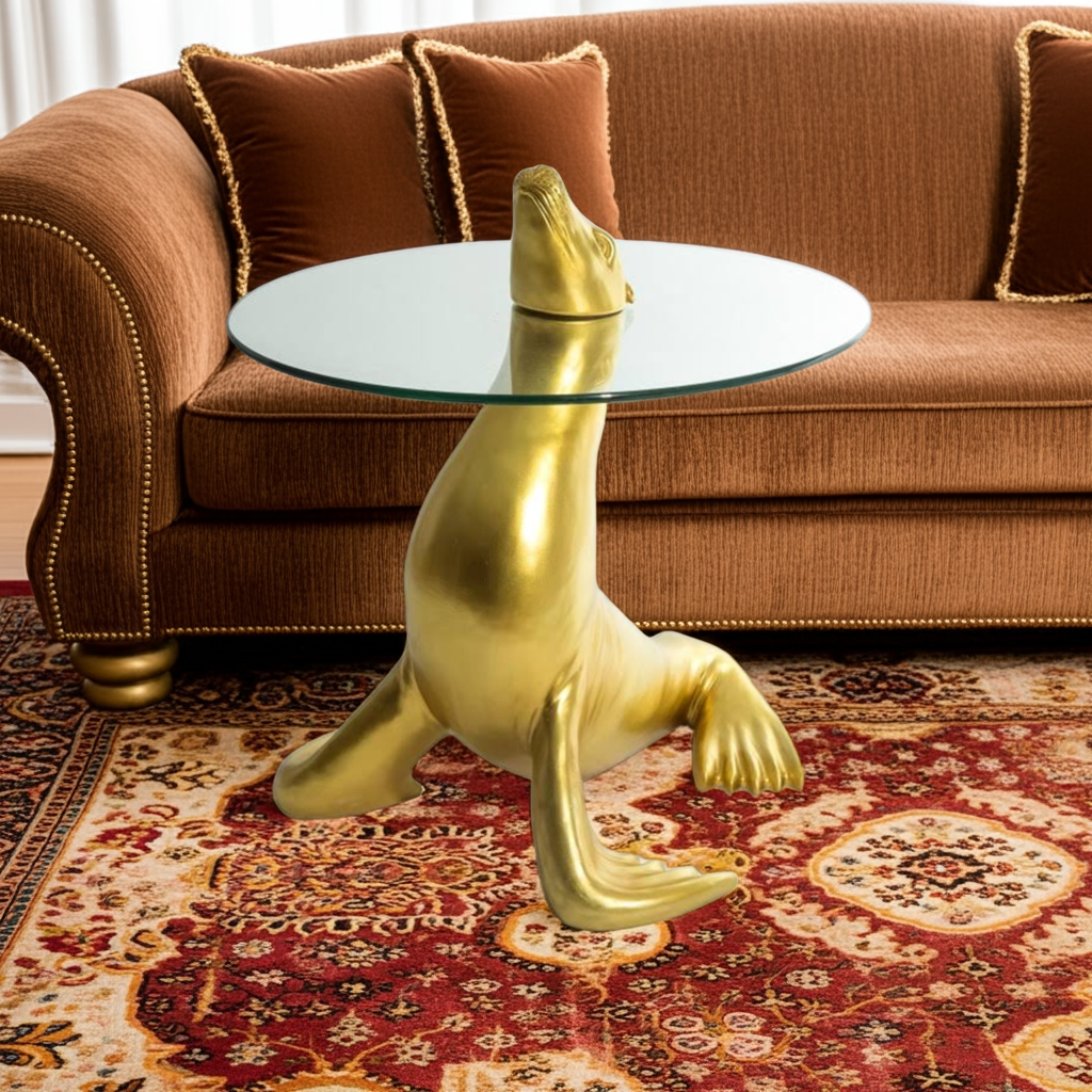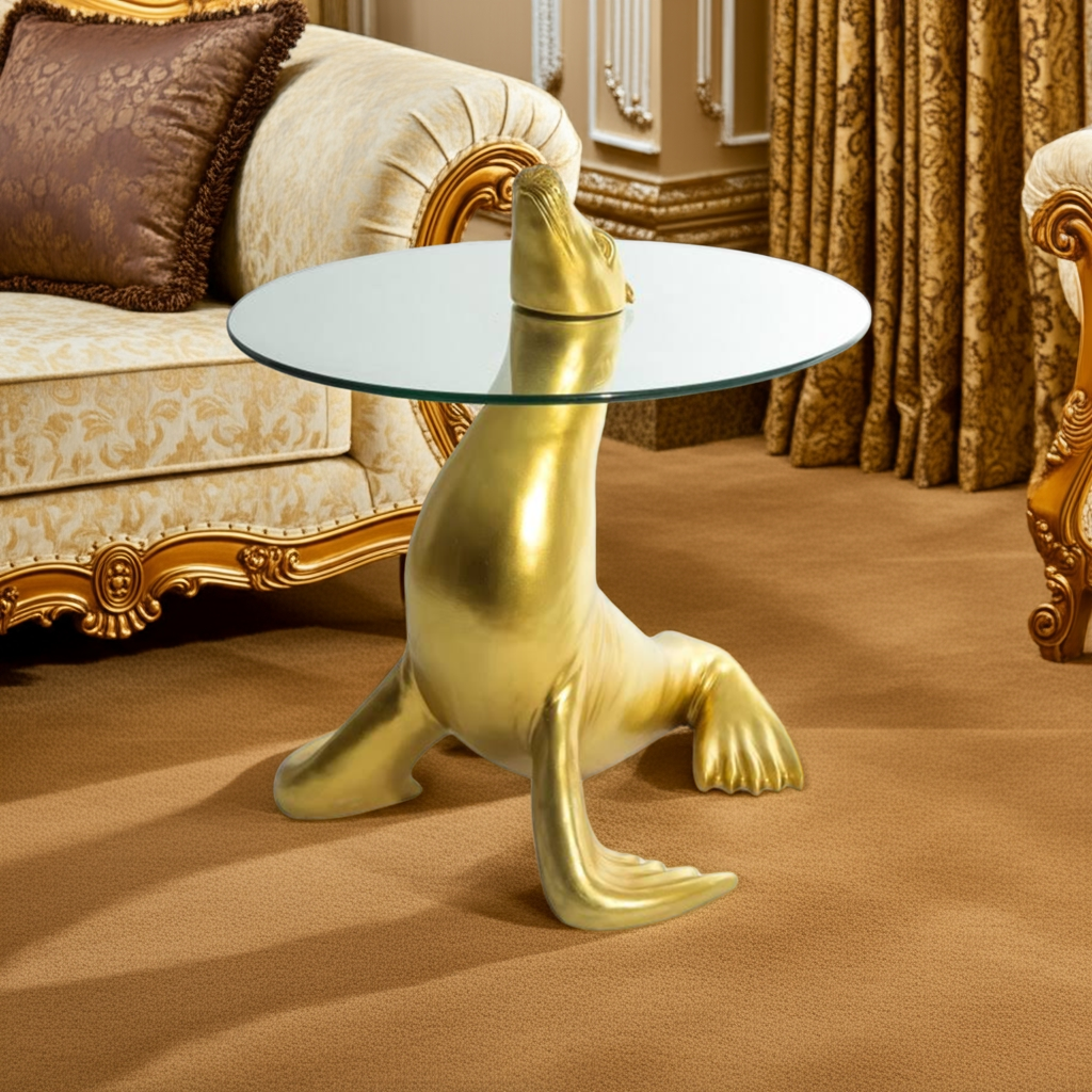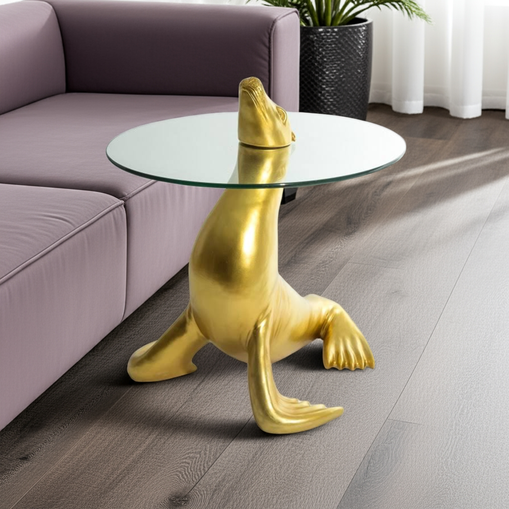 Antique Gold Side Table by Decor Vibes adds a sophisticated coastal charm to your living space. Crafted from durable resin and finished in a luxurious antique gold tone, it features a beautifully sculpted seal base paired with a sleek glass top. This statement piece offers the perfect balance of elegance and personality, making it ideal as a side or coffee table in your home. With Decor Vibes, you can style your space with furniture that feels truly unique.