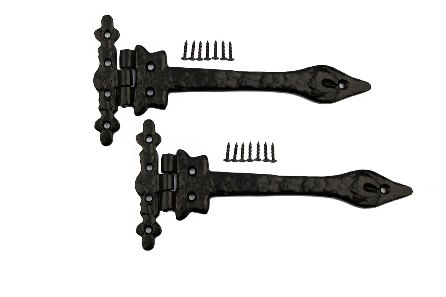 Antique Black spear end tee hinges finished in antique black, Size: 14 inches, supplied with matching fixing screws. High-quality cast iron, ready to ship in 1 day.