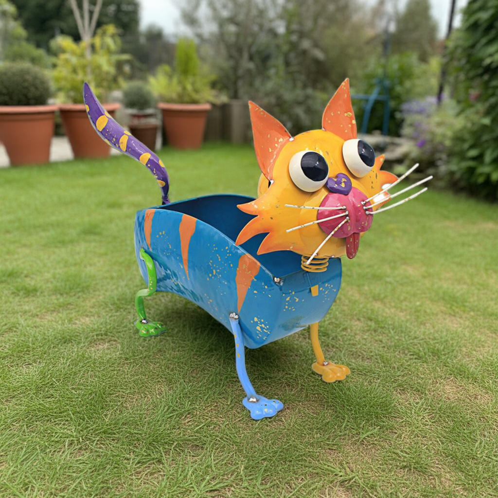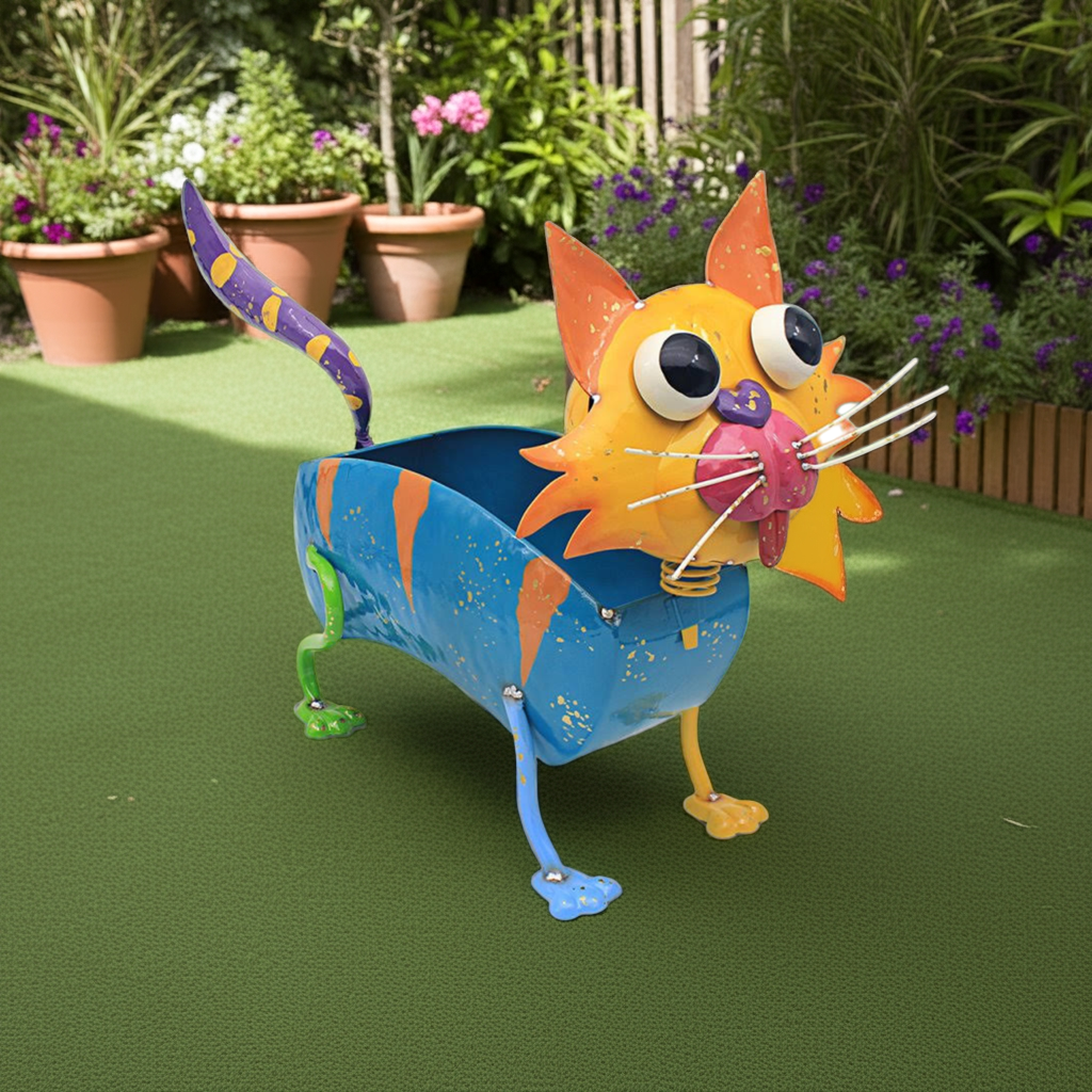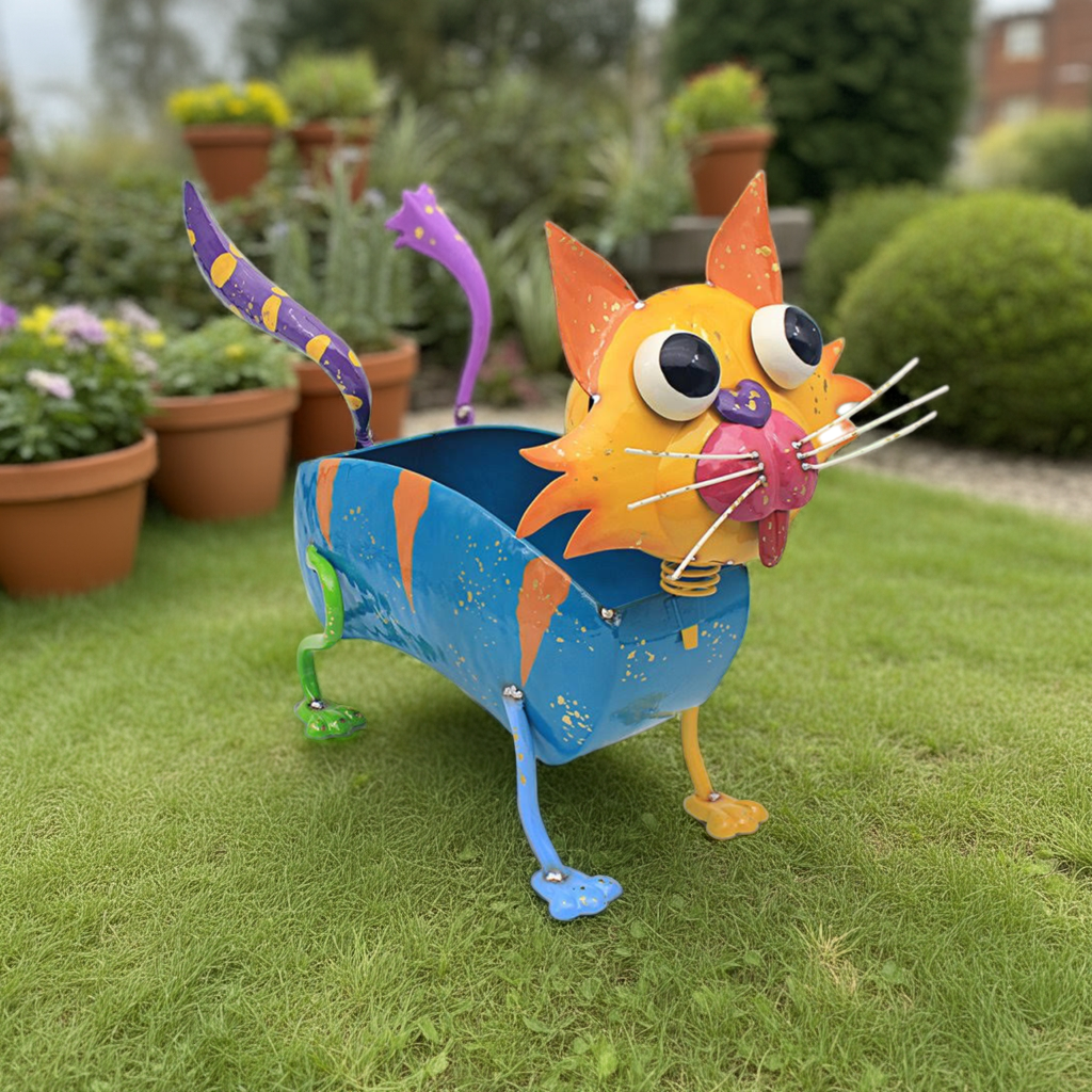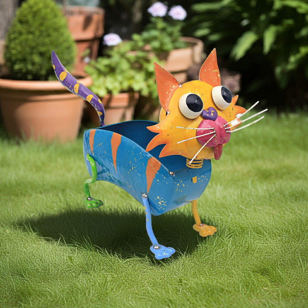 The Bright Eyes Cat Plant Pot is a unique and attractive addition to any indoor or outdoor space. With its colorful design and moving head feature, it is sure to catch the eye and bring a playful touch to your home. Perfect for any plant lover looking to add a touch of personality to their decor.