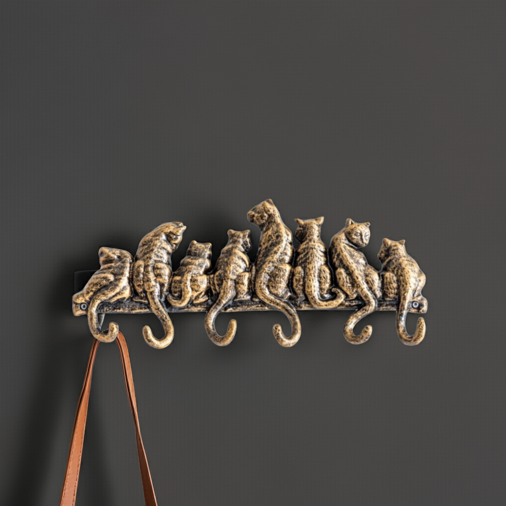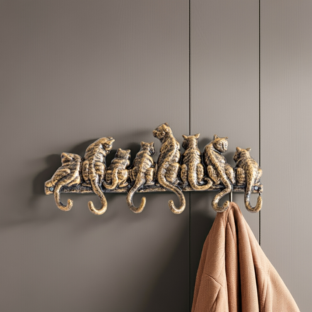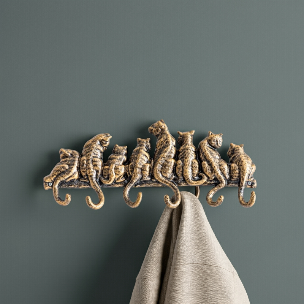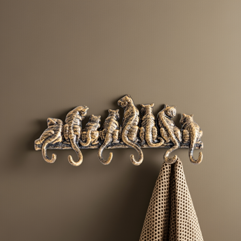Update your home decor with these playful and functional BRONZE COLOURED CAST IRON CATS COAT HOOKS. Made of durable cast iron, these hooks add a touch of whimsy to your space while keeping your coats and accessories organized. With their bronze finish, these hooks are both charming and practical.