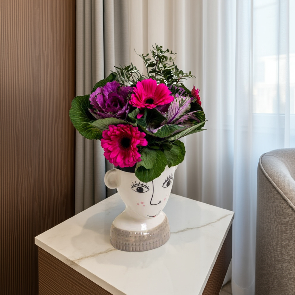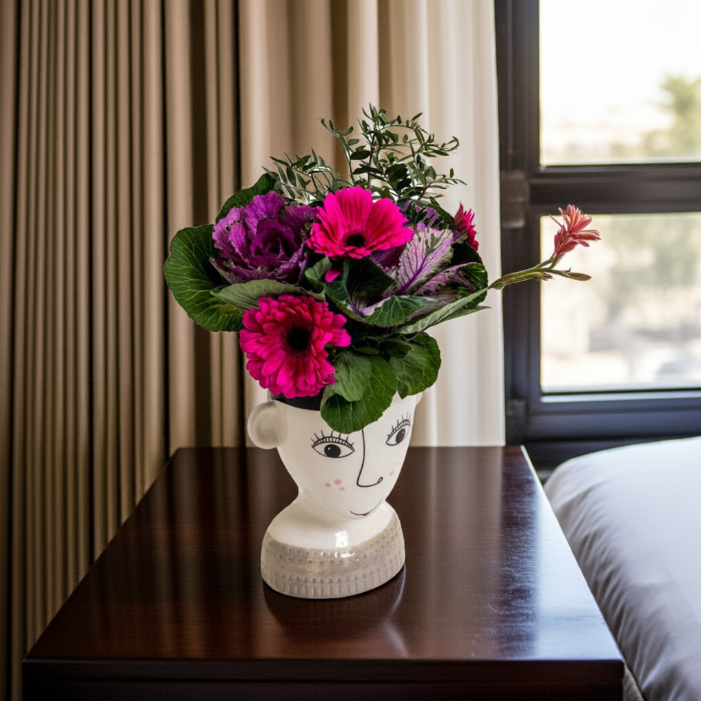 This Ceramic Doodle Woman's Face Vase features a freckled design, adding a touch of whimsy to your home decor. Made of high-quality ceramic, it adds a unique and artistic touch to any space. Perfect for holding flowers or as a standalone piece, this vase is a must-have for any art lover.
