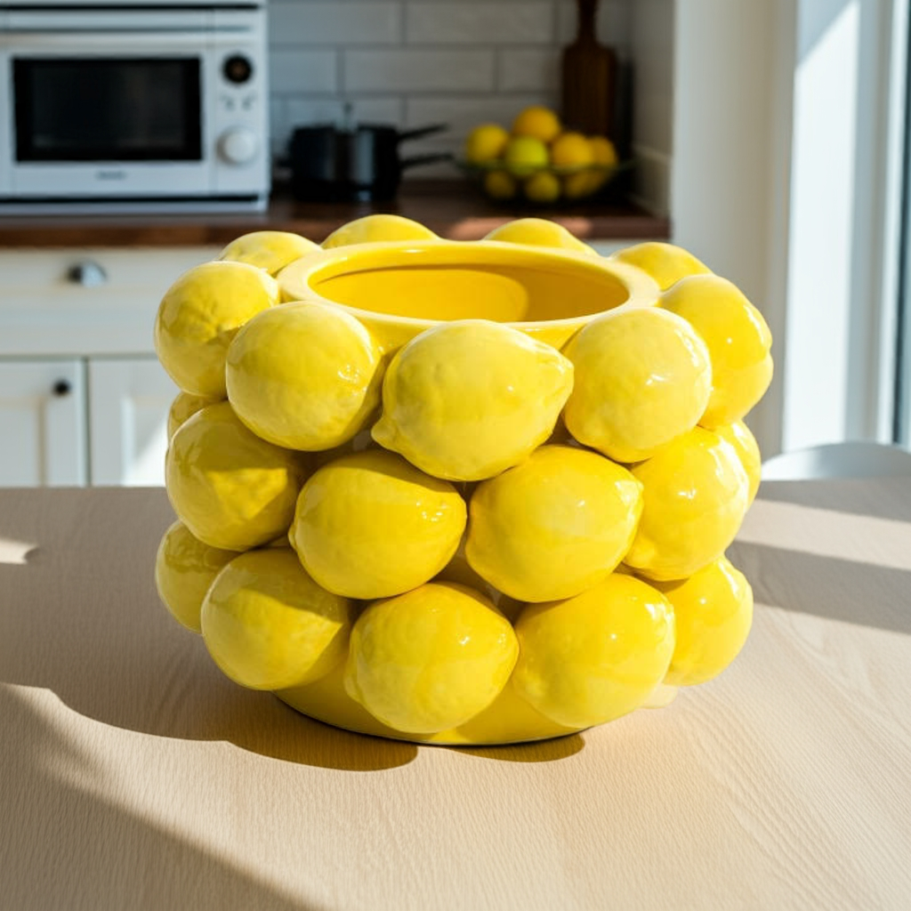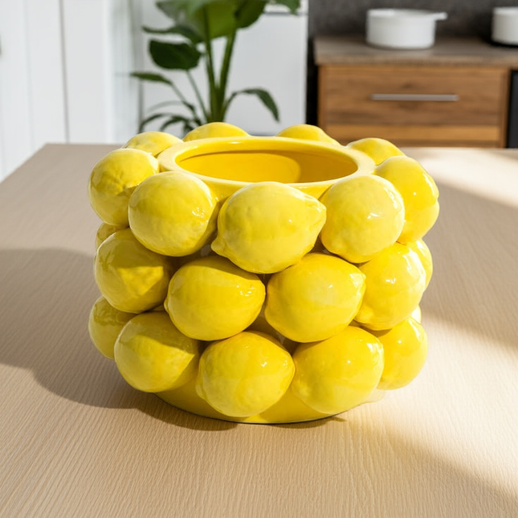 Crafted with precision, this ceramic bowl/vase is a professionally high crafted piece. The realistic multi lemon design adds a touch of sophistication to any space. The vibrant colors are eye-catching and will surely enhance your home or office decor.