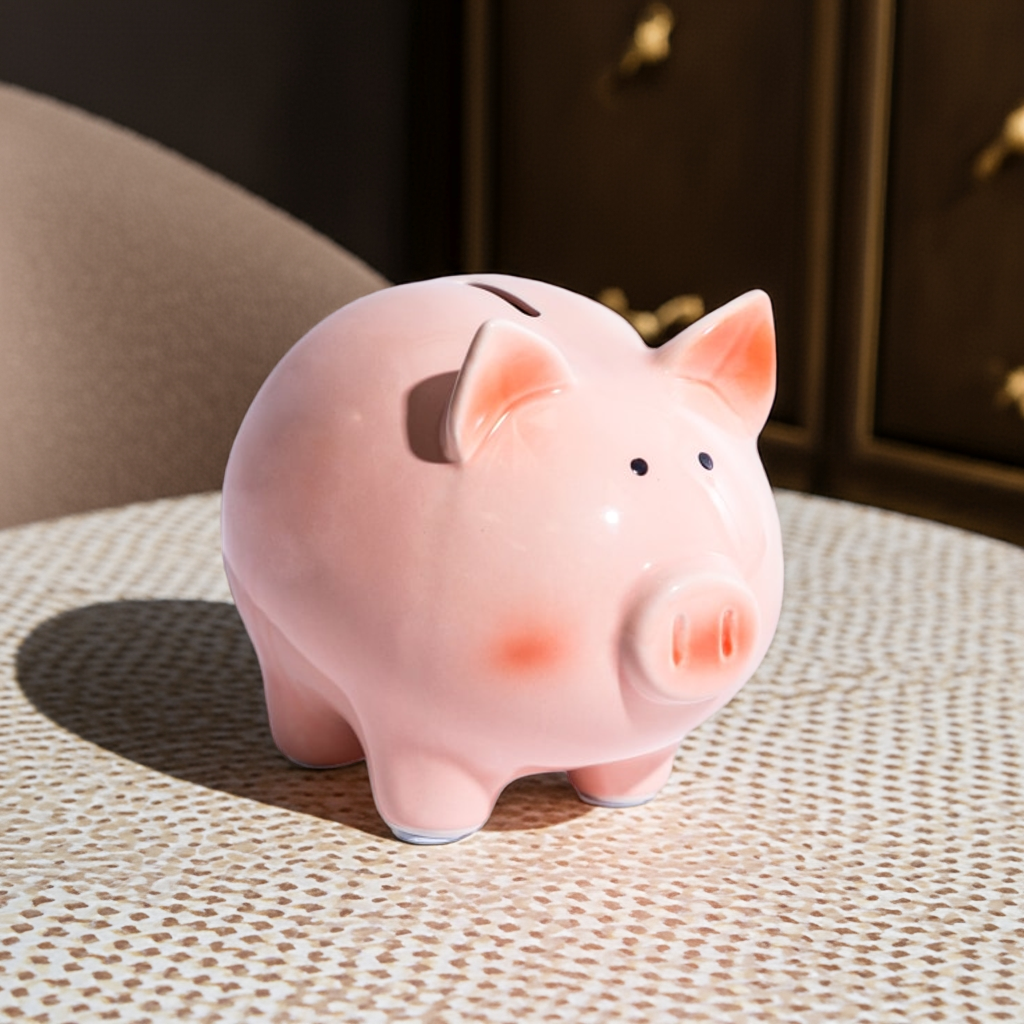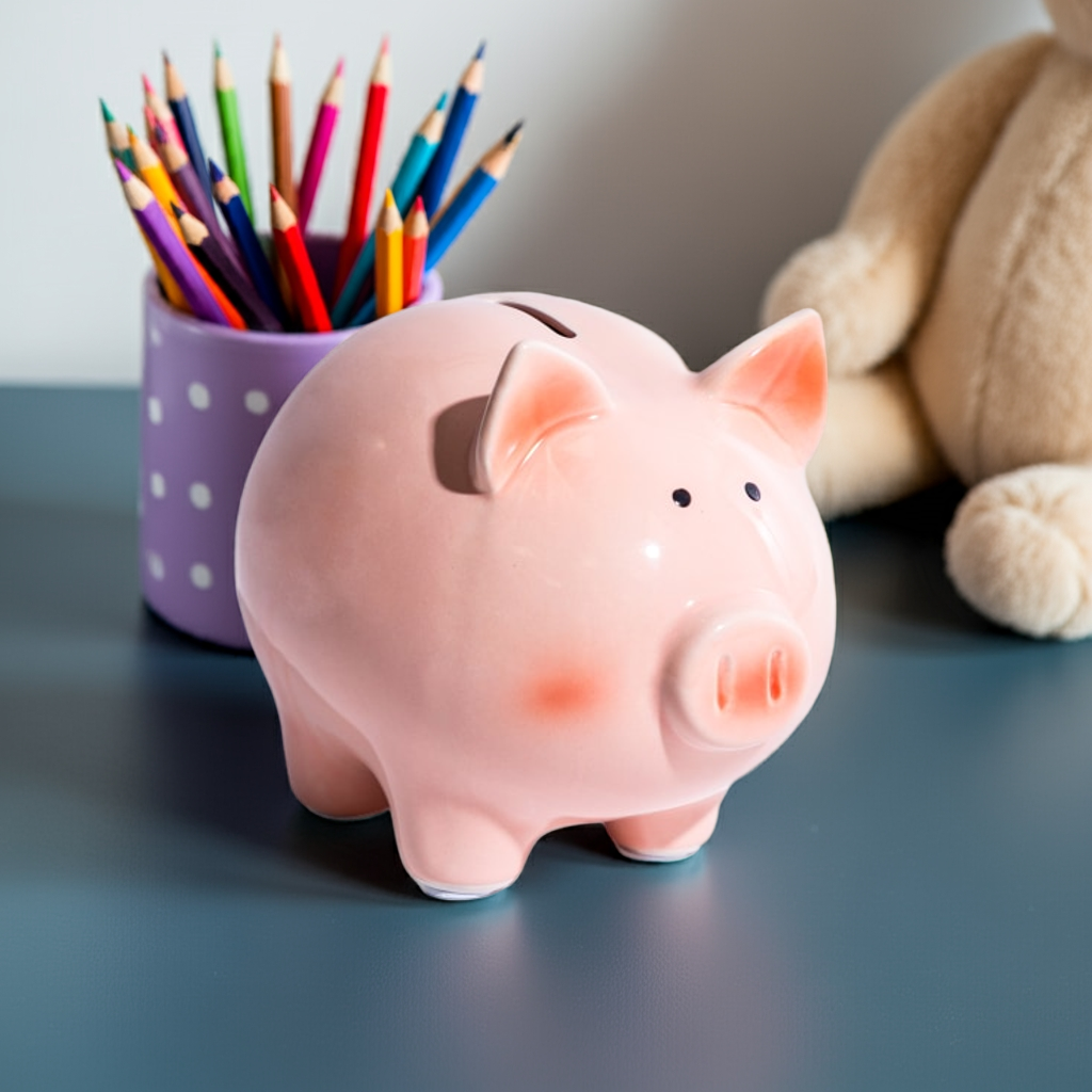 The Classic Large Ceramic Piggy Bank offers a durable and spacious solution for teaching children the value of saving. Crafted from high-quality ceramic, its generous size accommodates numerous coins, encouraging consistent saving habits. This timeless design combines functionality with a charming aesthetic, making it an ideal tool for both practical use and decorative appeal in any child's room.