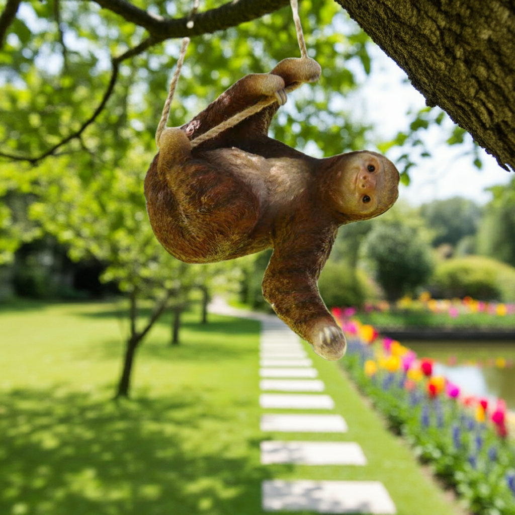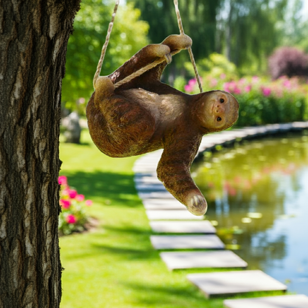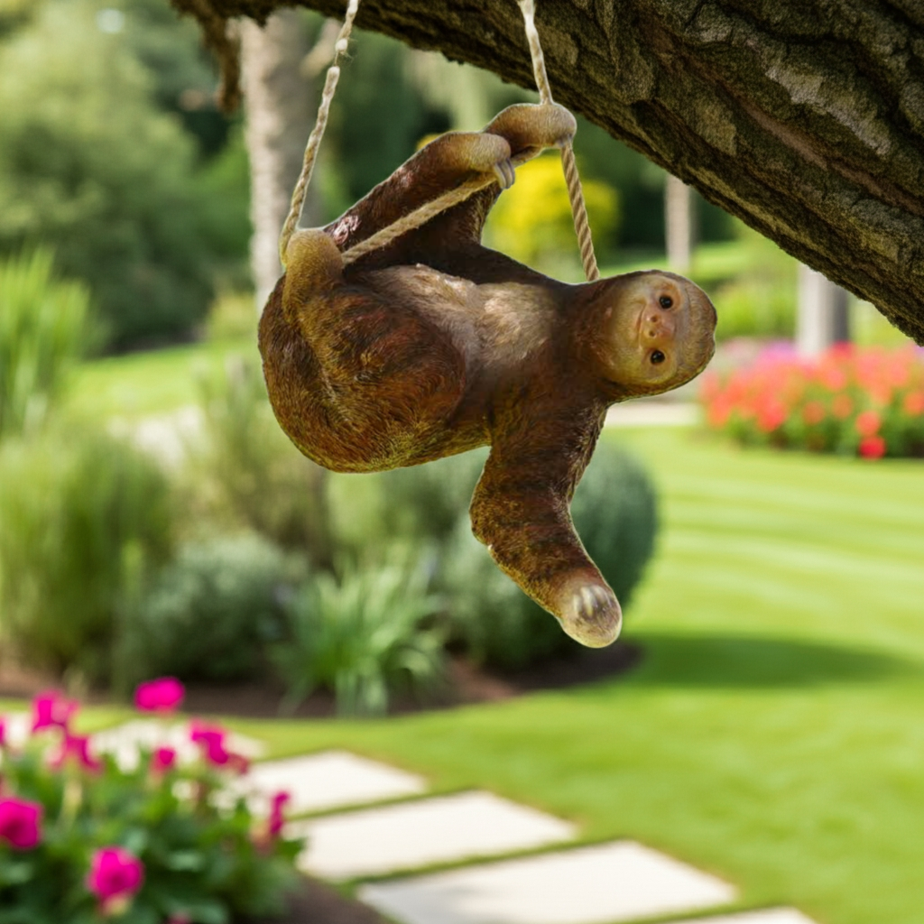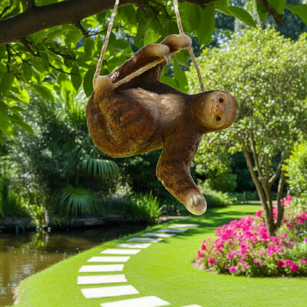 The Climbing Sloth is a darling addition to any garden, perfect for wildlife lovers. Crafted from high quality resin, this eye-catching hanging sloth is a must-have for any outdoor space. Bring a touch of whimsy and nature to your Garden decor with this cute Sloth.
