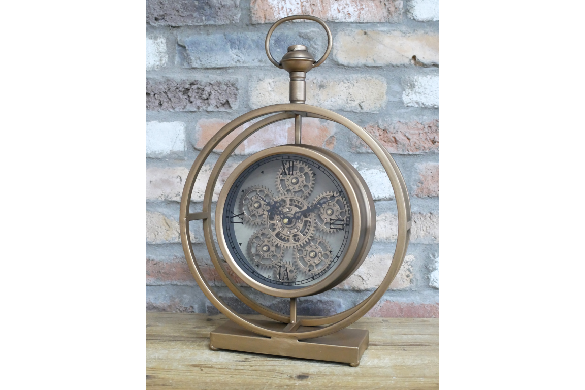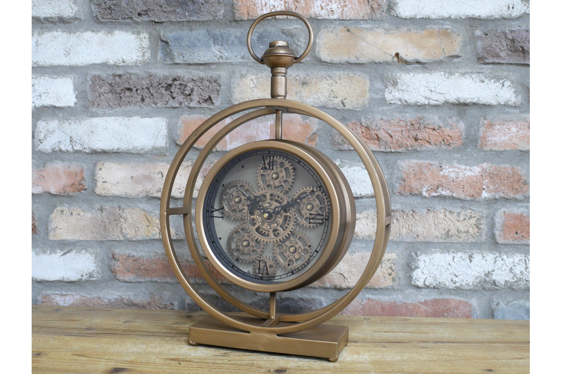 This striking timepiece combines functional horology with sculptural design, featuring authentic moving cogs that rotate as the clock operates. Crafted in gleaming gold finish, the intricate mechanical elements serve as both timekeeping mechanism and artistic focal point. Each gear works in harmony to drive the hands forward, creating a mesmerizing display of precision engineering. Perfect for those who appreciate the marriage of craftsmanship and utility, this clock transforms any wall into a gallery of motion and metallurgy. A sophisticated statement piece that celebrates the beauty of mechanical systems.