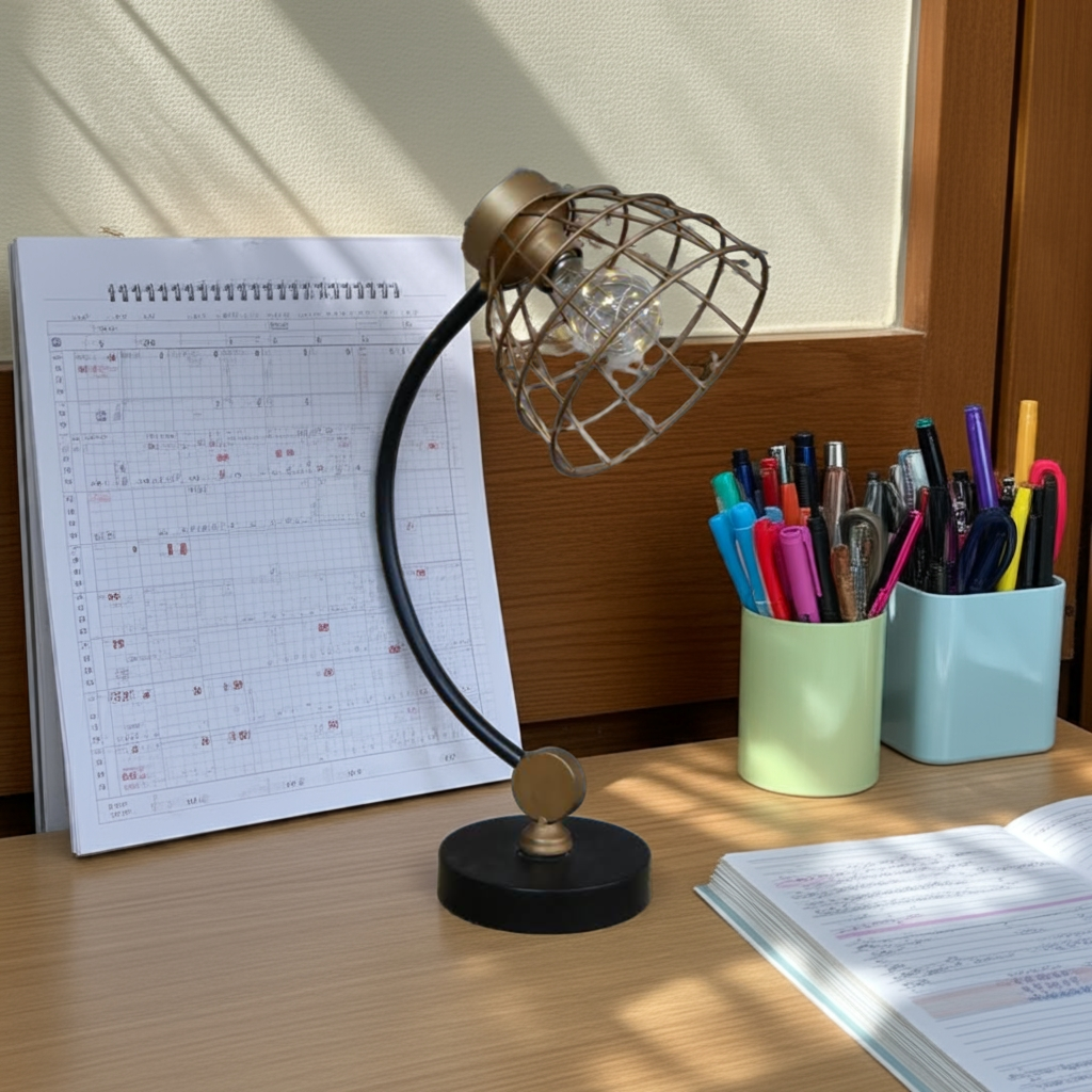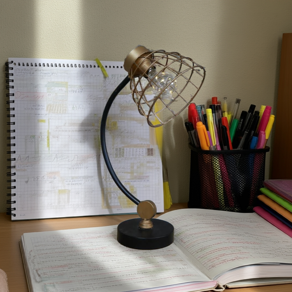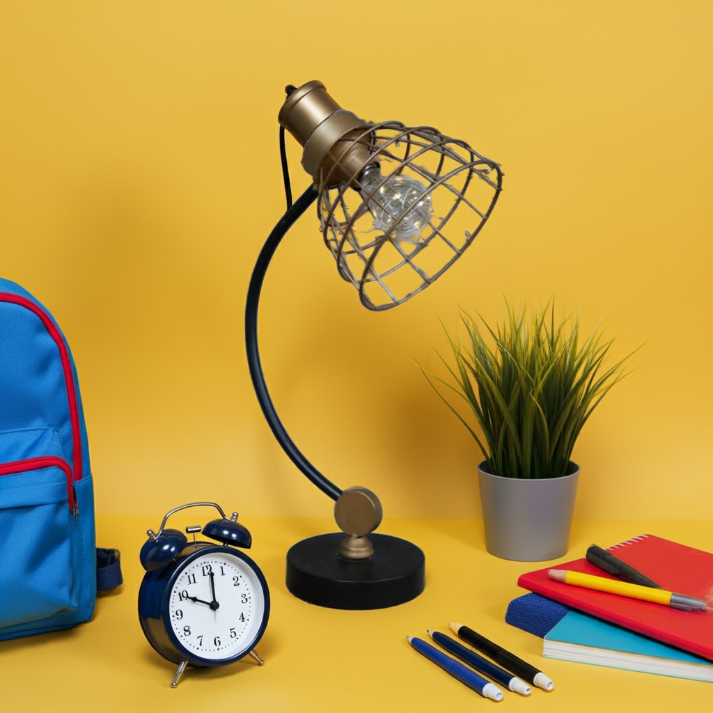 The 'Staad' Norwegian design metal desk lamp offers a distinct cage-type shade, mounted on a curved stem and solid base. Painted in a matte black and dull gold, this lamp is sure to make a statement. And thanks to its battery-powered operation, it can be easily repositioned as needed for added convenience. Please note that battery-operated lamps are intended to create an ambient atmosphere and are not meant to provide bright illumination.