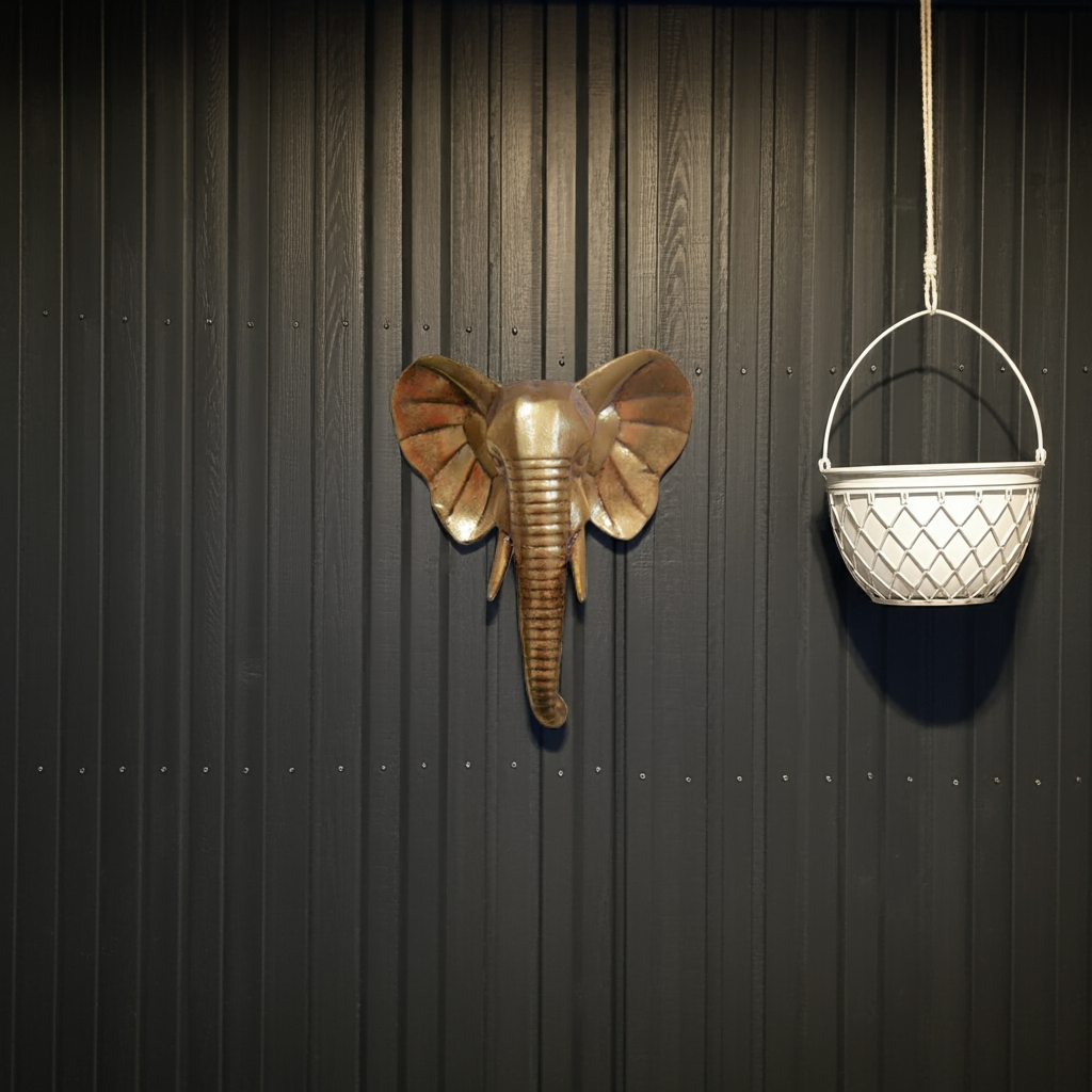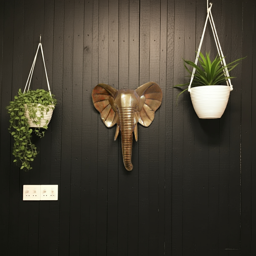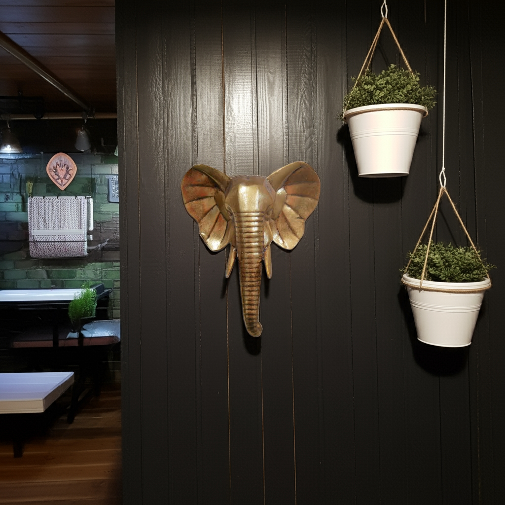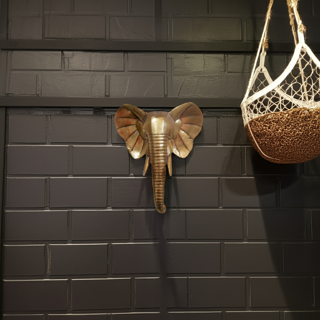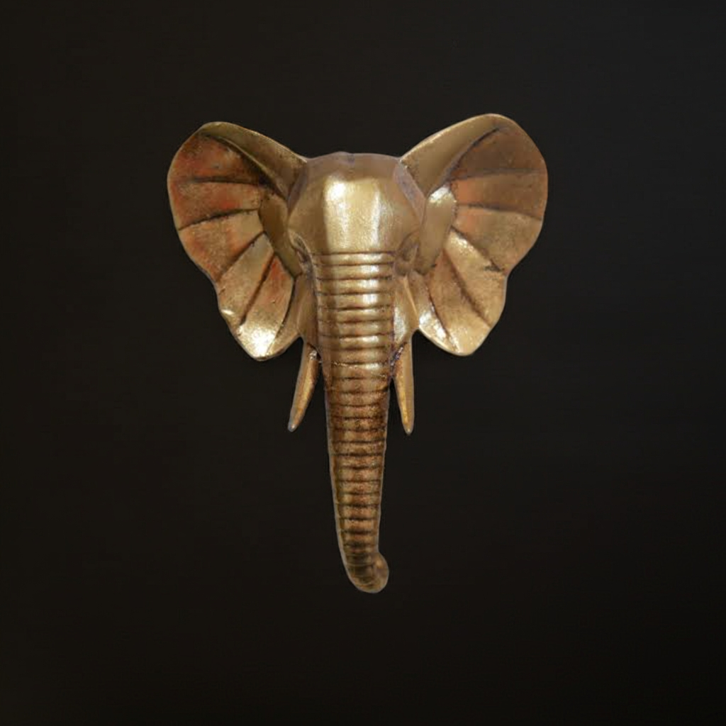 Antique Golde Elephant Head Crafted by professionals, this small Elephant Head makes for an eye-catching wall decoration. Every unique piece is suitable for both indoor and outdoor use, making it a versatile addition to any decor. Add a charming touch to your garden or home with this amazing decoration article.