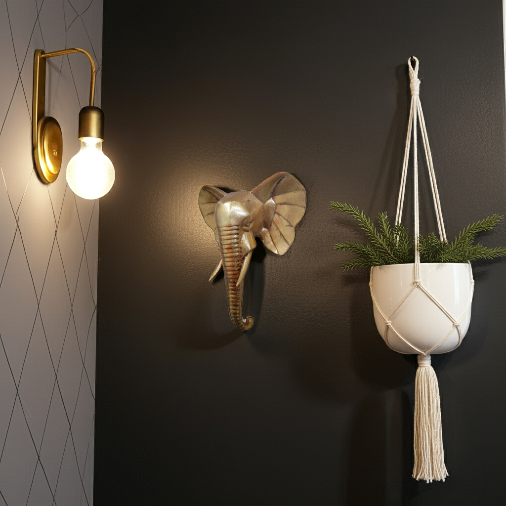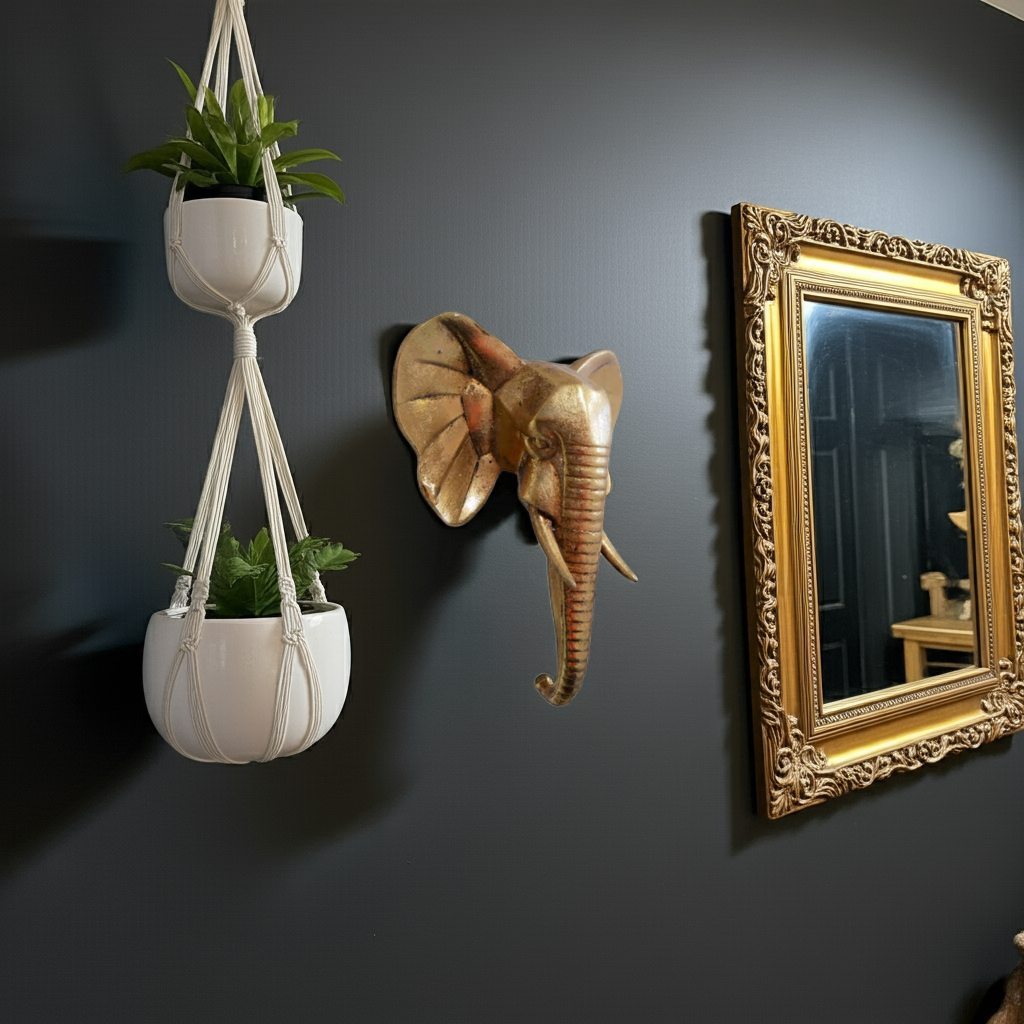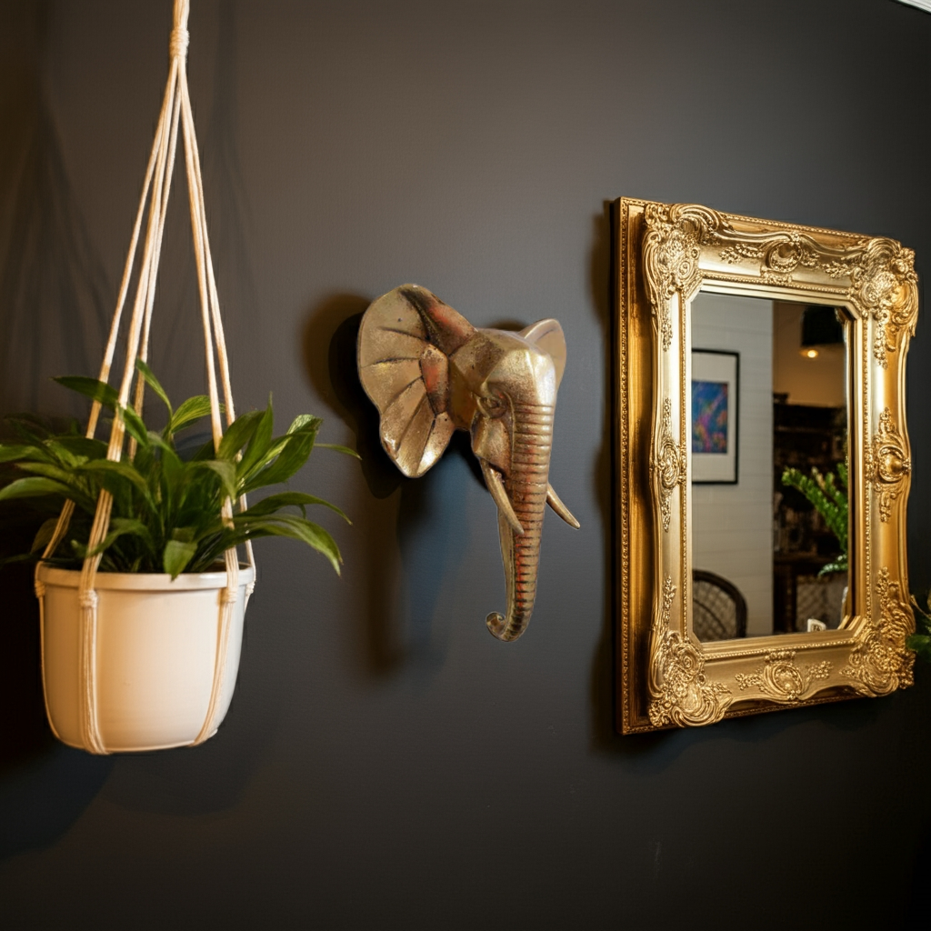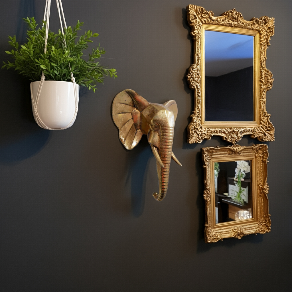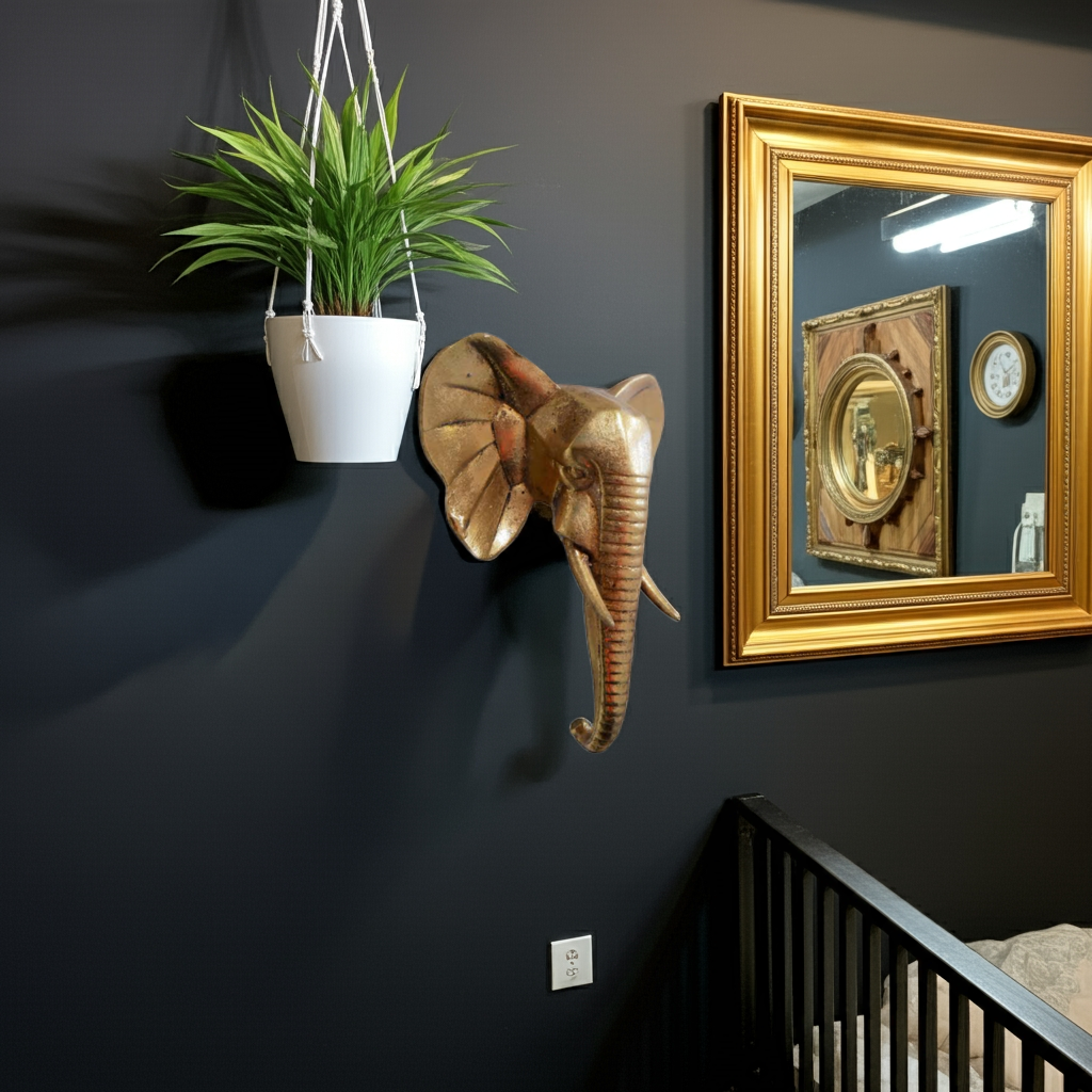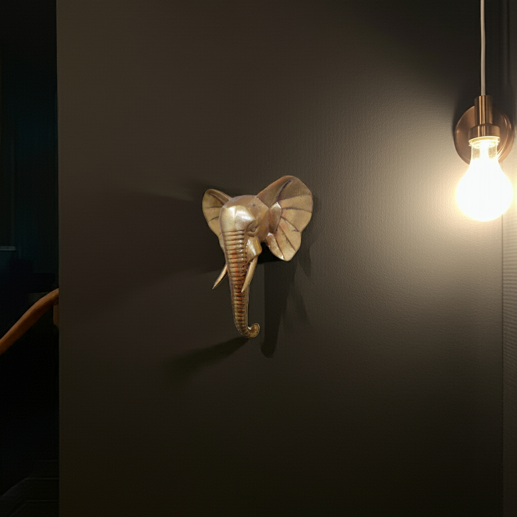 Antique Golde Elephant Head Crafted by professionals, this small Elephant Head makes for an eye-catching wall decoration. Every unique piece is suitable for both indoor and outdoor use, making it a versatile addition to any decor. Add a charming touch to your garden or home with this amazing decoration article.