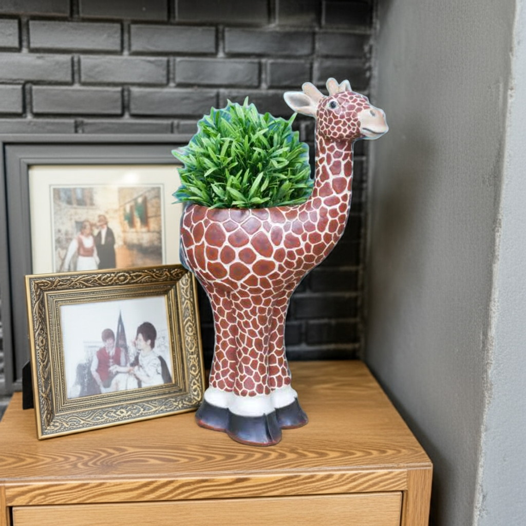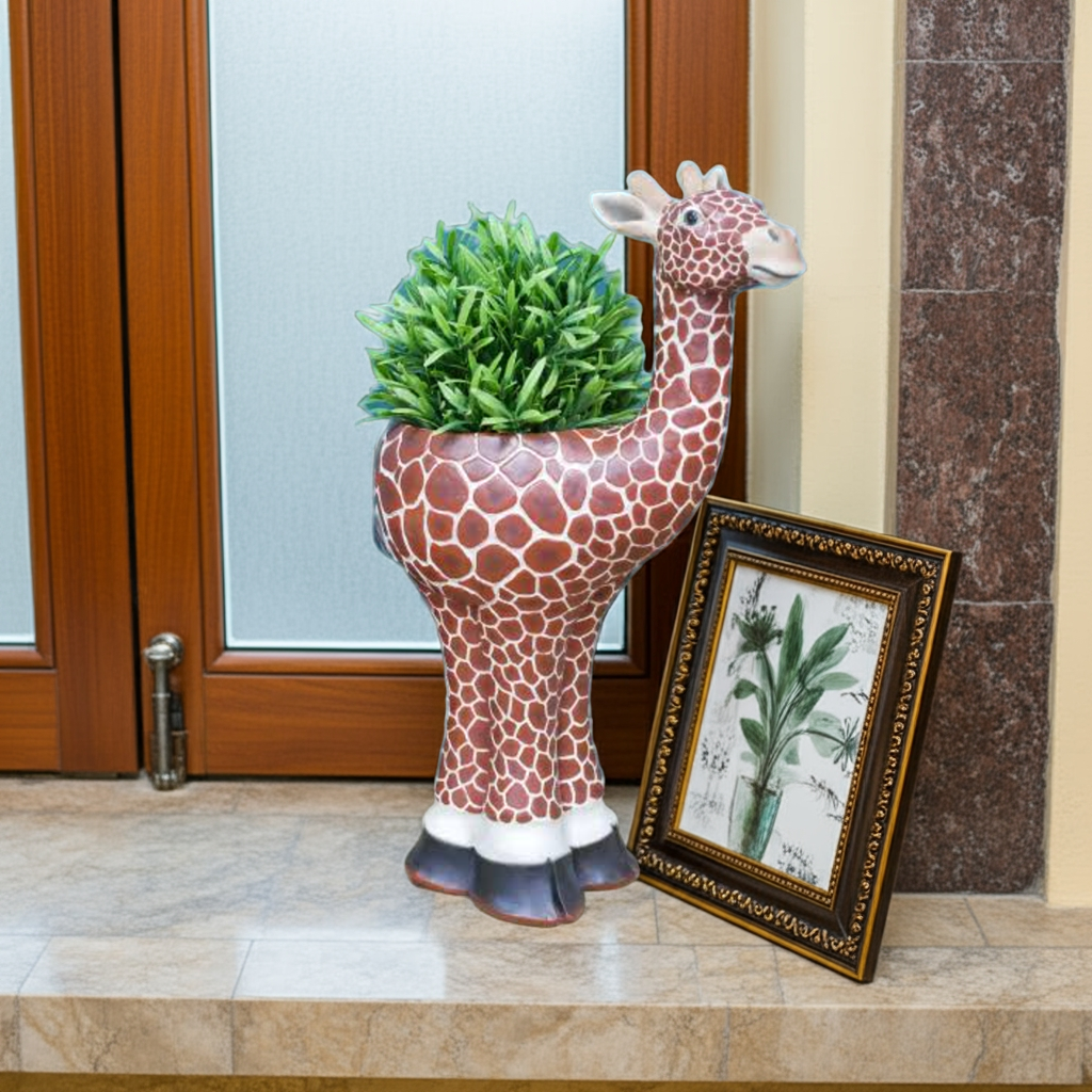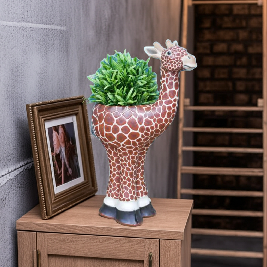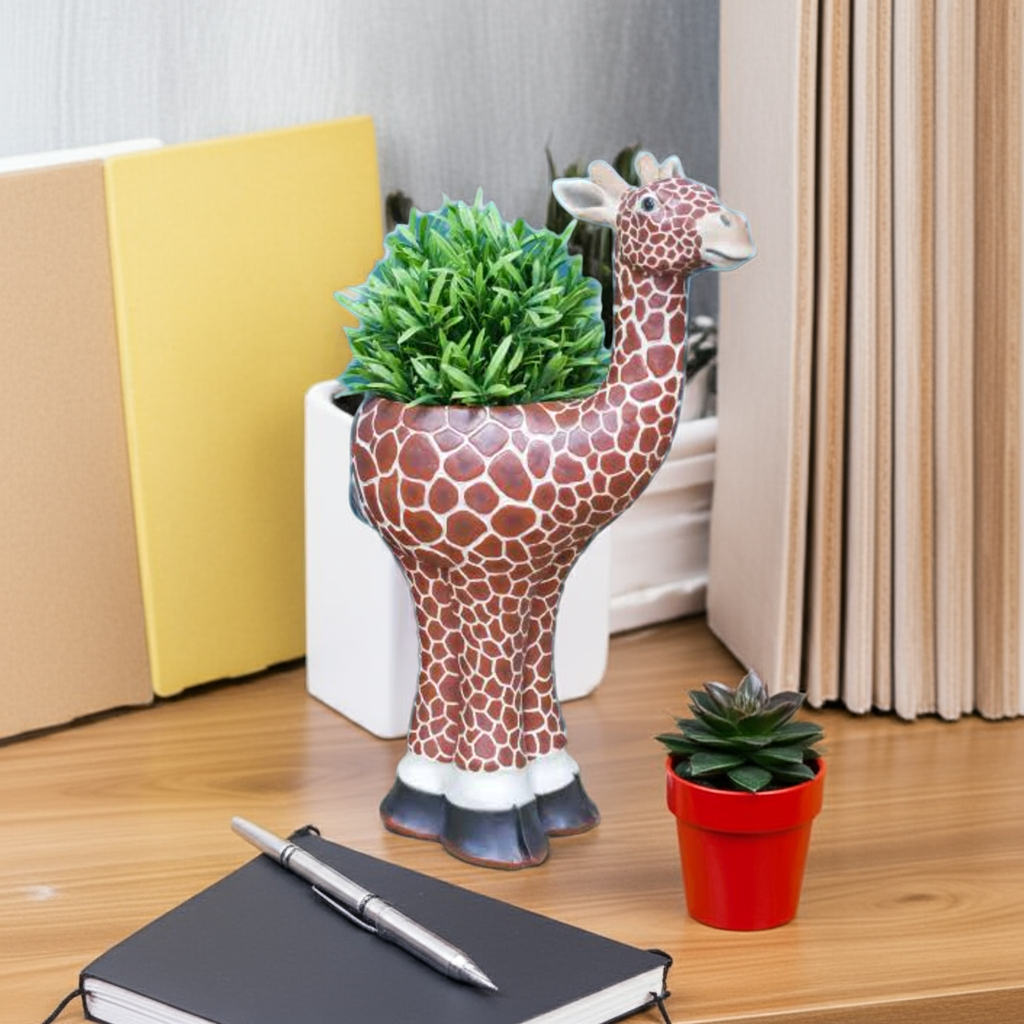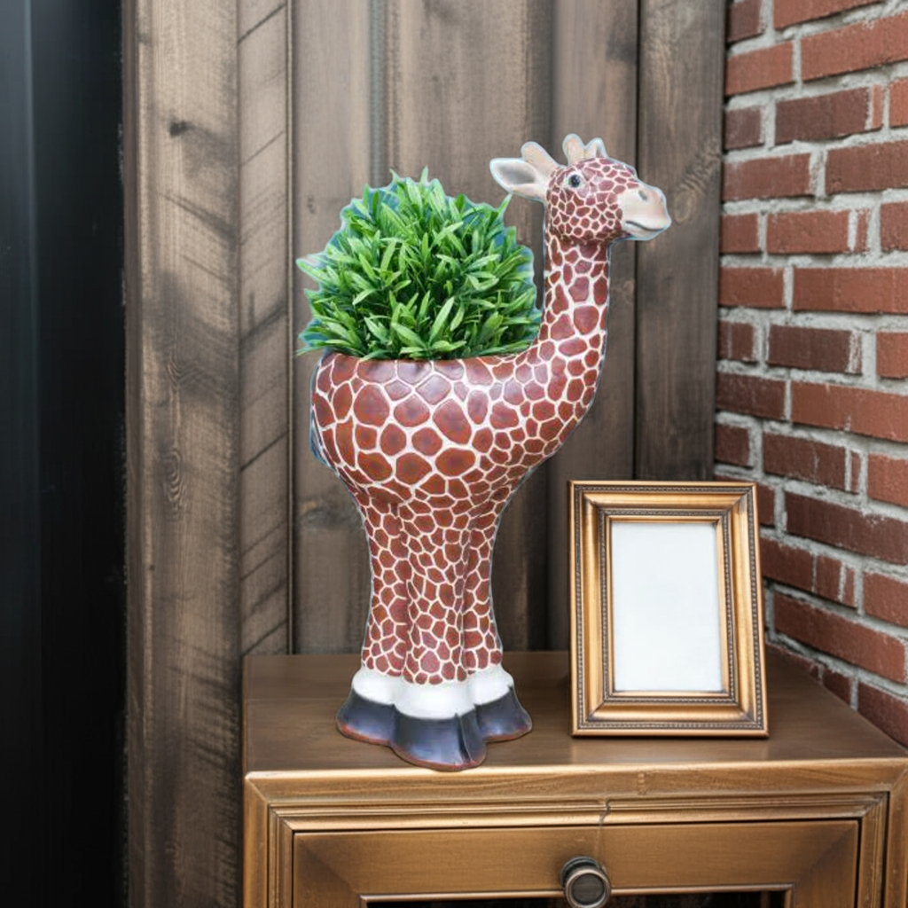 This charming Giraffe Planter is the perfect addition to any indoor or outdoor space. Made with high quality resin material, it is not only unique and eye-catching, but also durable. Its cute design adds a touch of whimsy to any setting, making it a must-have for any plant lover.