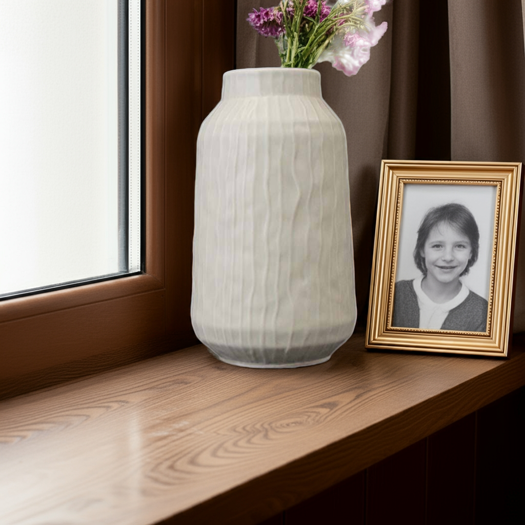 Expertly crafted with a very unique touch, this vase boasts an elegant, embossed design. Suitable for all kinds of decor, it adds a touch of sophistication to any room. Made with high-quality materials, it's a perfect addition to your home.
