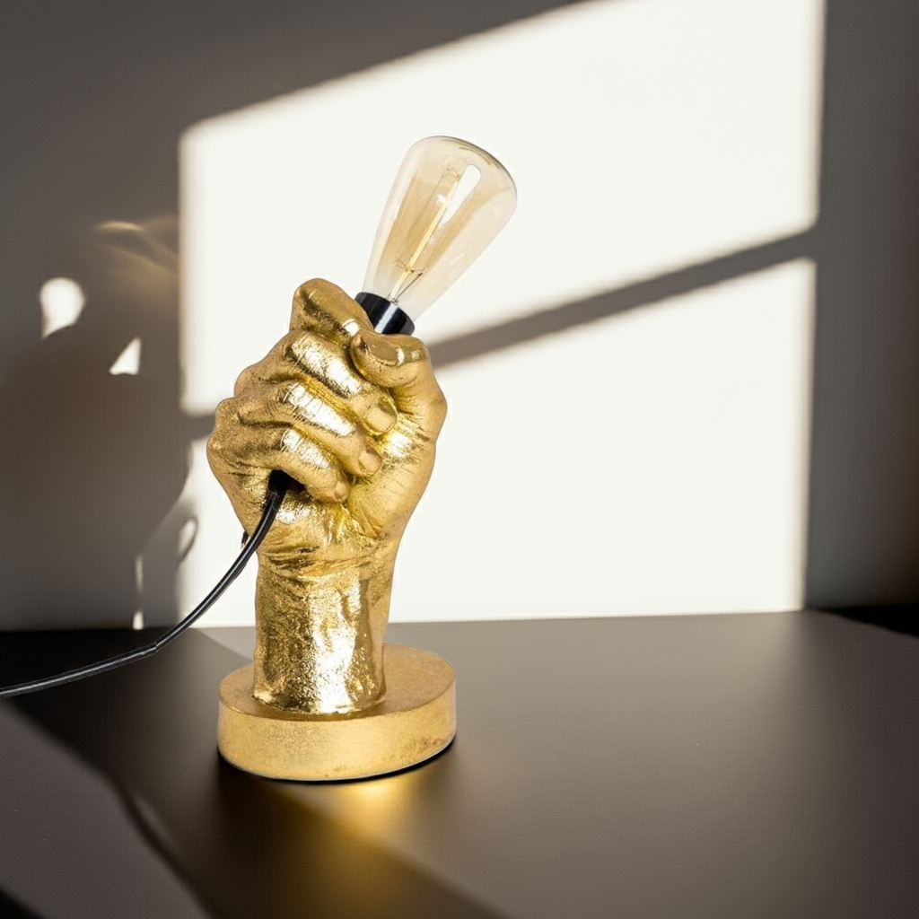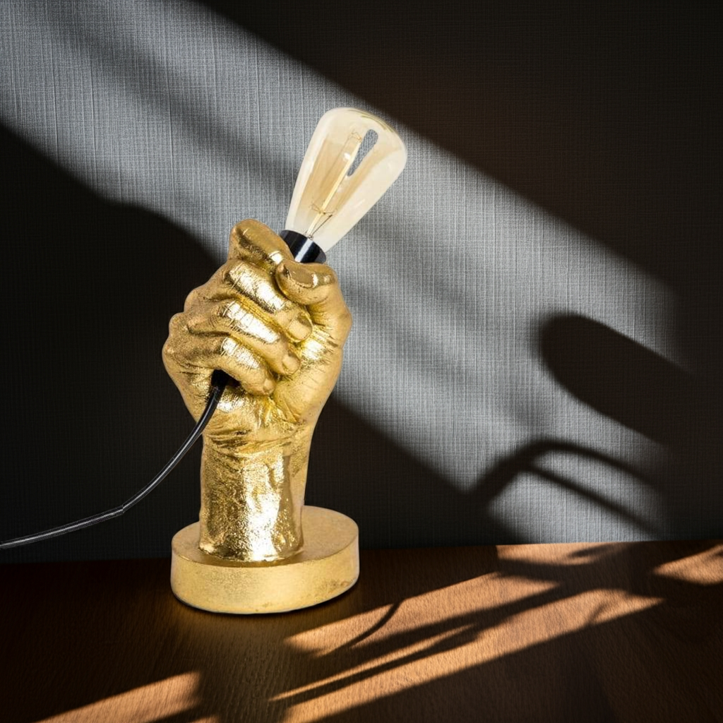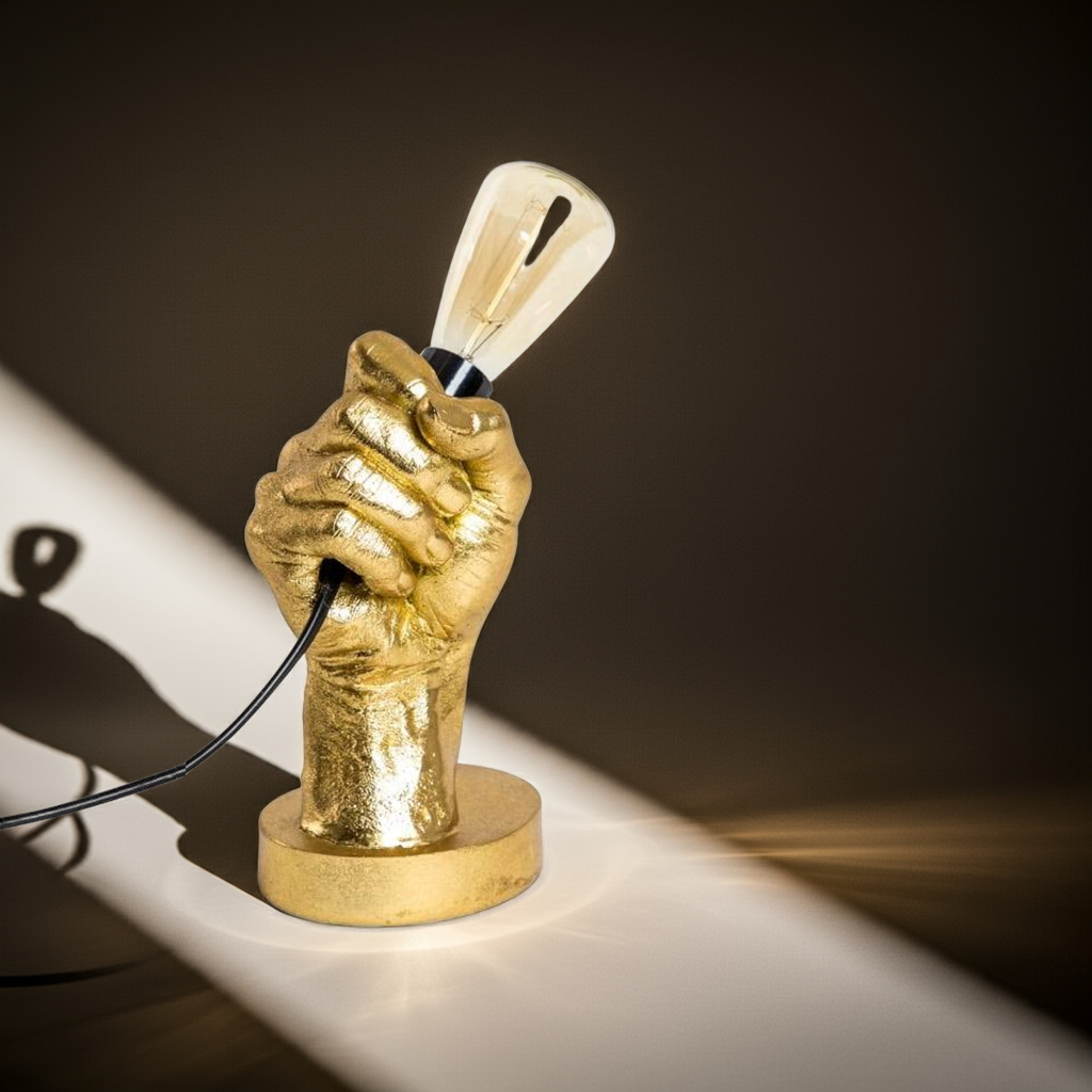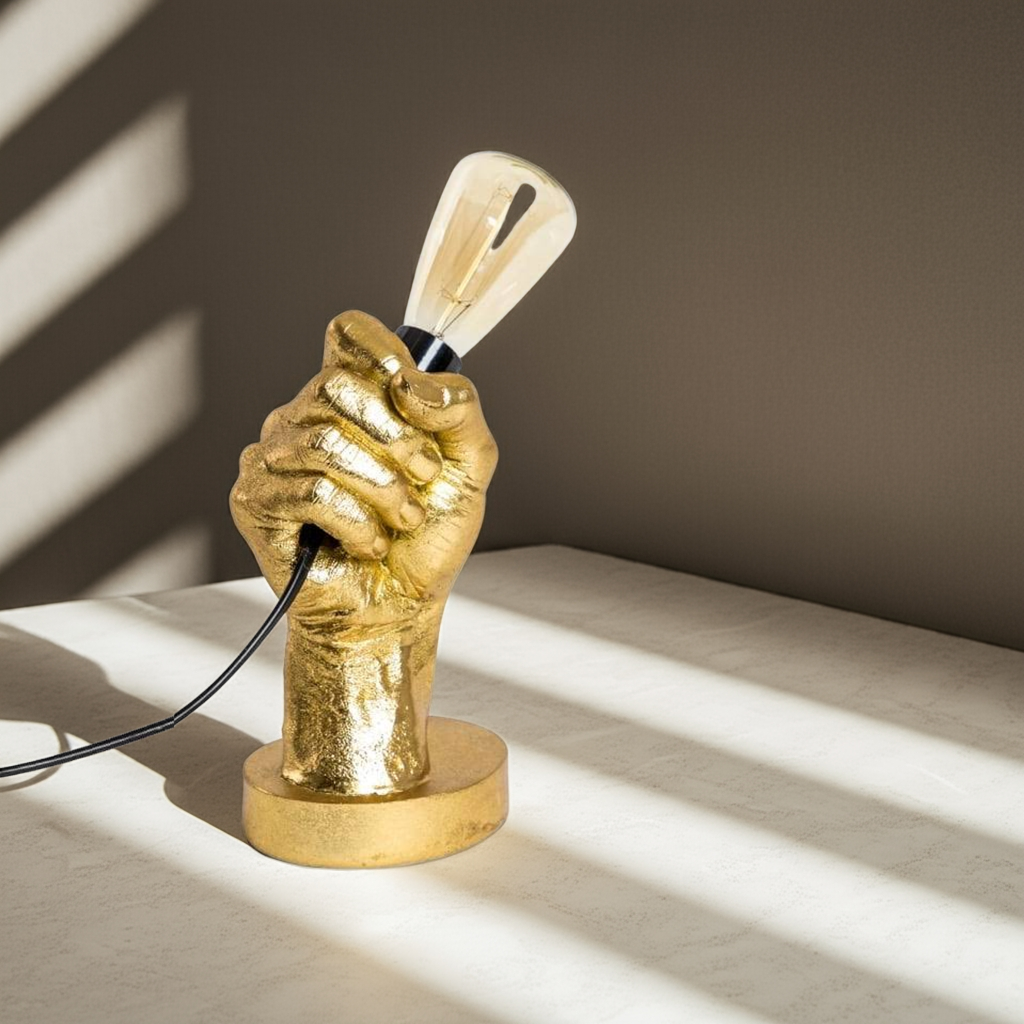 Expertly crafted with a sleek gold design, our "Hand Held" Table Lamp adds a touch of elegance to any room. Perfect for task lighting or creating a cozy atmosphere, this lamp is the perfect addition to your home decor.
