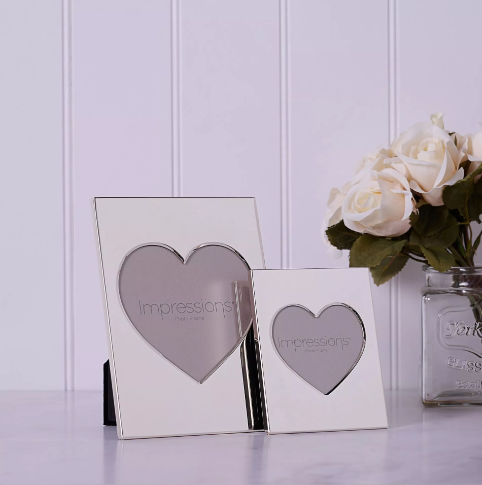 Elegant metal-plated frame featuring a heart-shaped aperture, perfect for displaying cherished photos or artwork. The 5" x 5" size fits standard tabletop displays and wall arrangements. Crafted with a polished metal finish that complements any décor style, from modern to vintage. Ideal for gifts, anniversaries, or adding a touch of romance to your home. Durable construction ensures your memories stay beautifully framed for years to come.