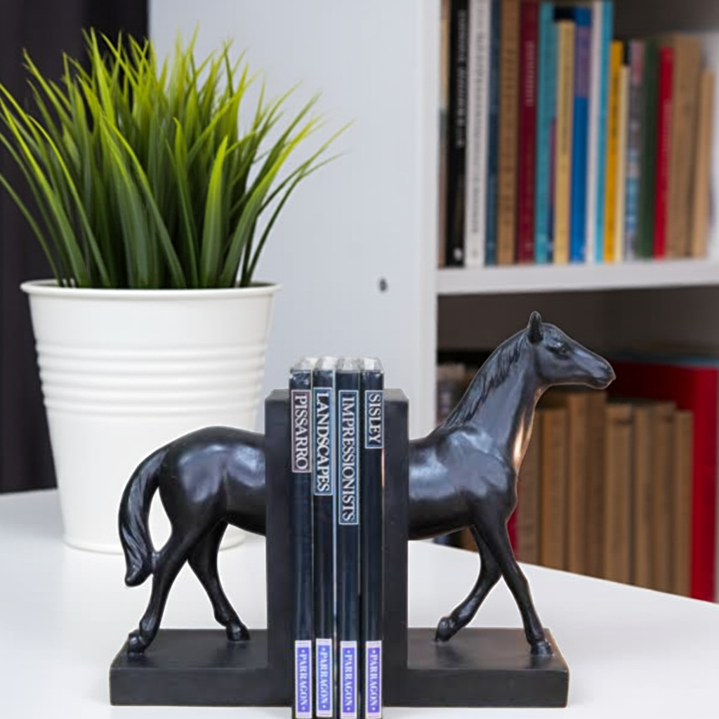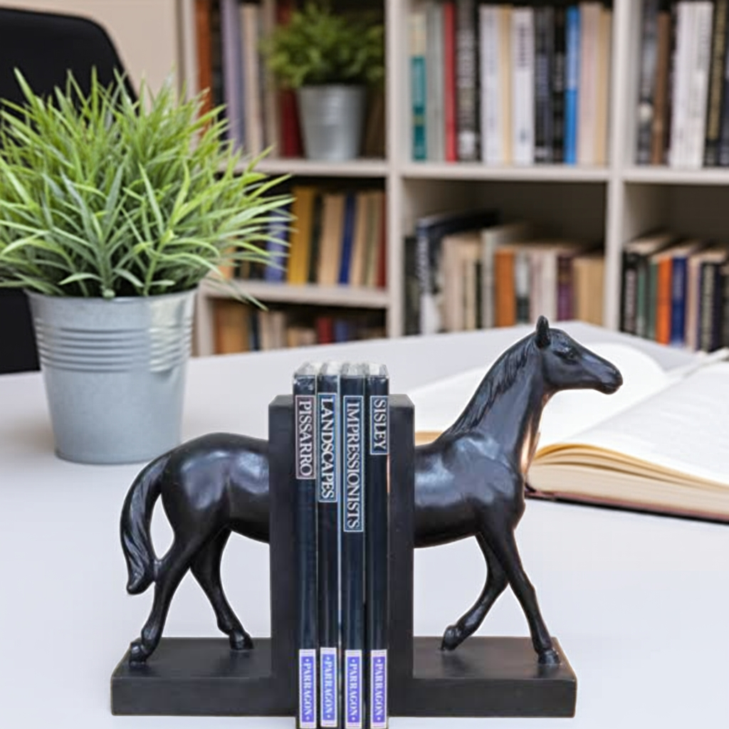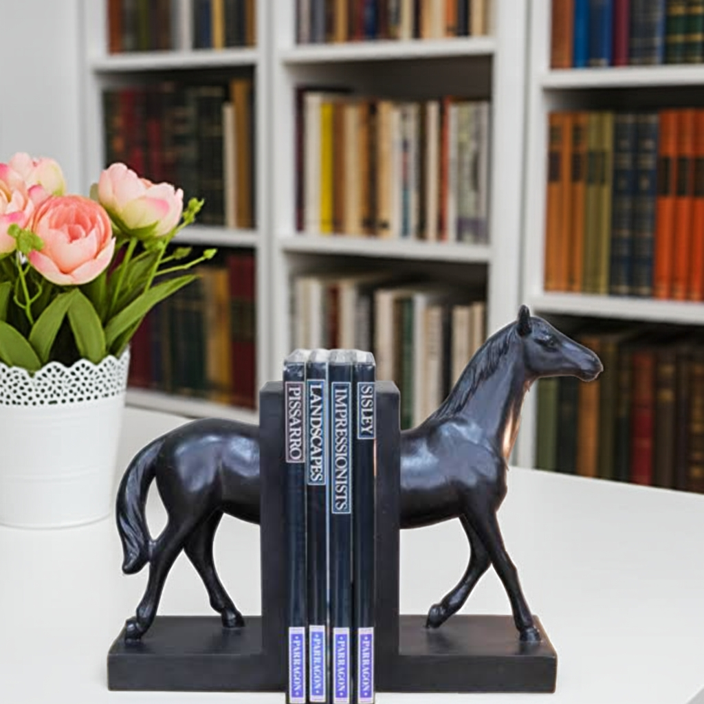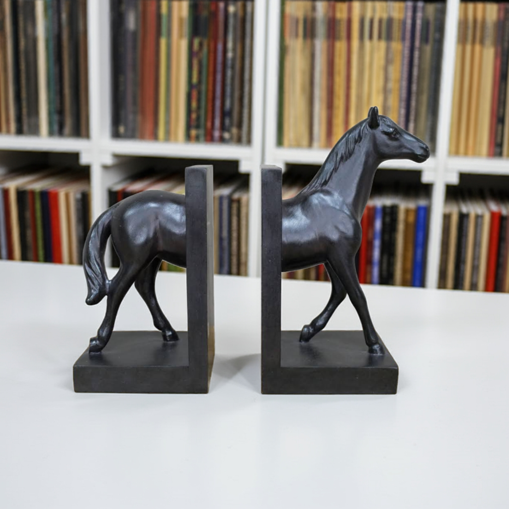 Expertly crafted for horse enthusiasts, this stunning Horse Bookends Set adds a touch of elegance to any home decor. Made from high-quality black resin, these bookends securely hold your books in place while also serving as a decorative piece. An amazing addition to your bookshelf or office space.