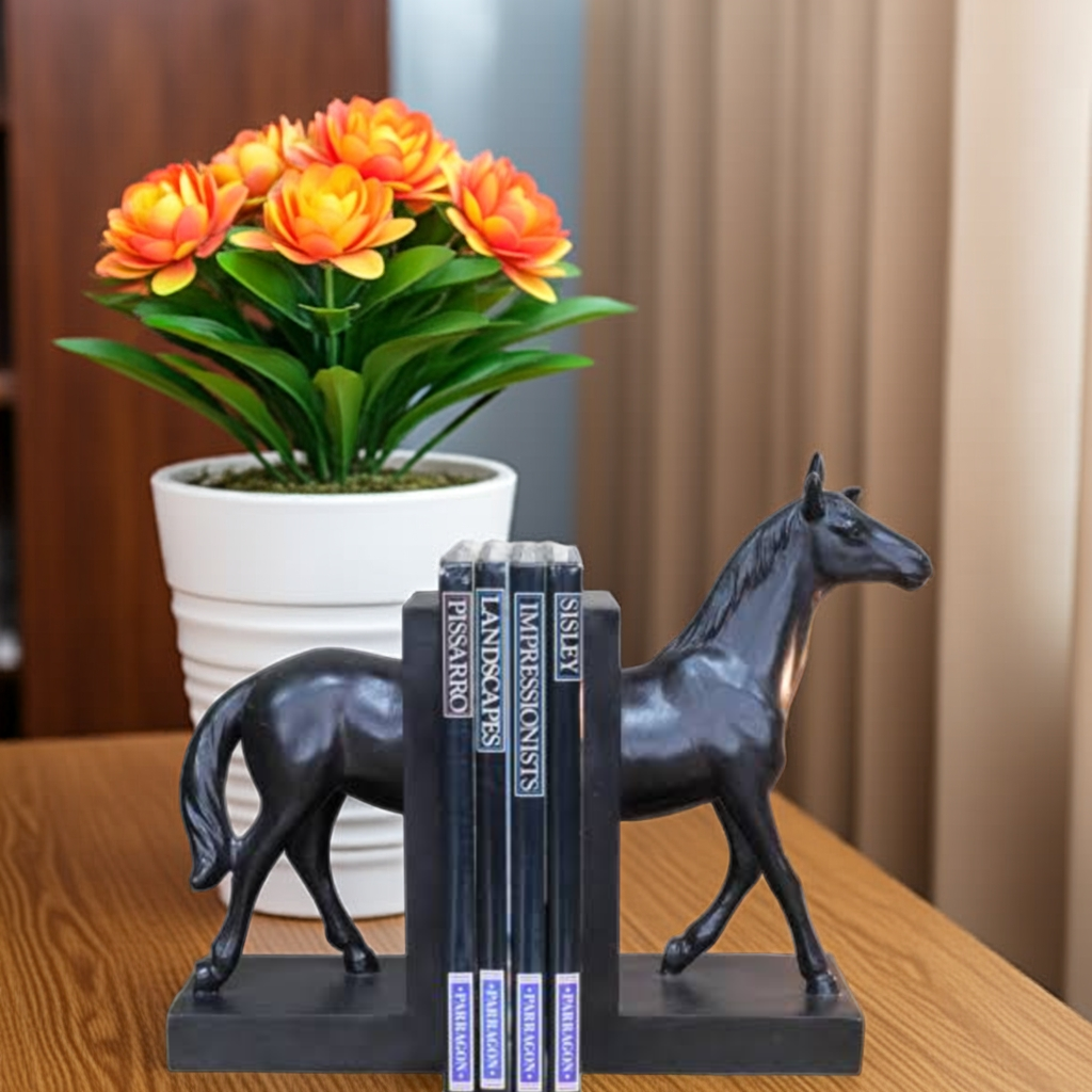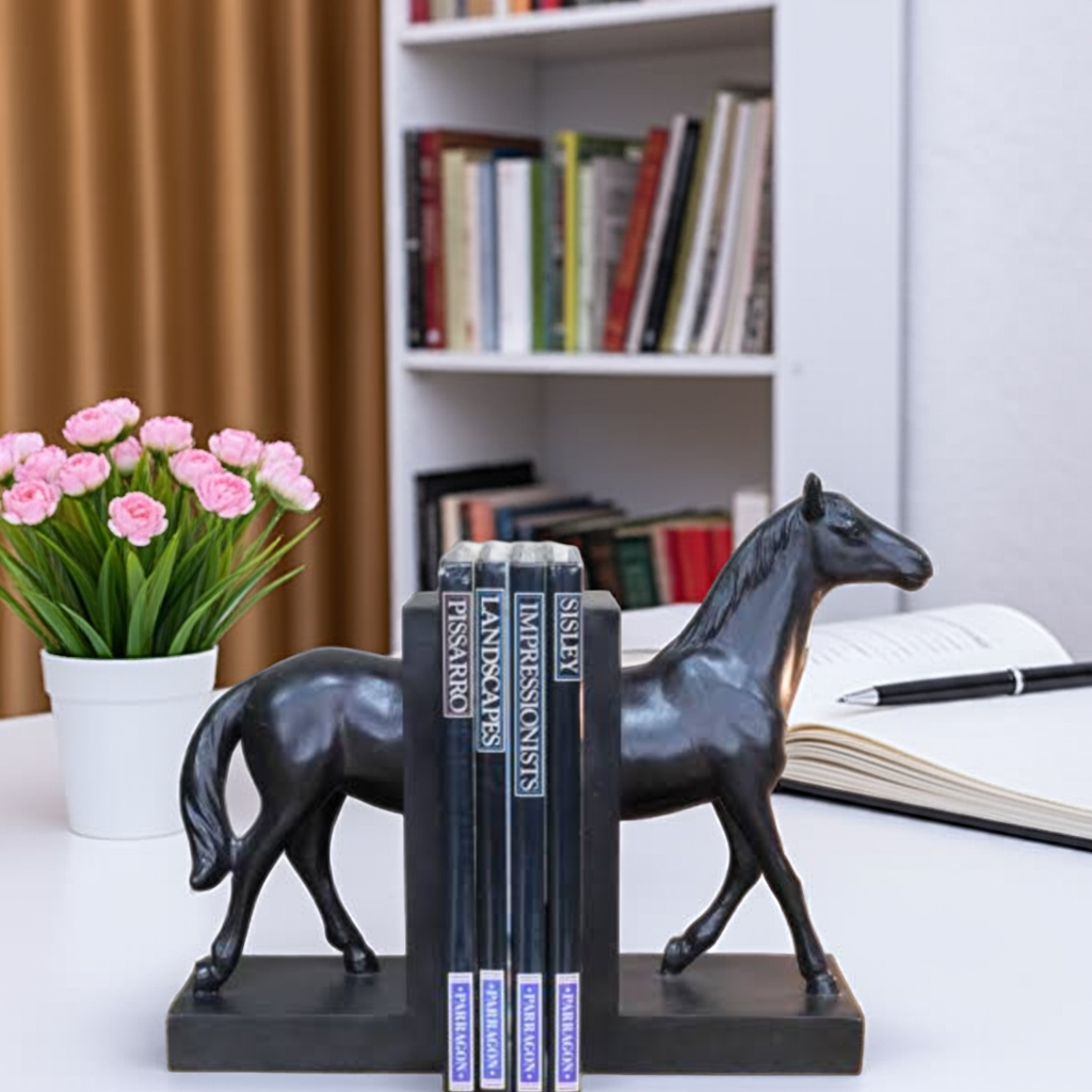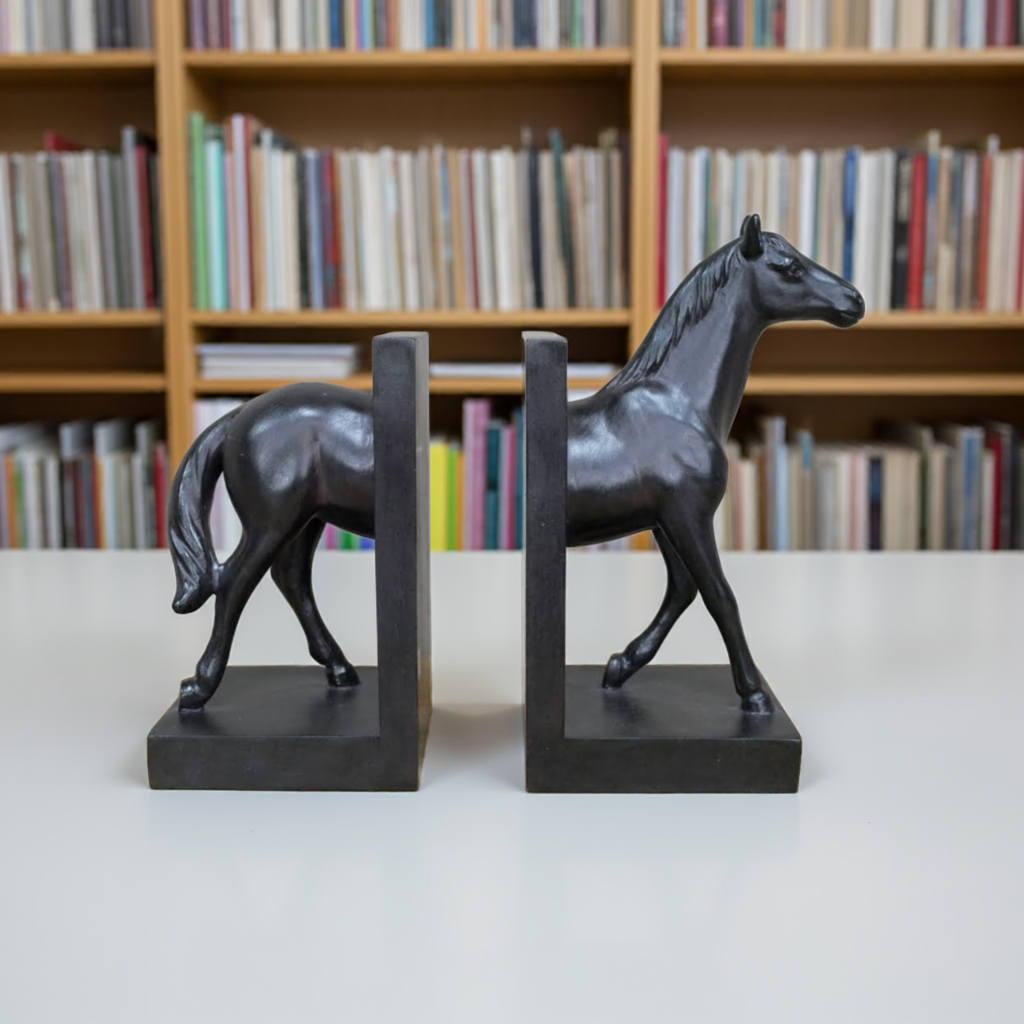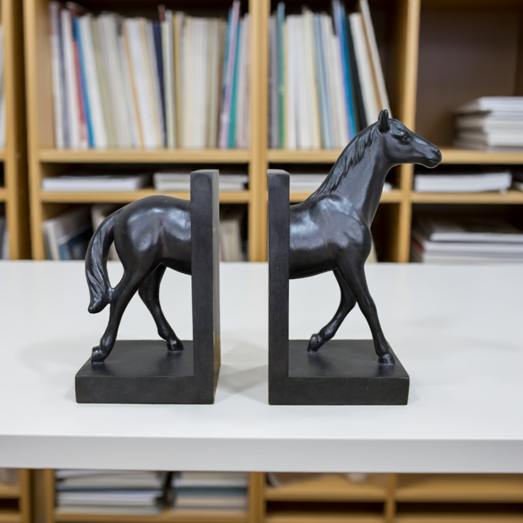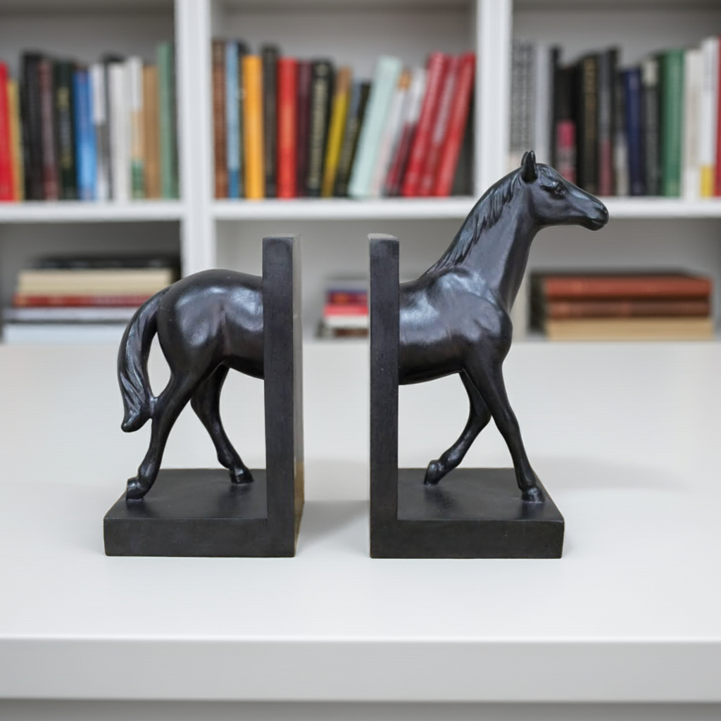 Expertly crafted for horse enthusiasts, this stunning Horse Bookends Set adds a touch of elegance to any home decor. Made from high-quality black resin, these bookends securely hold your books in place while also serving as a decorative piece. An amazing addition to your bookshelf or office space.