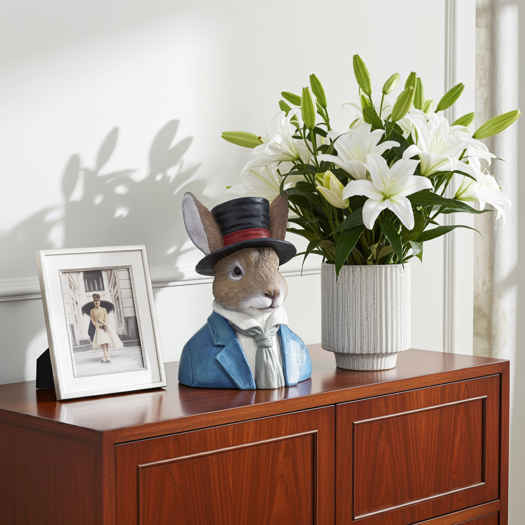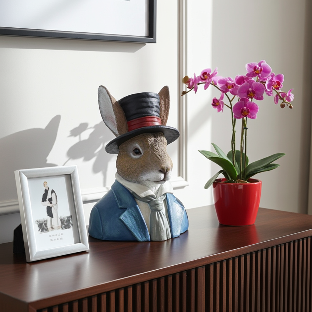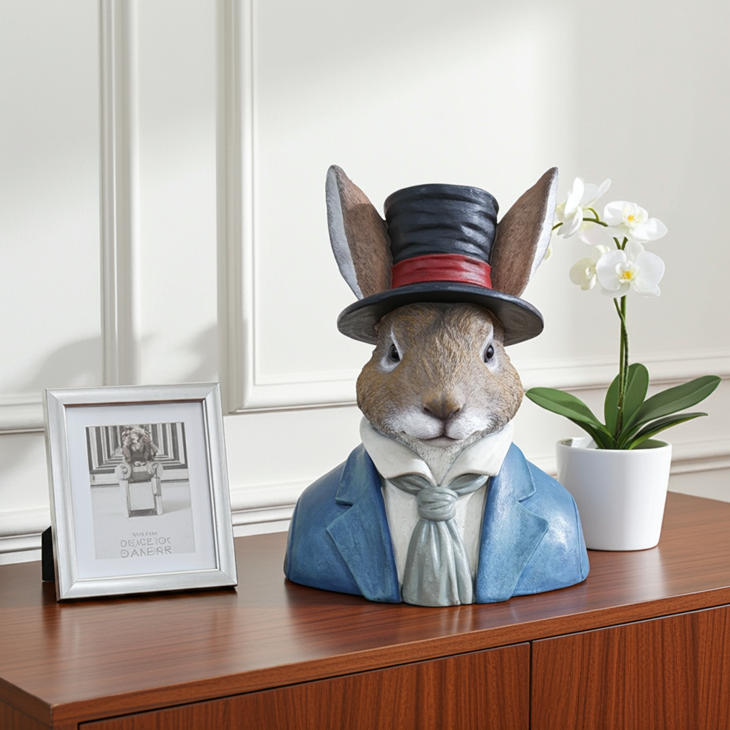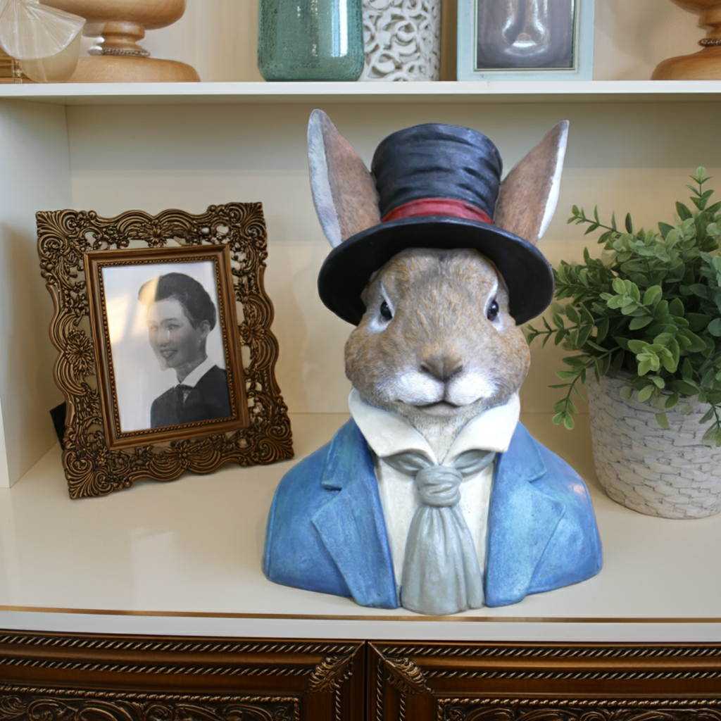 This Large Rabbit Dressed Up Bust Ornament is a distinctive sculpture crafted from durable resin, showcasing professional artistry and attention to detail. Its unique design makes it an eye-catching decorative piece perfect for pet lovers seeking to add character and charm to their space. Durable and expertly finished, it’s a must-have statement piece for any distinctive home décor collection.