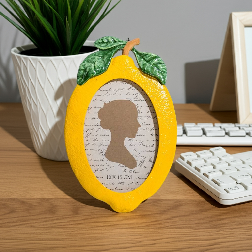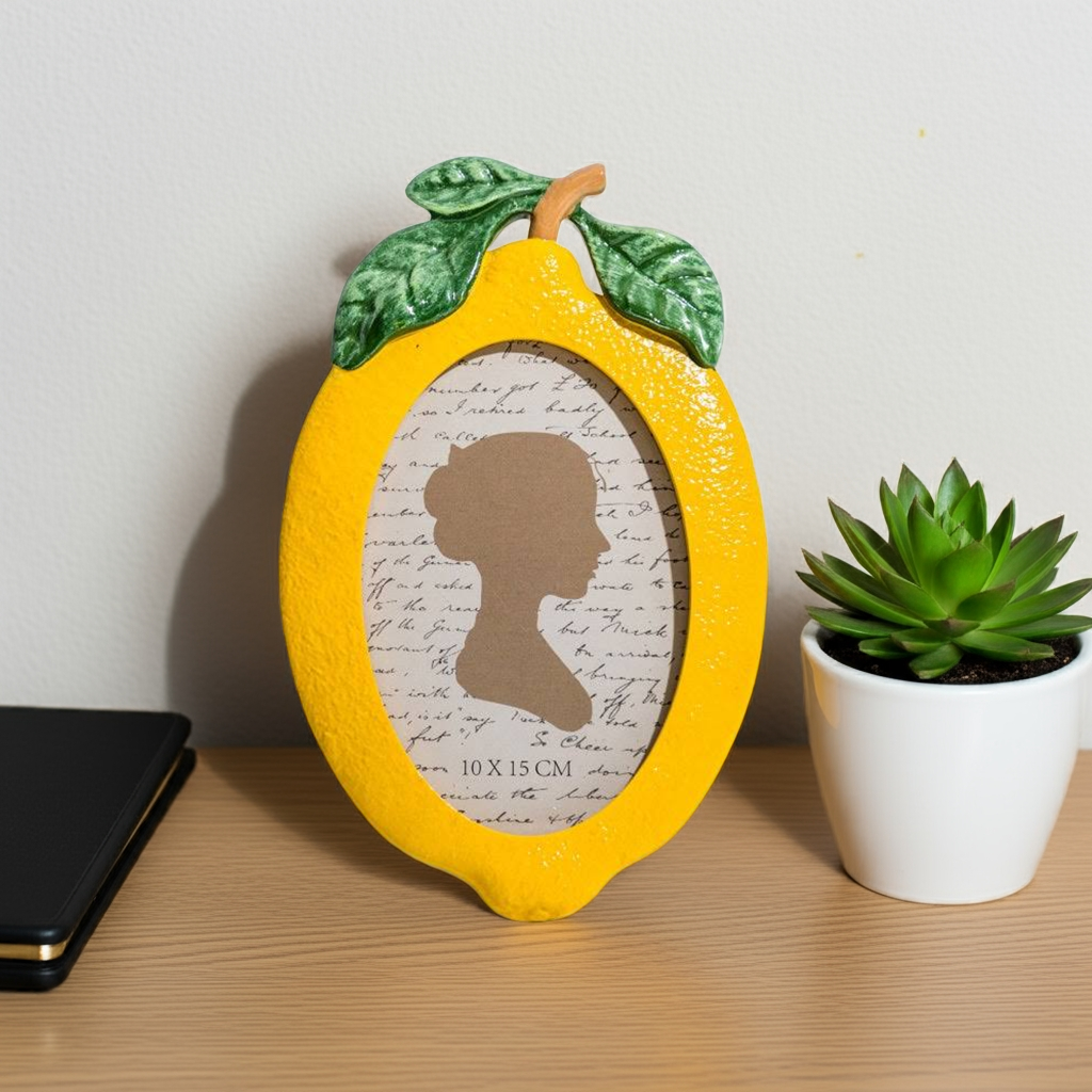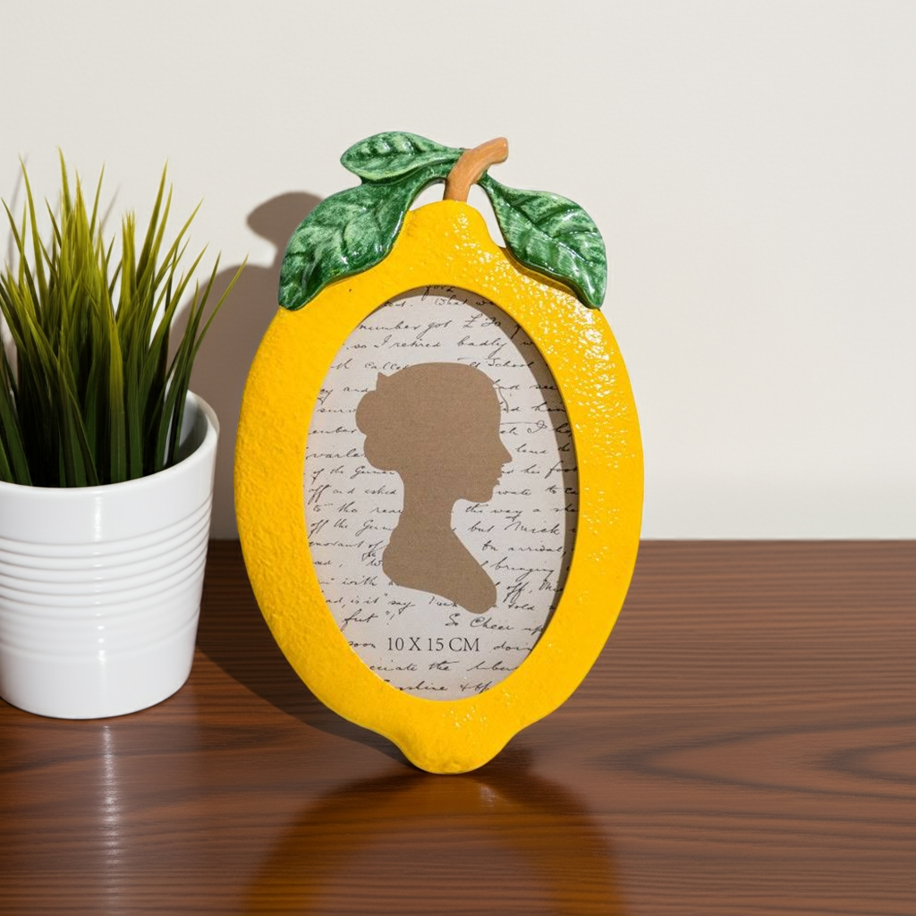 Display your favorite memories in style with our Lemon Photo Frame. This 4x6" frame features a delightful lemon design, adding a touch of brightness to any room. Made with high-quality materials, it's the perfect way to showcase your photos while also adding a pop of color to your decor.