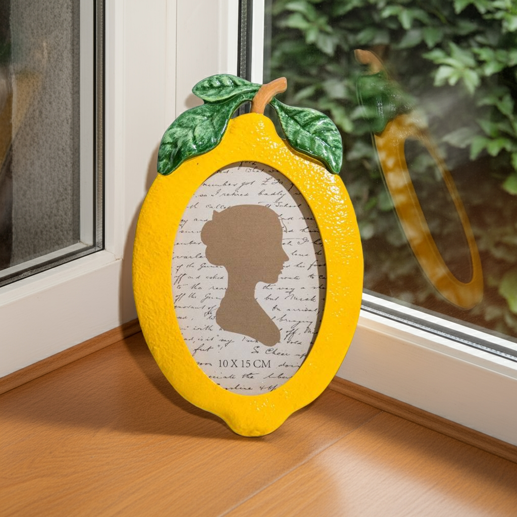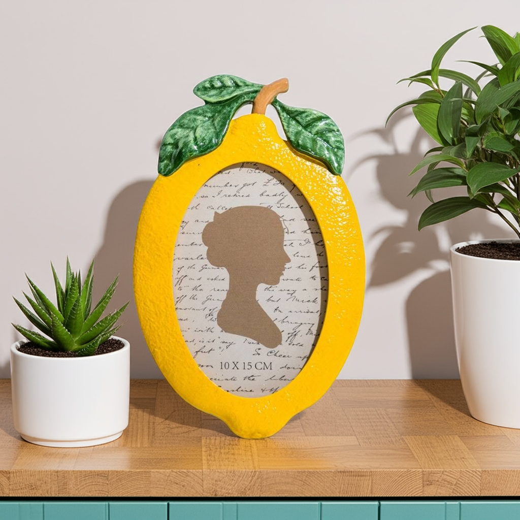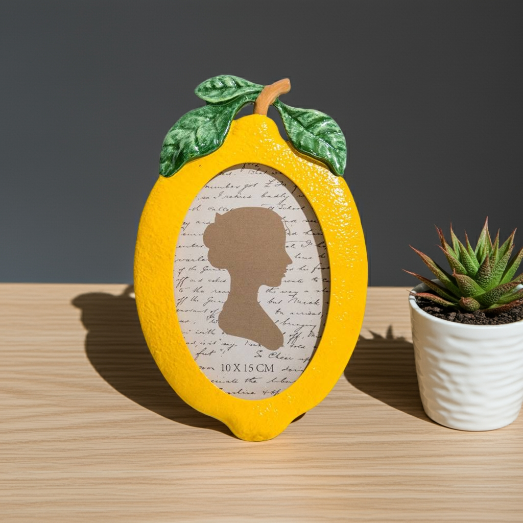 Display your favorite memories in style with our Lemon Photo Frame. This 4x6" frame features a delightful lemon design, adding a touch of brightness to any room. Made with high-quality materials, it's the perfect way to showcase your photos while also adding a pop of color to your decor.