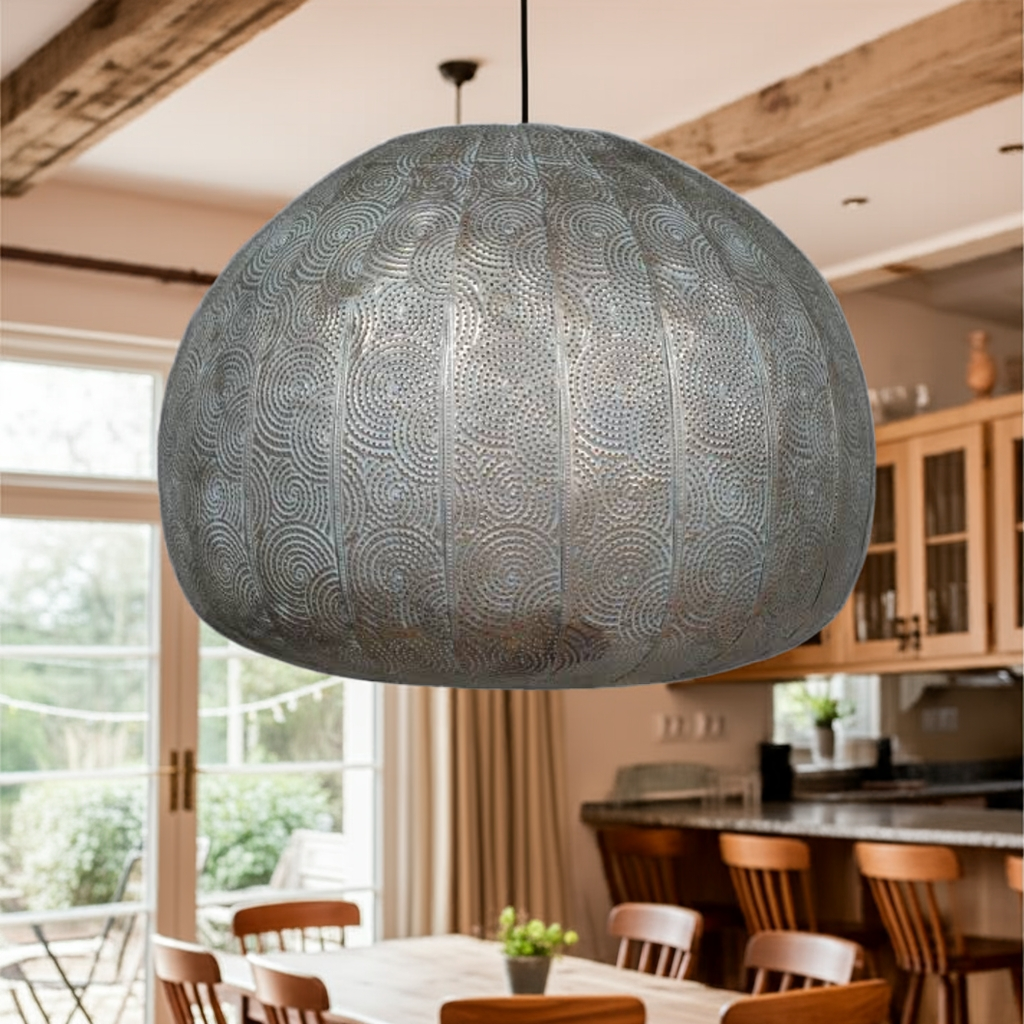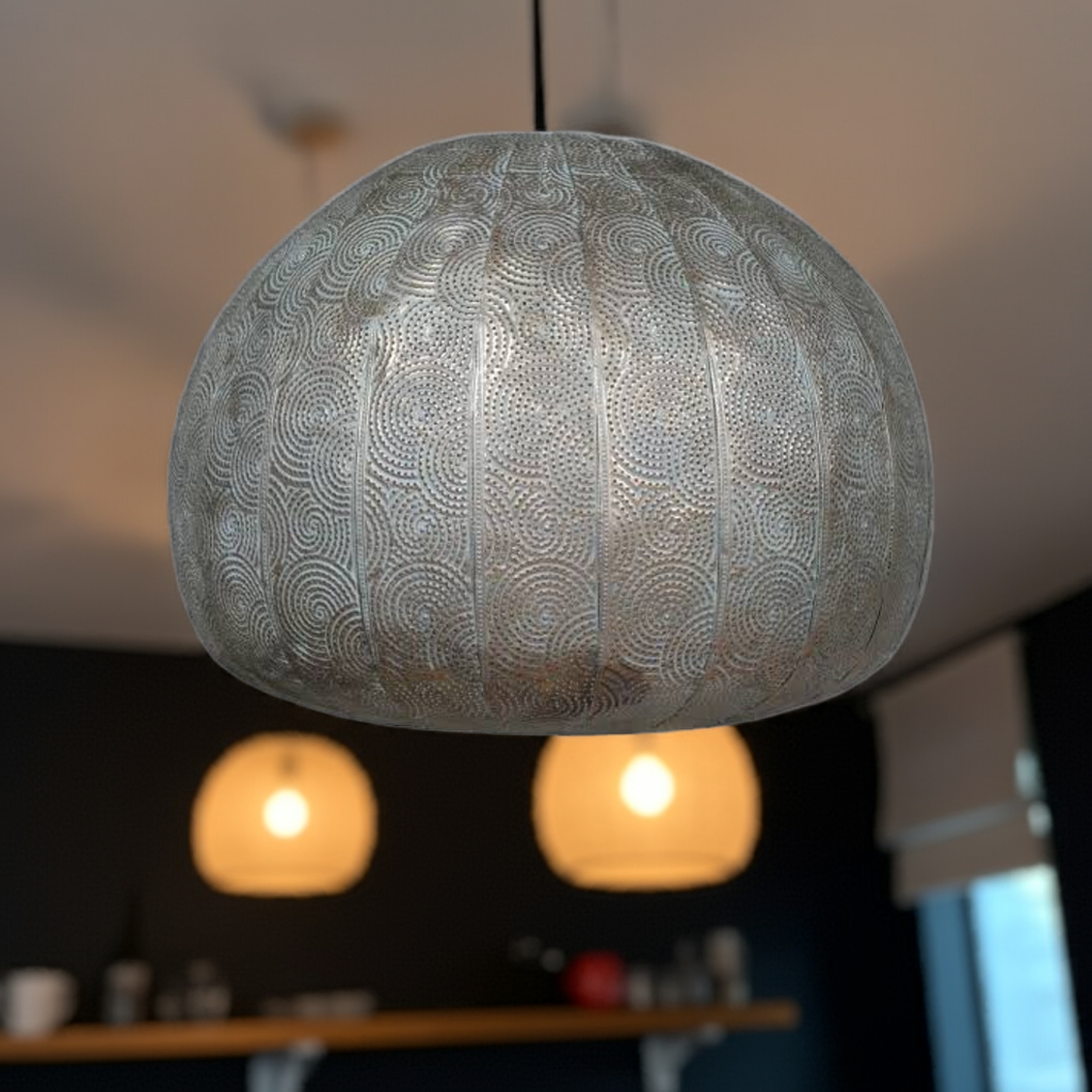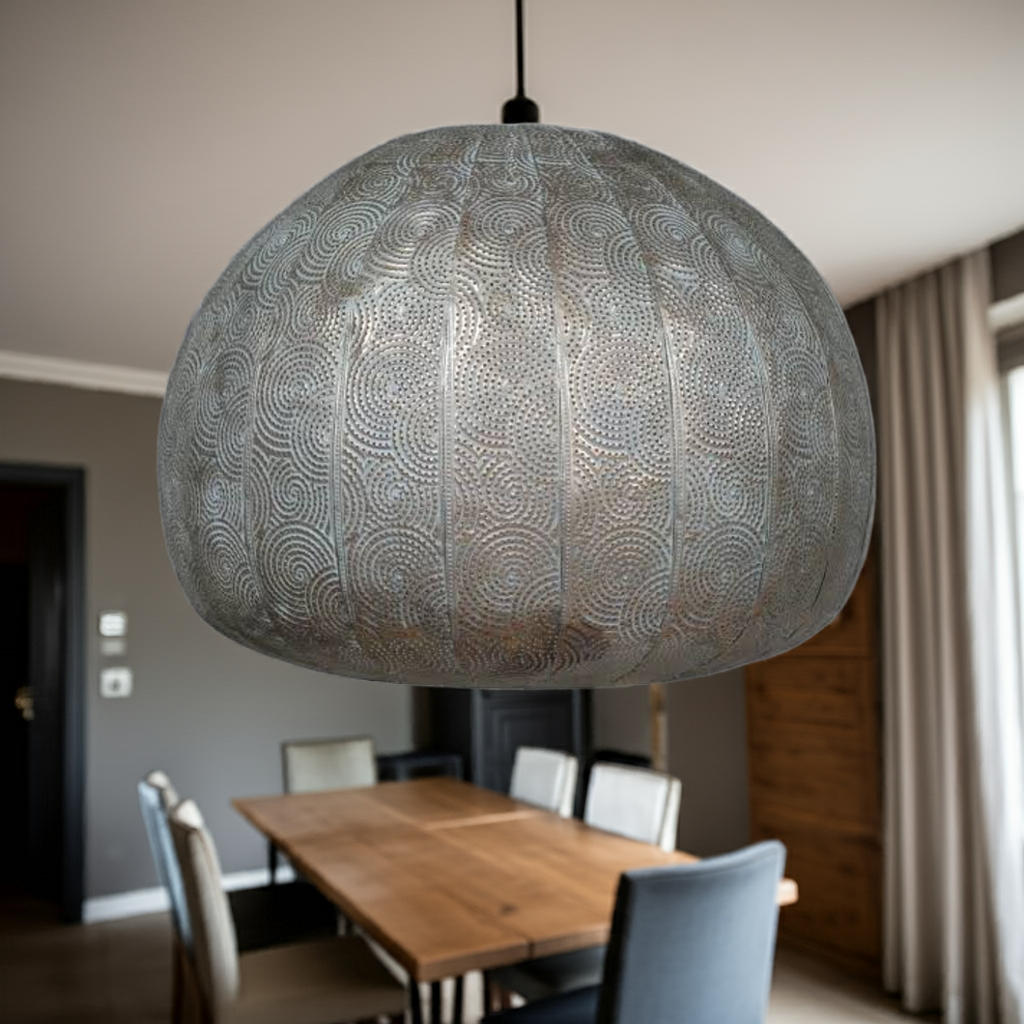 This elegant Ball Shape Metal Pendant Light Shade is an eye-catching addition to any room. Crafted out of a noble and graceful metallic silver design, its spherical lampshade features decorative punching's that reflect the light beautifully. Add a touch of luxury and elegance to your home.