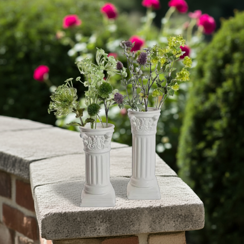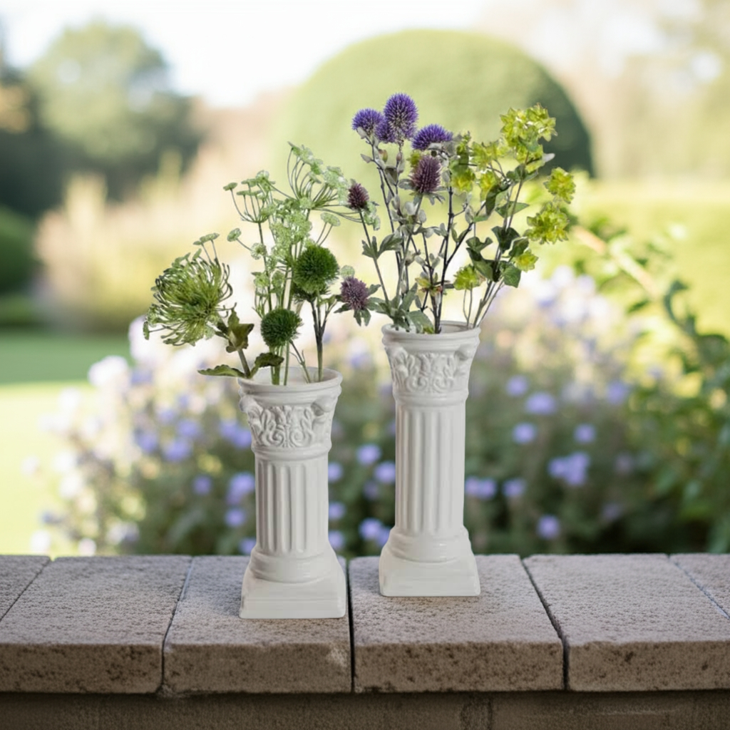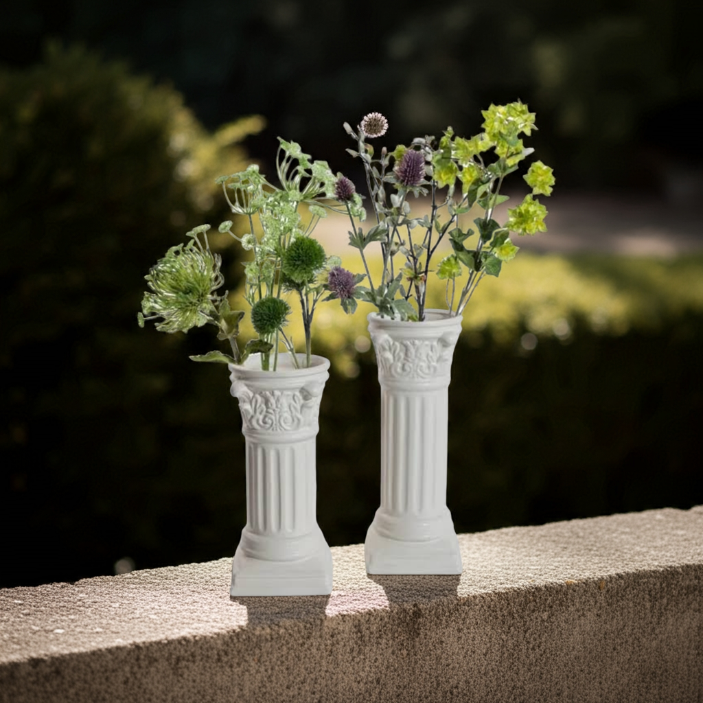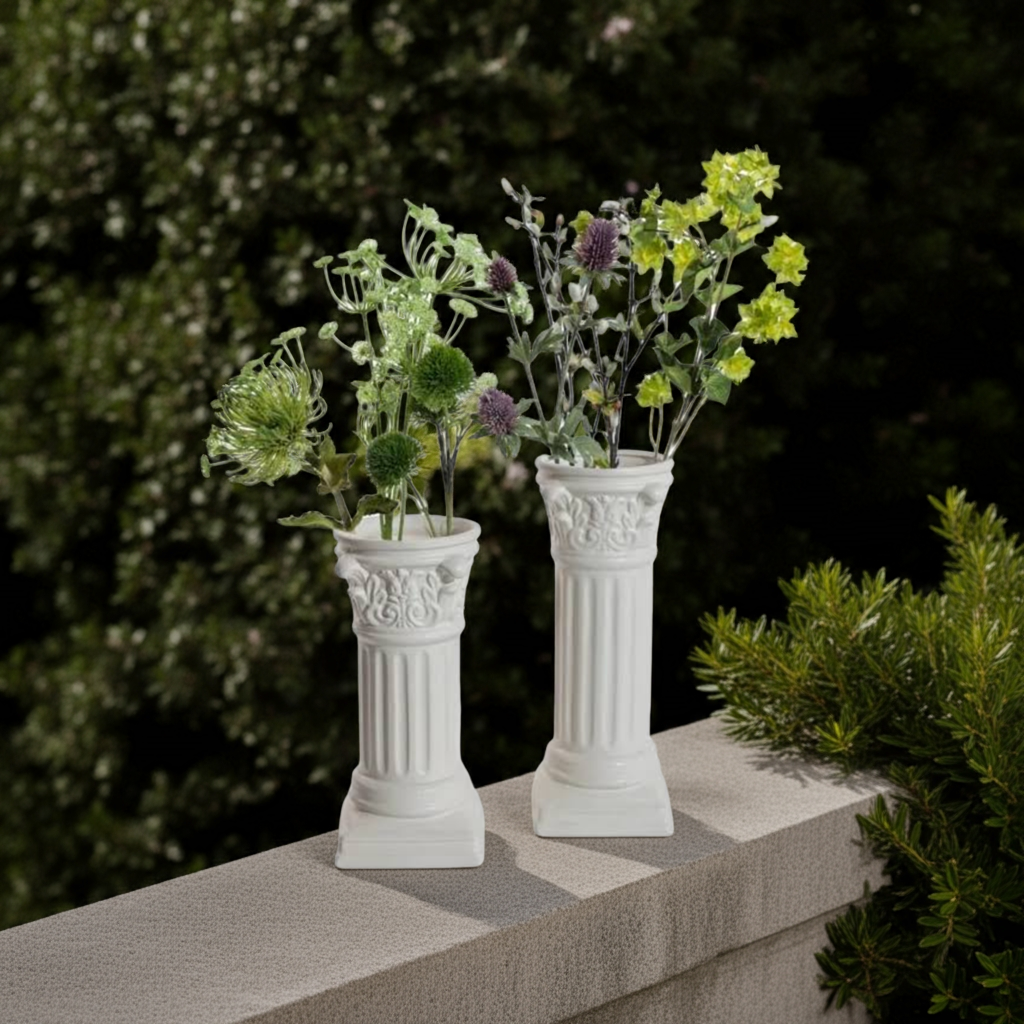 This ceramic vase boasts a stunning Corinthian column design and a sleek matt white finish. Perfect for indoor or outdoor use, this versatile piece adds a touch of elegance to any space, from patios to reception areas to offices. Crafted for both style and durability, this vase makes a sophisticated statement in any setting.