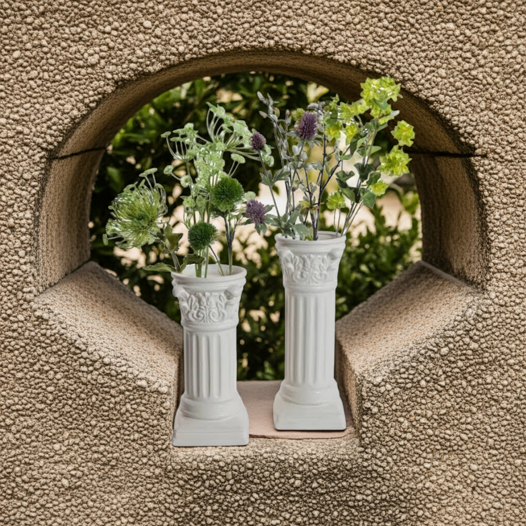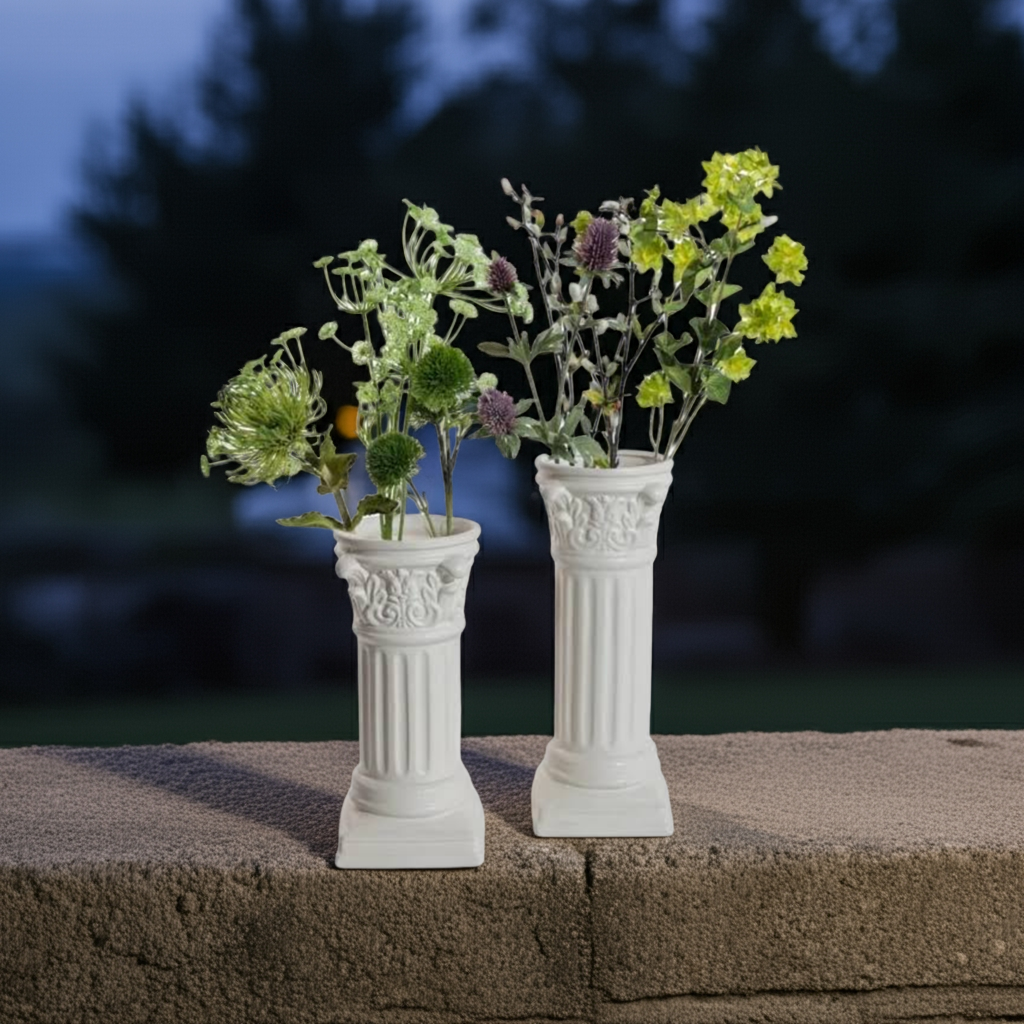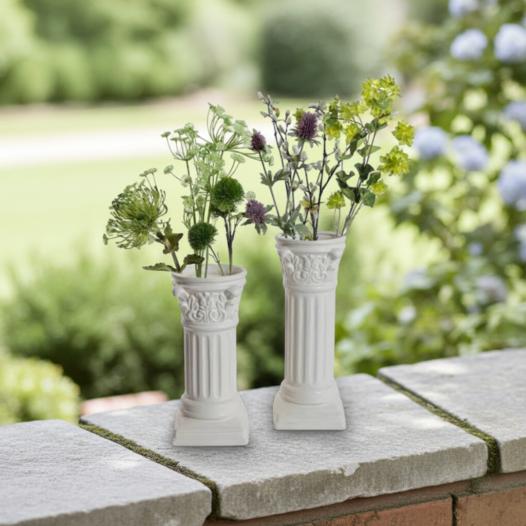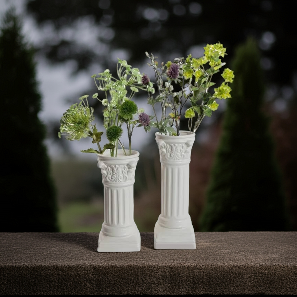 This ceramic vase boasts a stunning Corinthian column design and a sleek matt white finish. Perfect for indoor or outdoor use, this versatile piece adds a touch of elegance to any space, from patios to reception areas to offices. Crafted for both style and durability, this vase makes a sophisticated statement in any setting.