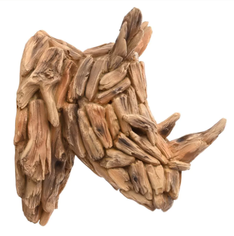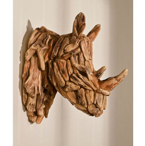 A visually striking Rhino Head Wall Art, made from resin but styled in driftwood. From Naturecraft – the one-stop shop for wildlife enthusiasts. This stunning figurine is a perfect match for any traditional or contemporary decor. Help people make a statement that they love these magnificent exotic creatures. This piece is hand painted and moulded in resin. It is not suitable for the outdoors. Designed to be hung up. Bring the outside in with this textured work of art.