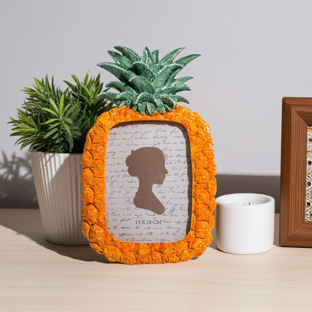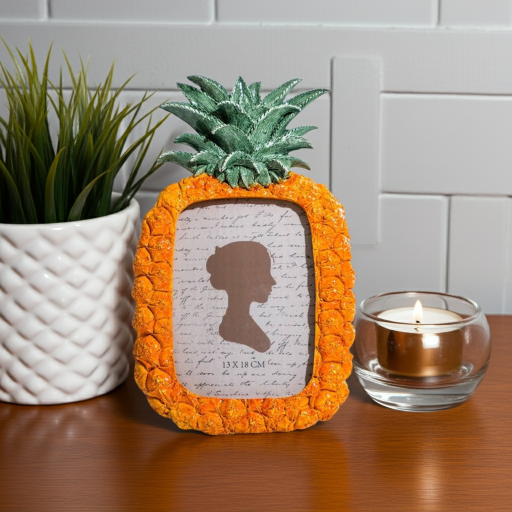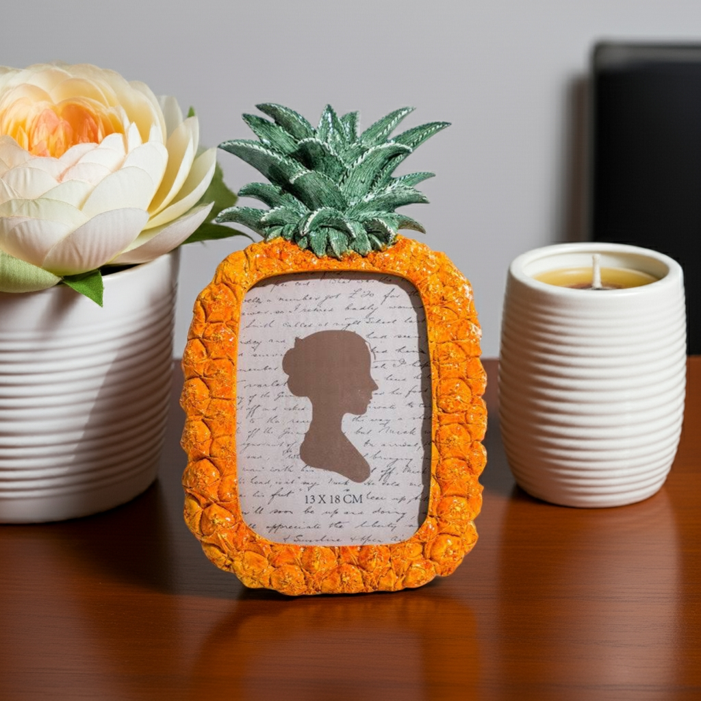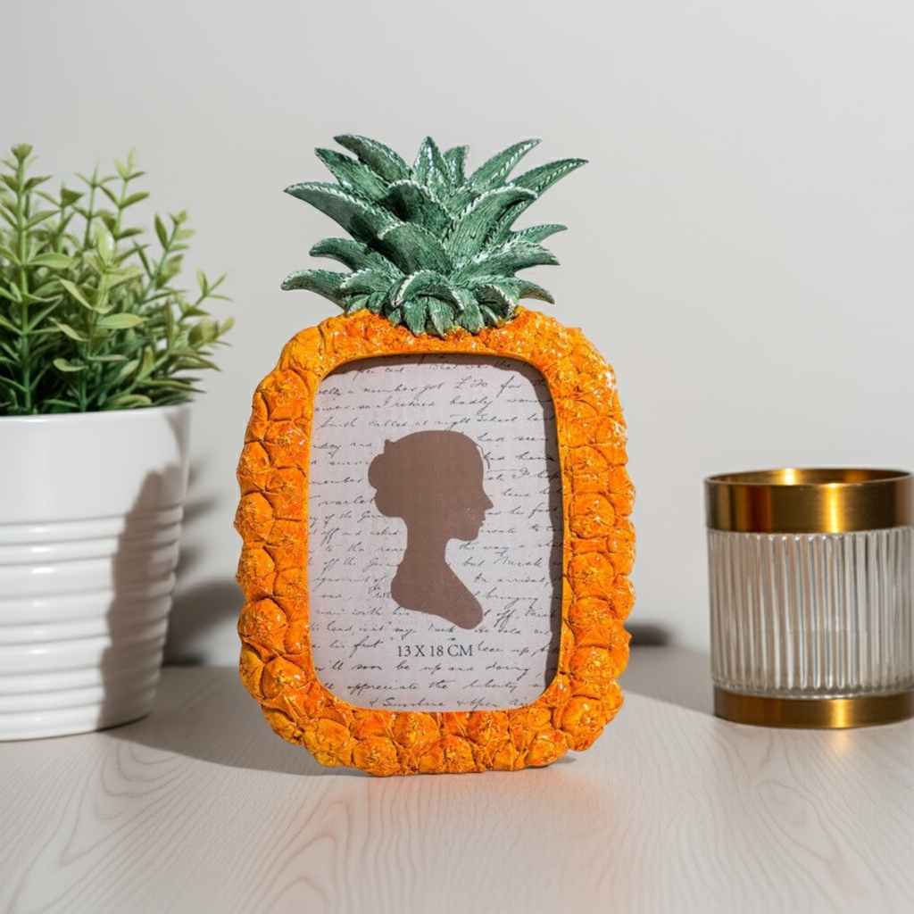 Display your favorite memories with our Pineapple Photo Frame. Made to fit 5x7" photos, this frame features a unique and stylish pineapple design. Crafted with high-quality materials, this frame will protect your photos while adding a touch of elegance to any room. Perfect for adding personality to your home decor.