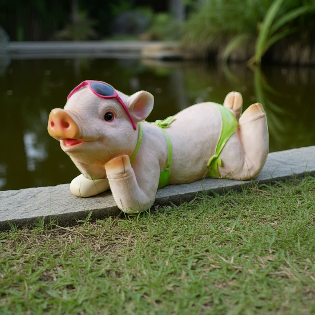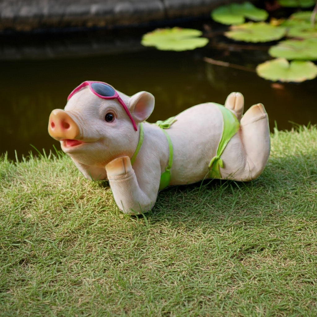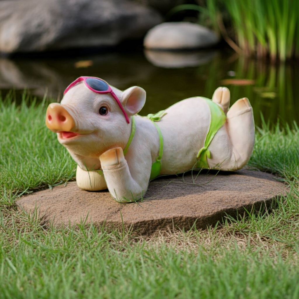 Add a touch of whimsy to your garden with our Relaxing Pig in Bikini Novelty Garden Ornament. This cute pig in a bikini is sure to catch the eye and bring a smile to your face. Made of high-quality resin materials, it's the perfect addition to any garden.