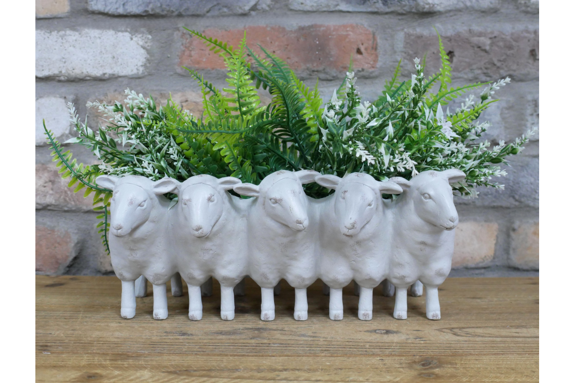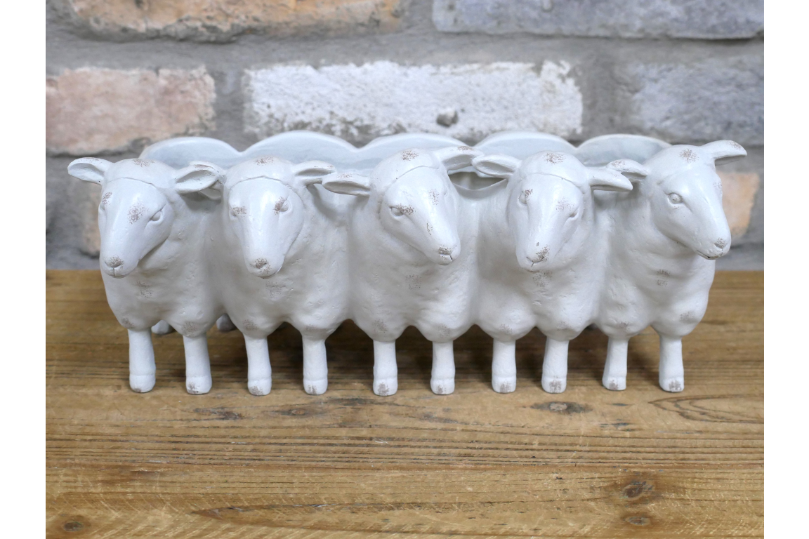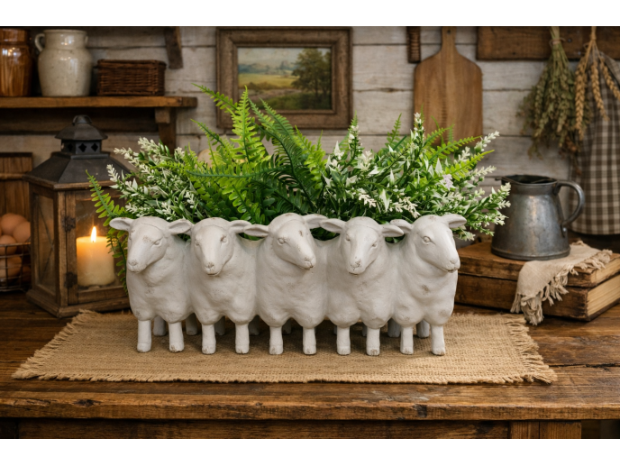 Bring whimsical charm to your space with this delightful Sheep Family Planter in cream. Expertly crafted from durable resin, this eye-catching piece features adorable sheep figures that add personality to any room. Perfect for displaying succulents, small plants, or decorative botanicals, it combines functional design with playful aesthetics. An ideal accent for shelves, desks, or garden displays that sparks conversation and brings a smile to visitors.