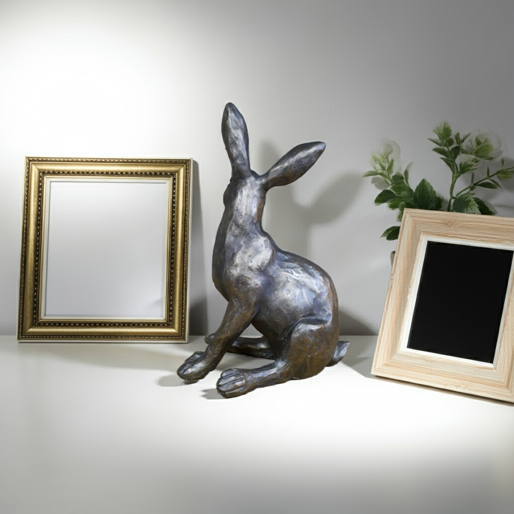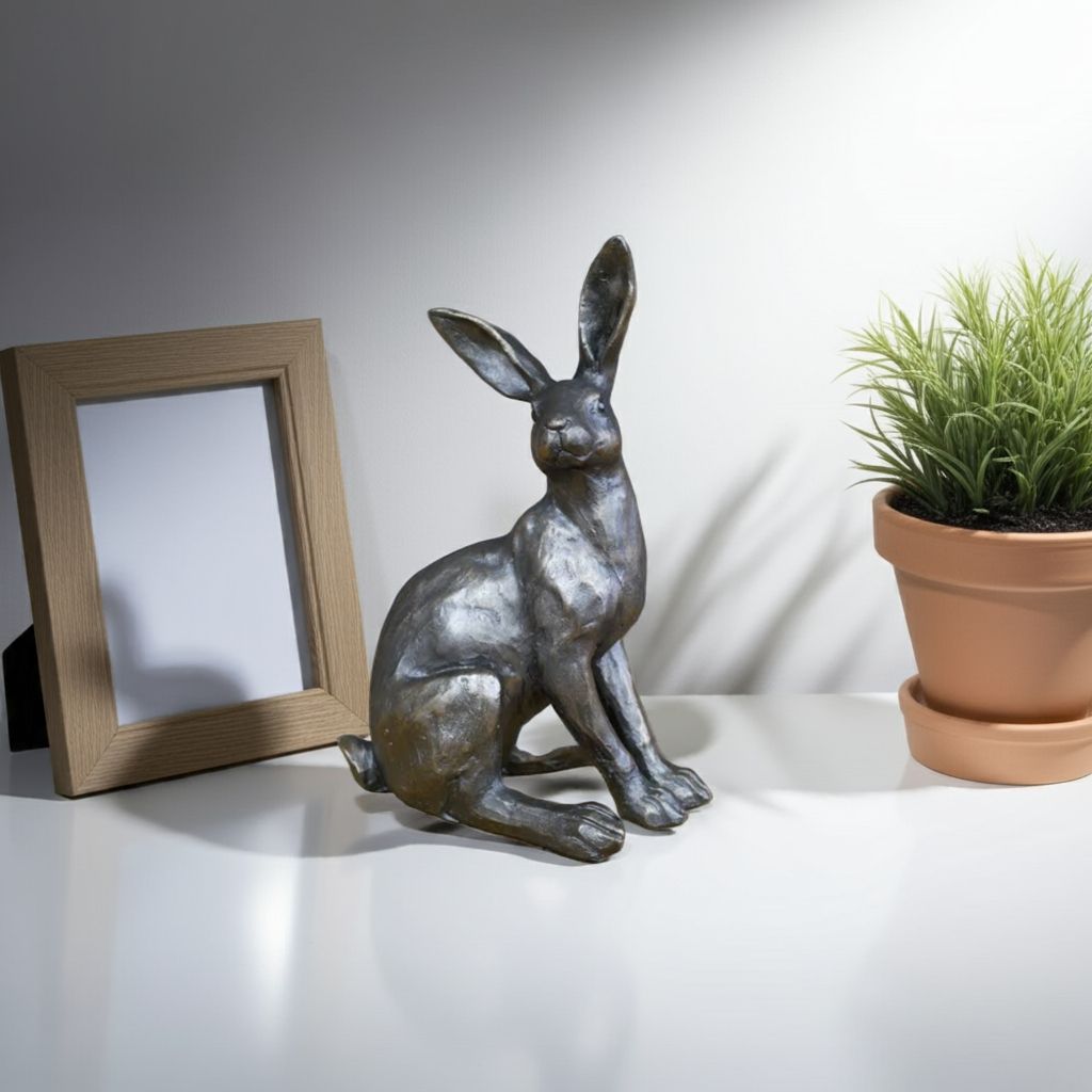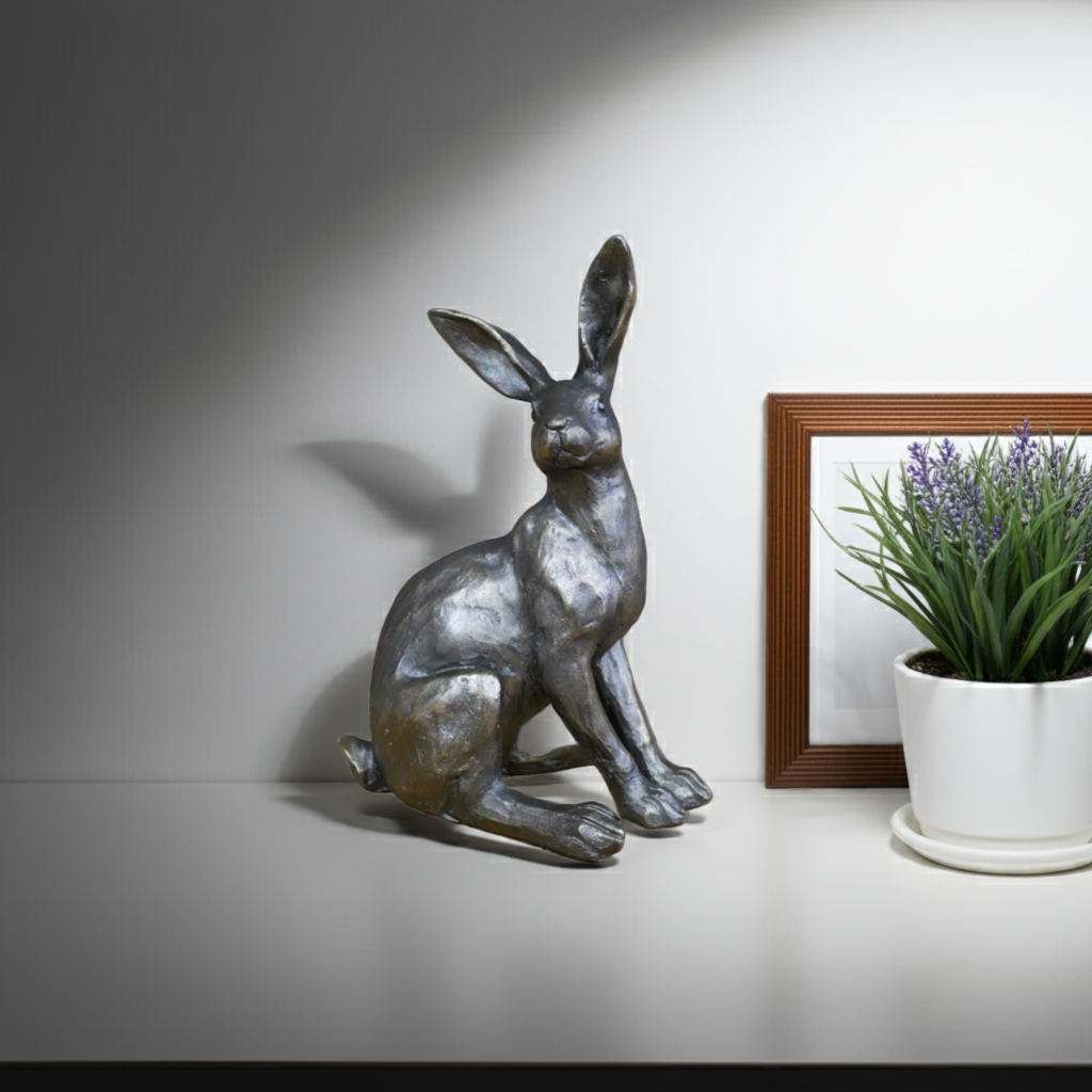 Add charm and whimsy to your indoor or outdoor space with our Sitting Hare/Rabbit Ornament. Made from durable resin material, this cute and charming sculpture is the perfect addition to any home decor. Bring a touch of nature indoors with this expertly crafted piece.