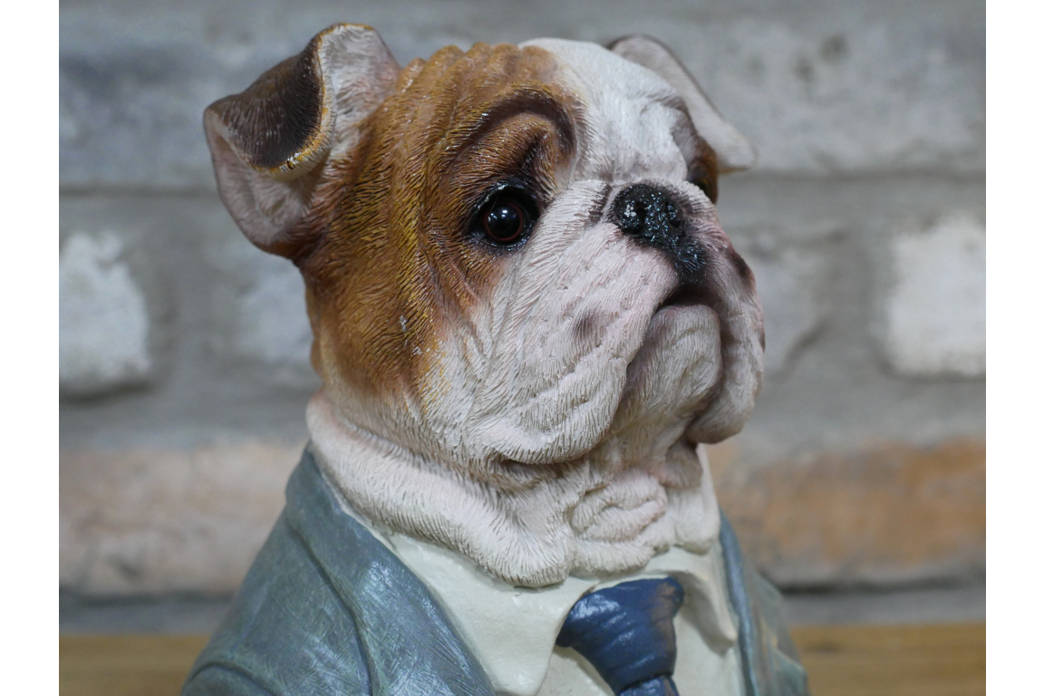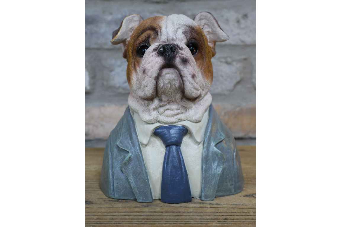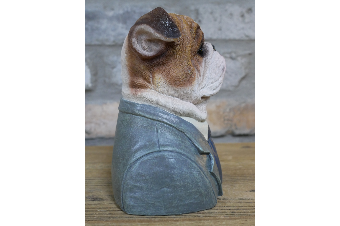 Small Bulldog Bust Ornament This charming resin bulldog bust captures the breed's distinctive character with impressive detail. Crafted from durable resin, it showcases authentic facial features and expression that dog enthusiasts will appreciate. Perfect as a decorative accent for shelves, desks, or display cabinets, this ornament celebrates the bulldog's endearing personality. An ideal gift for breed lovers or a thoughtful addition to any home décor collection.