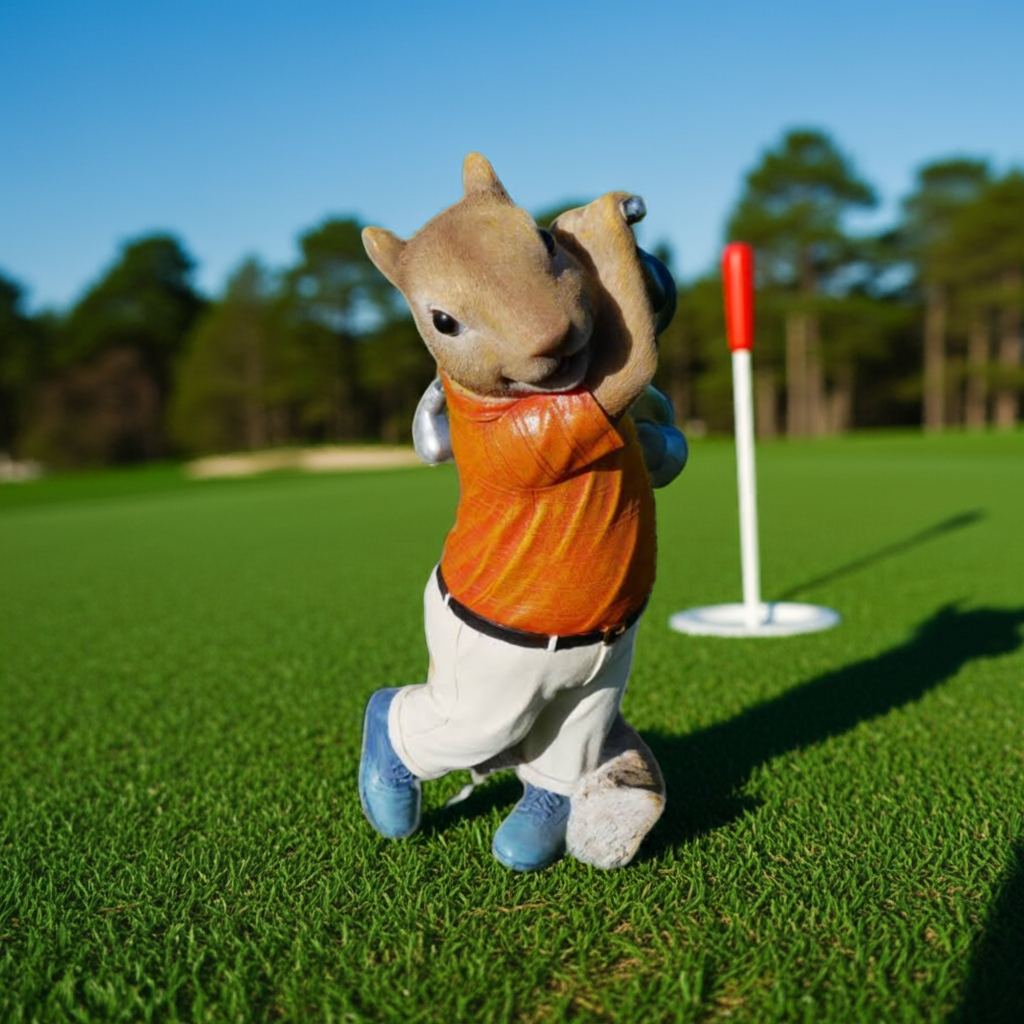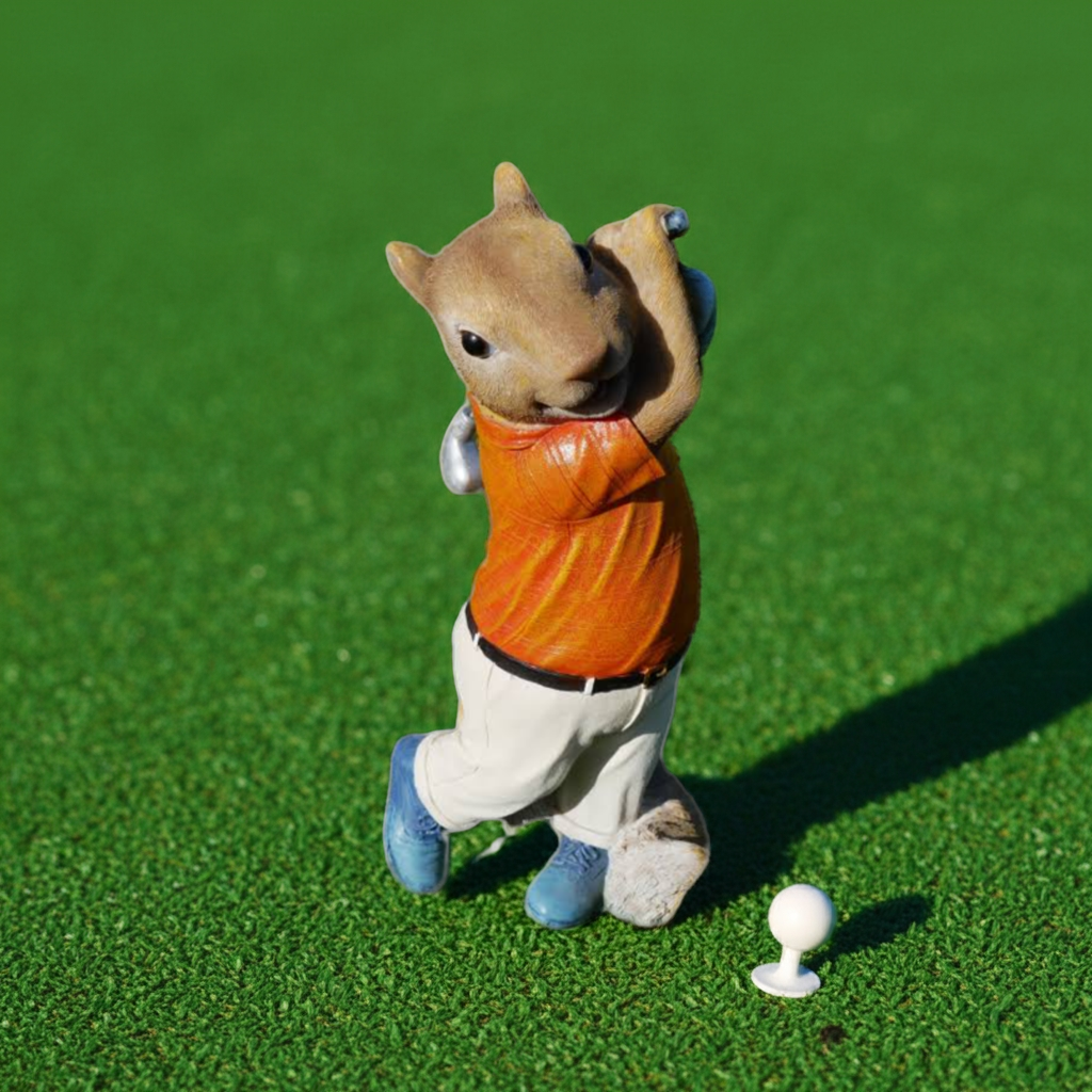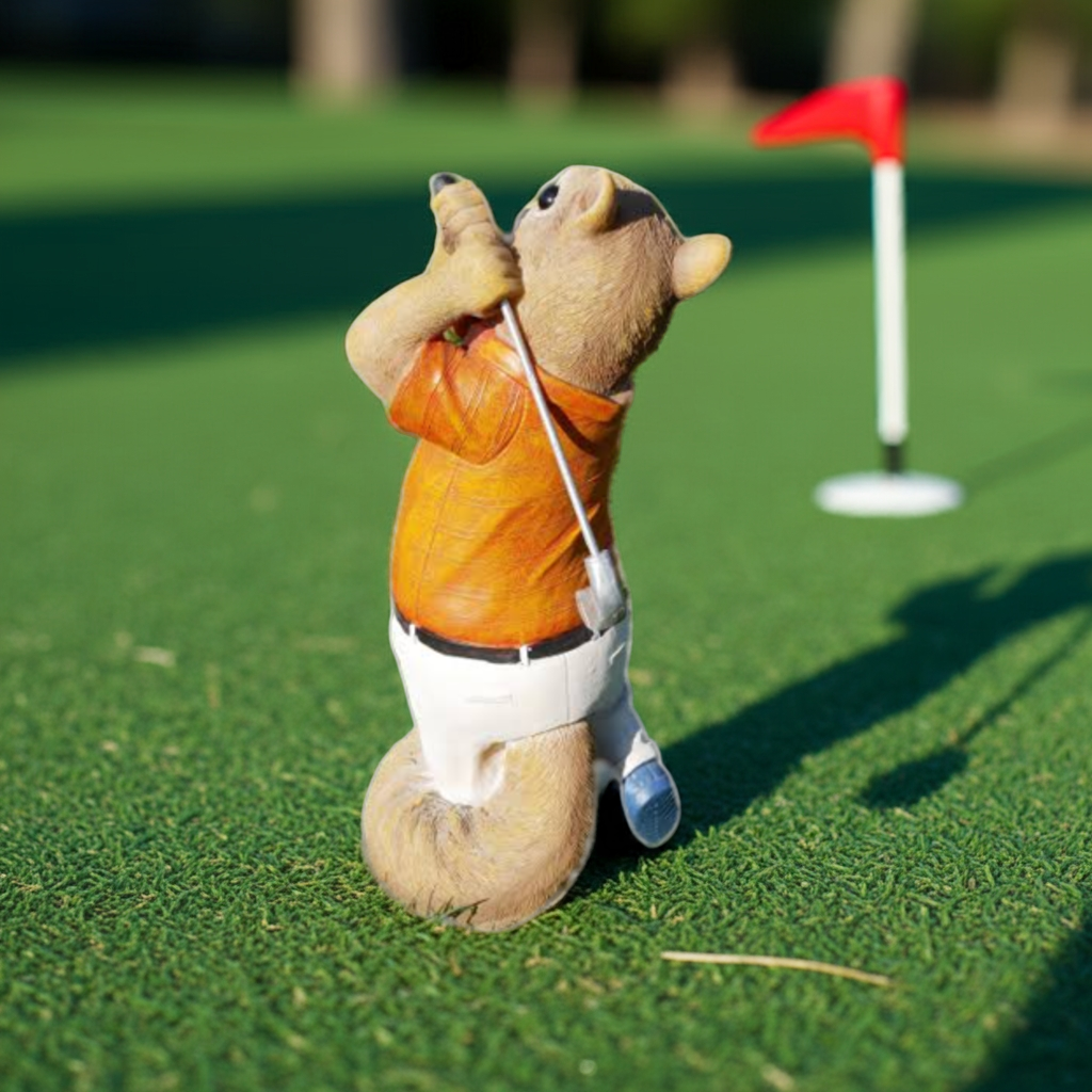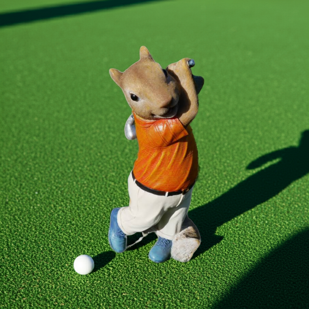 Enhance your garden with our charming and eye-catching Squirrel Golfer, crafted from high quality resin. This adorable piece is a must-have for any garden, adding a touch of cuteness and charm. Perfect for any golf lover or nature enthusiast.