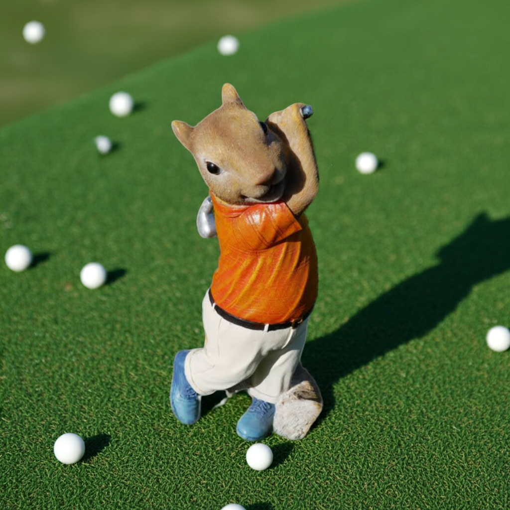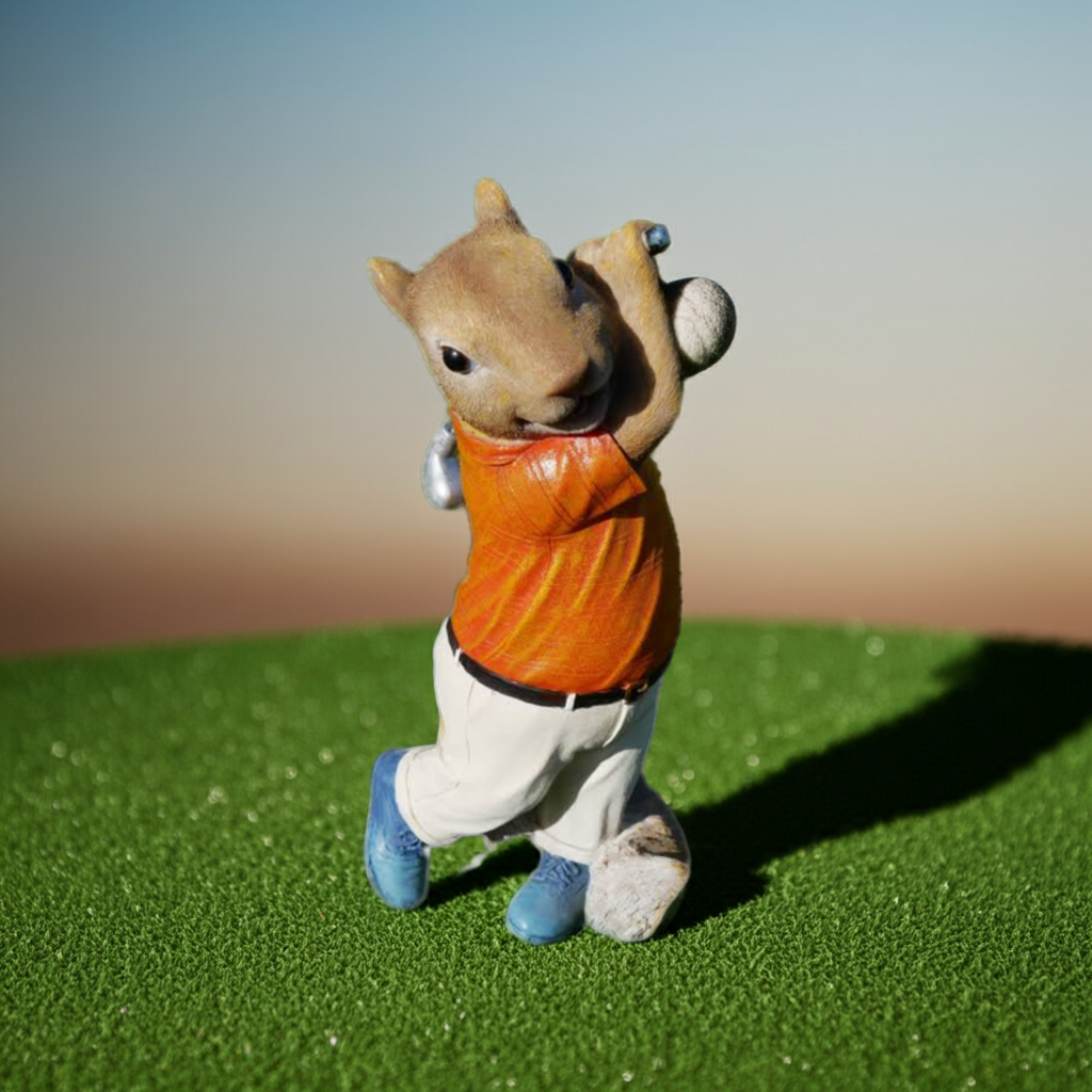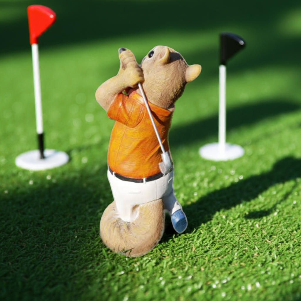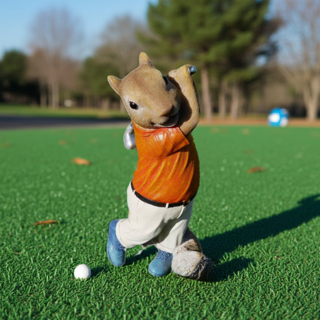 Enhance your garden with our charming and eye-catching Squirrel Golfer, crafted from high quality resin. This adorable piece is a must-have for any garden, adding a touch of cuteness and charm. Perfect for any golf lover or nature enthusiast.