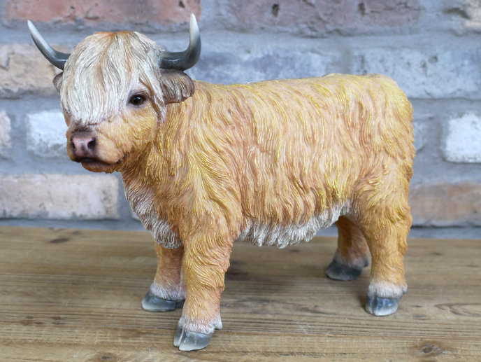 This expertly crafted Standing Highland Cow ornament is made from durable resin, capturing the distinctive charm of the Highland breed with meticulous detail. Designed for both indoor and outdoor use, it offers a lasting decorative touch for enthusiasts and collectors alike. Its resilient material ensures it withstands various environments while adding character to any space.