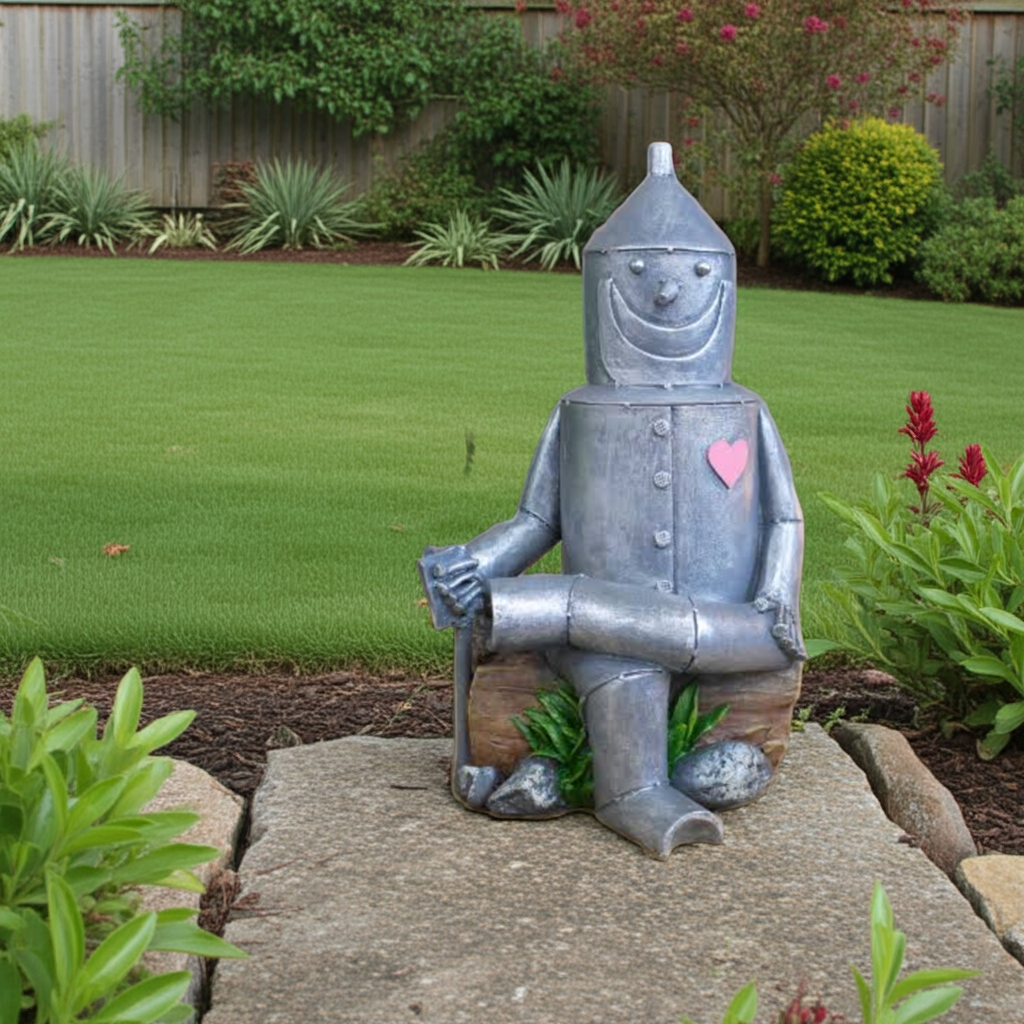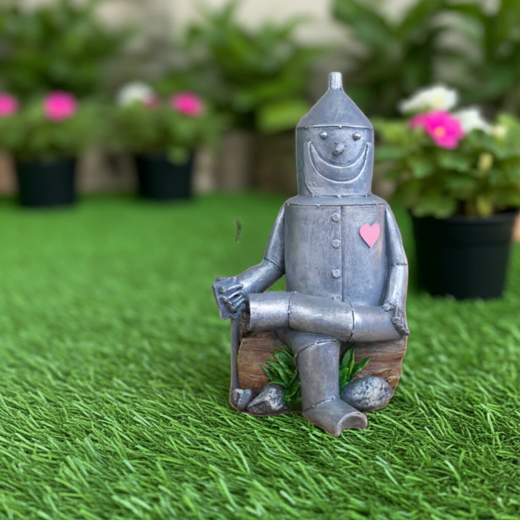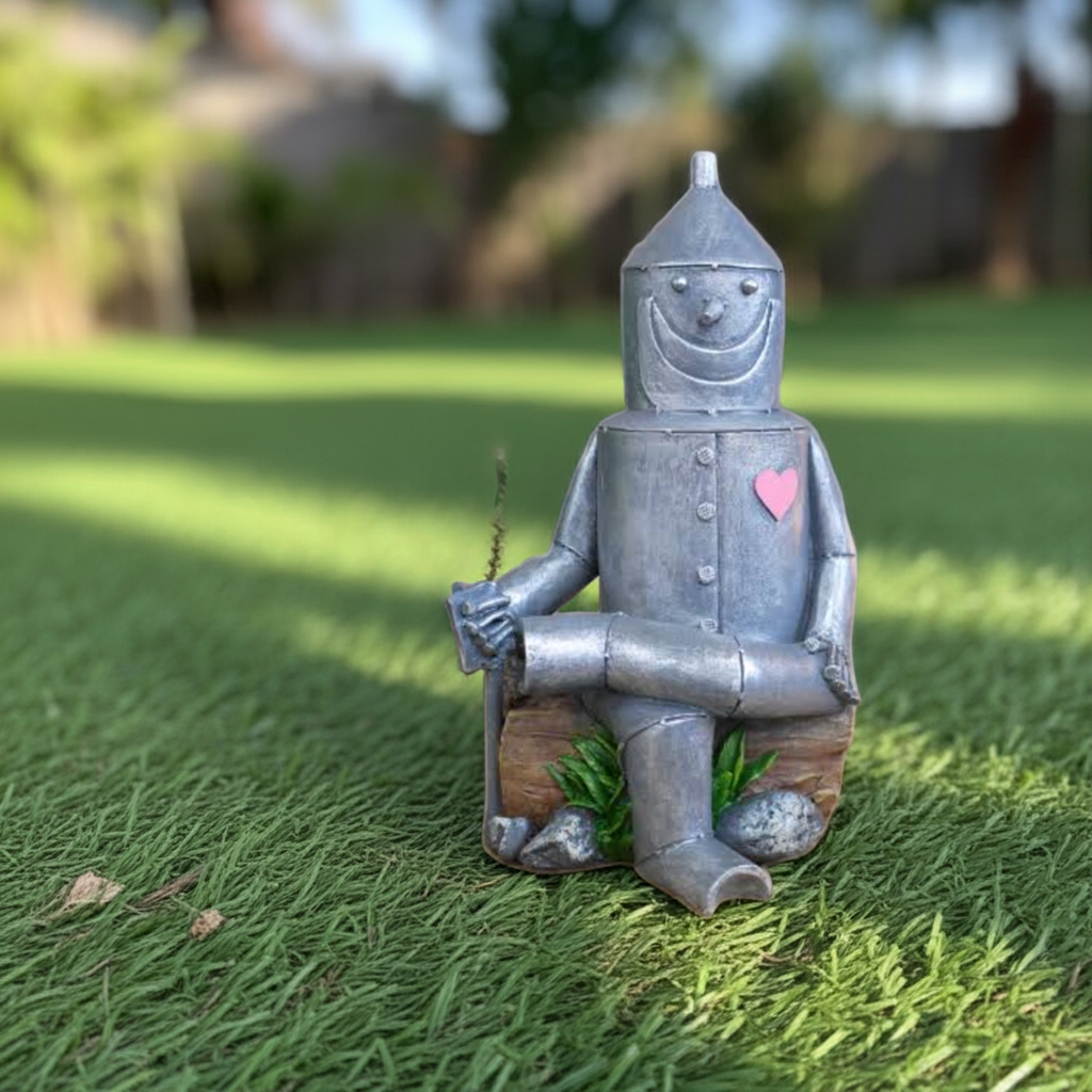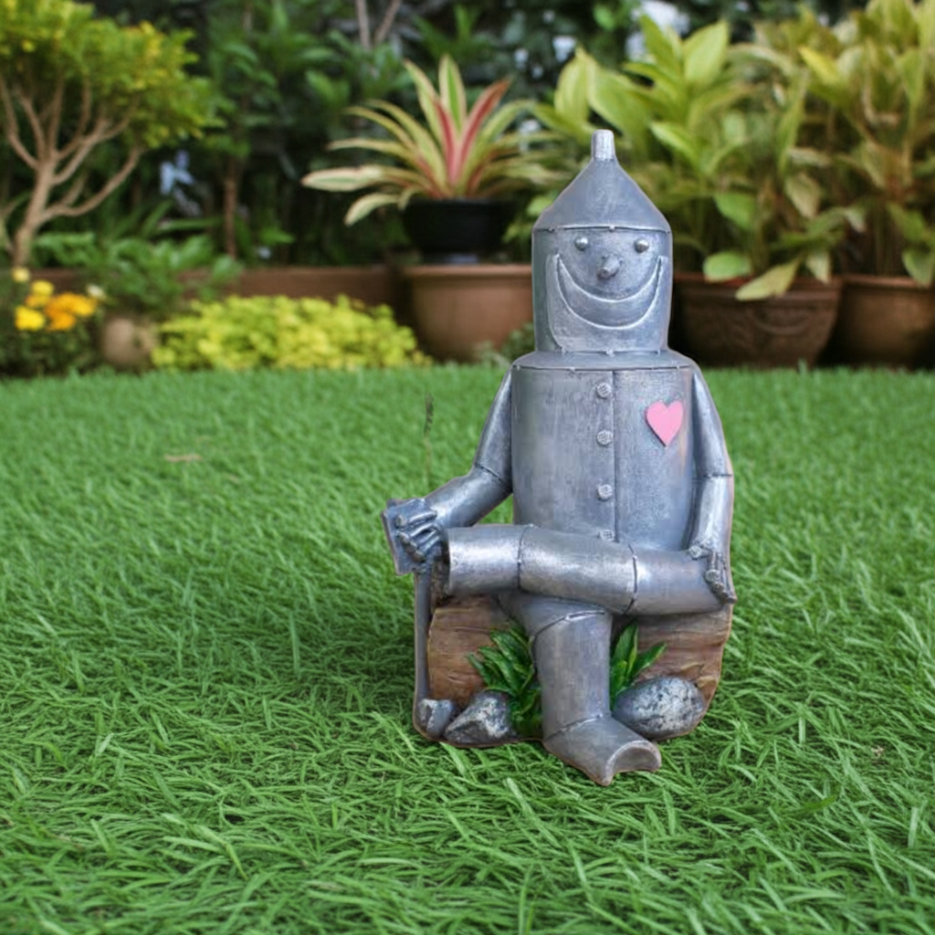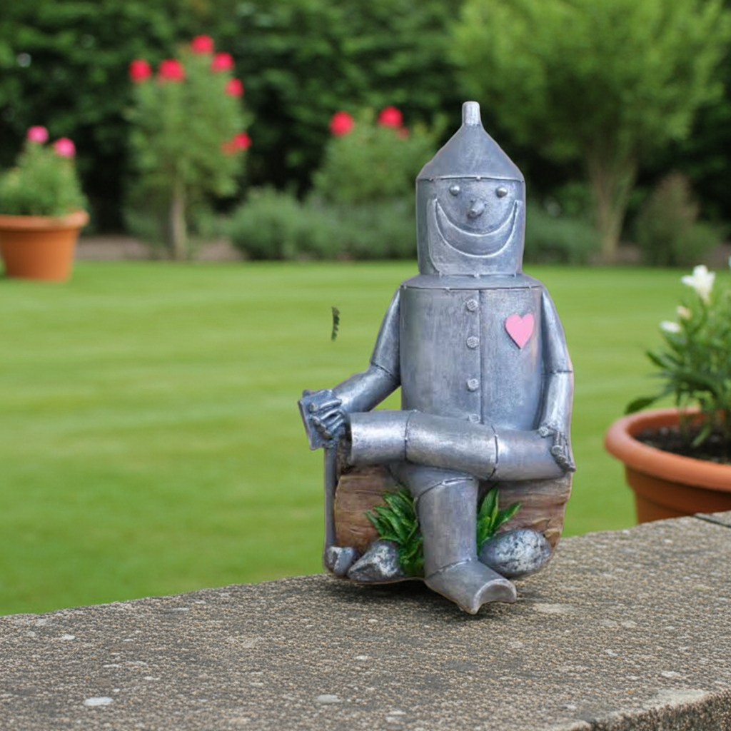 Crafted from durable resin, the Tin Man Sat On A Log combines lasting quality with charming design. Its eye-catching appearance adds a whimsical touch to any space, making it an ideal decorative piece that stands out while enduring everyday display. Perfect for collectors or as a unique accent, this figure brings both character and resilience to your decor.
