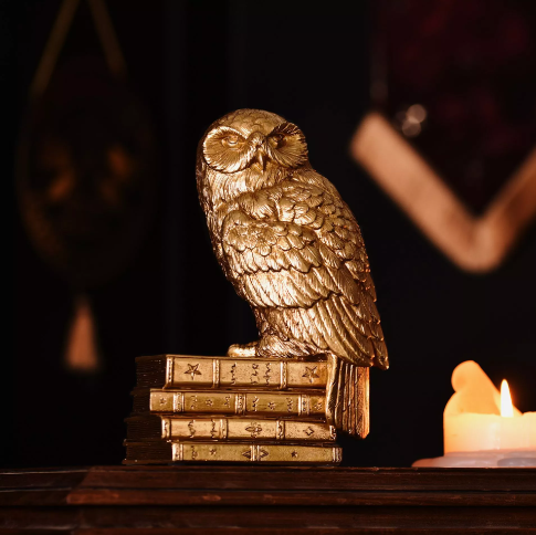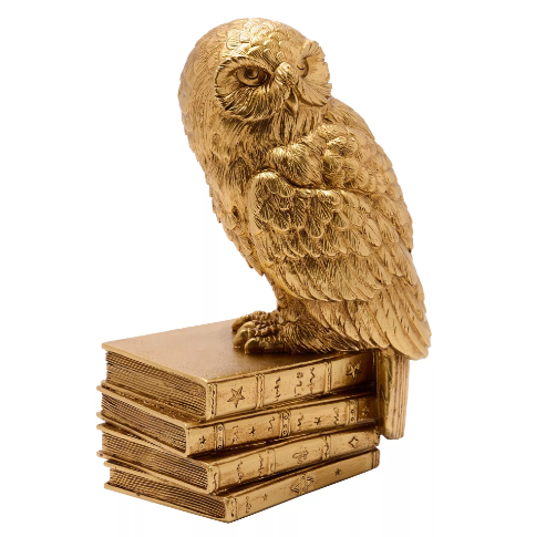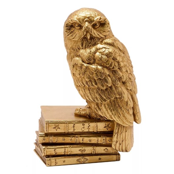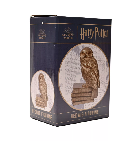Bring the magic of Hogwarts into your home with this stunning Hedwig figurine from the Harry Potter collection by WARNER BROS®. Standing 20cm tall, this iconic owl features a premium gold resin construction with a lustrous metallic finish and intricate 3D Hogwarts detailing. Perfect for devoted fans of the wizarding world, Hedwig makes an enchanting display piece for shelves, desks, or collector's cabinets. The figurine's sturdy design ensures secure positioning anywhere in your home, making it an ideal gift for Harry Potter enthusiasts of all ages. Celebrate your Hogwarts legacy with this timeless ornamental treasure that captures the essence of one of cinema's most beloved characters.