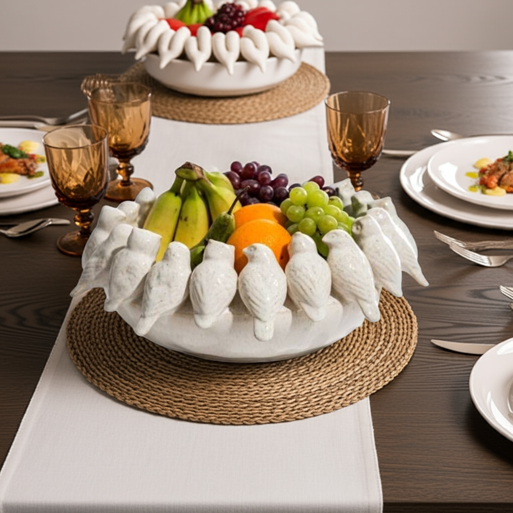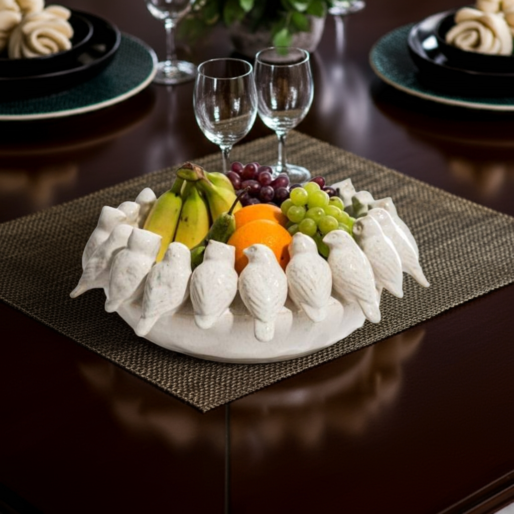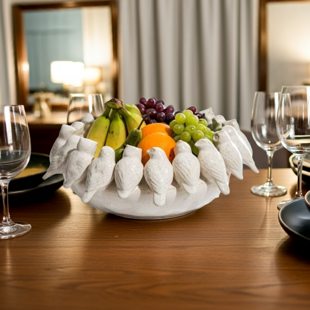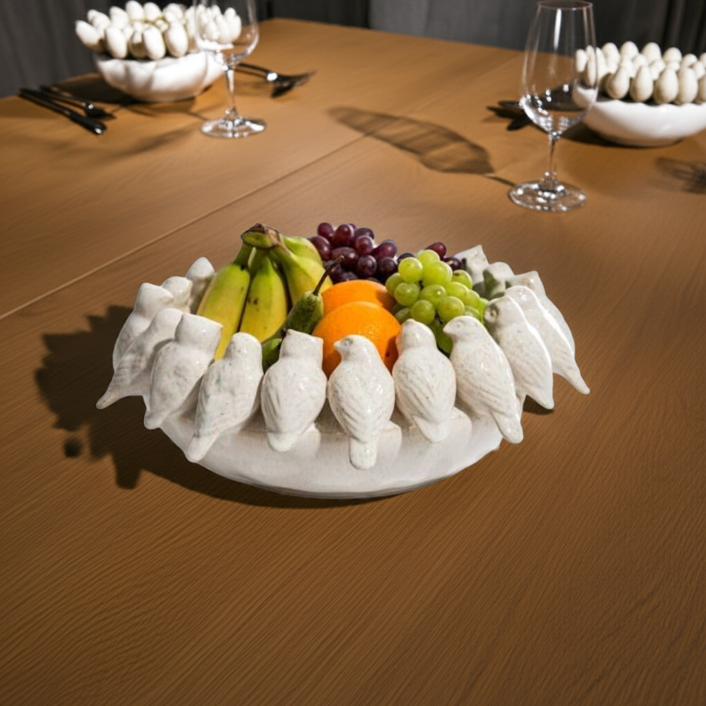 Expertly crafted for bird enthusiasts, our White Ceramic Flock of Birds Bowl is a stunning addition to any home. Its eye-catching design is sure to impress, while its high quality ceramic material ensures durability. Perfect for displaying or use as a functional bowl, this piece is a must-have for any nature lover.