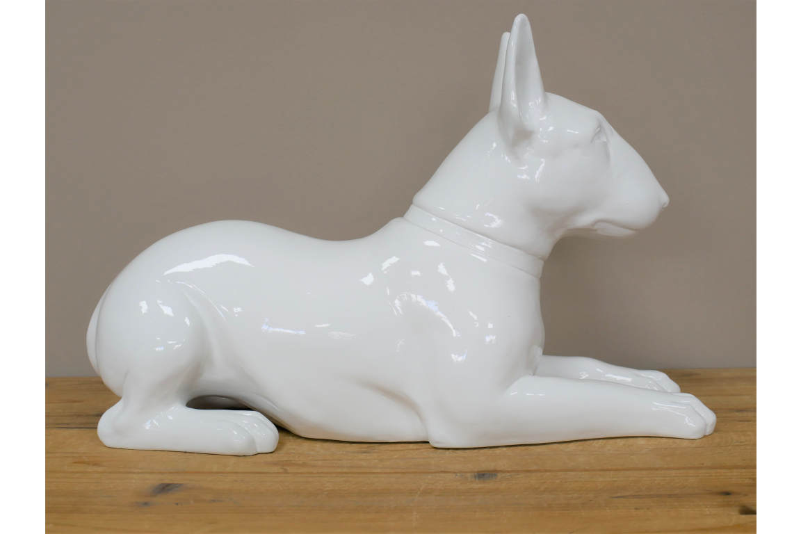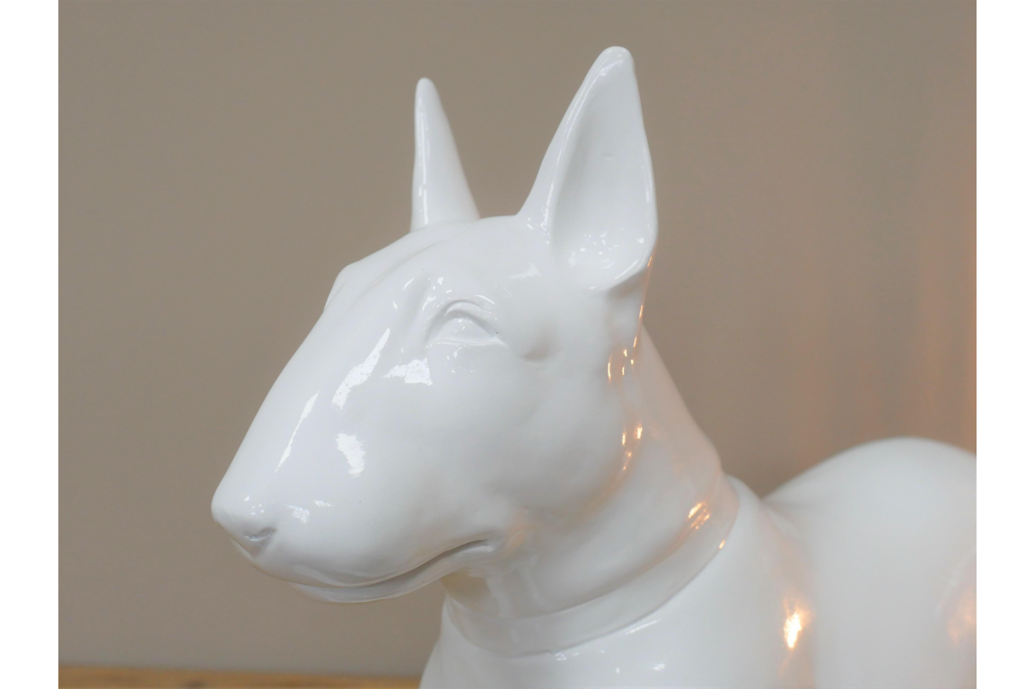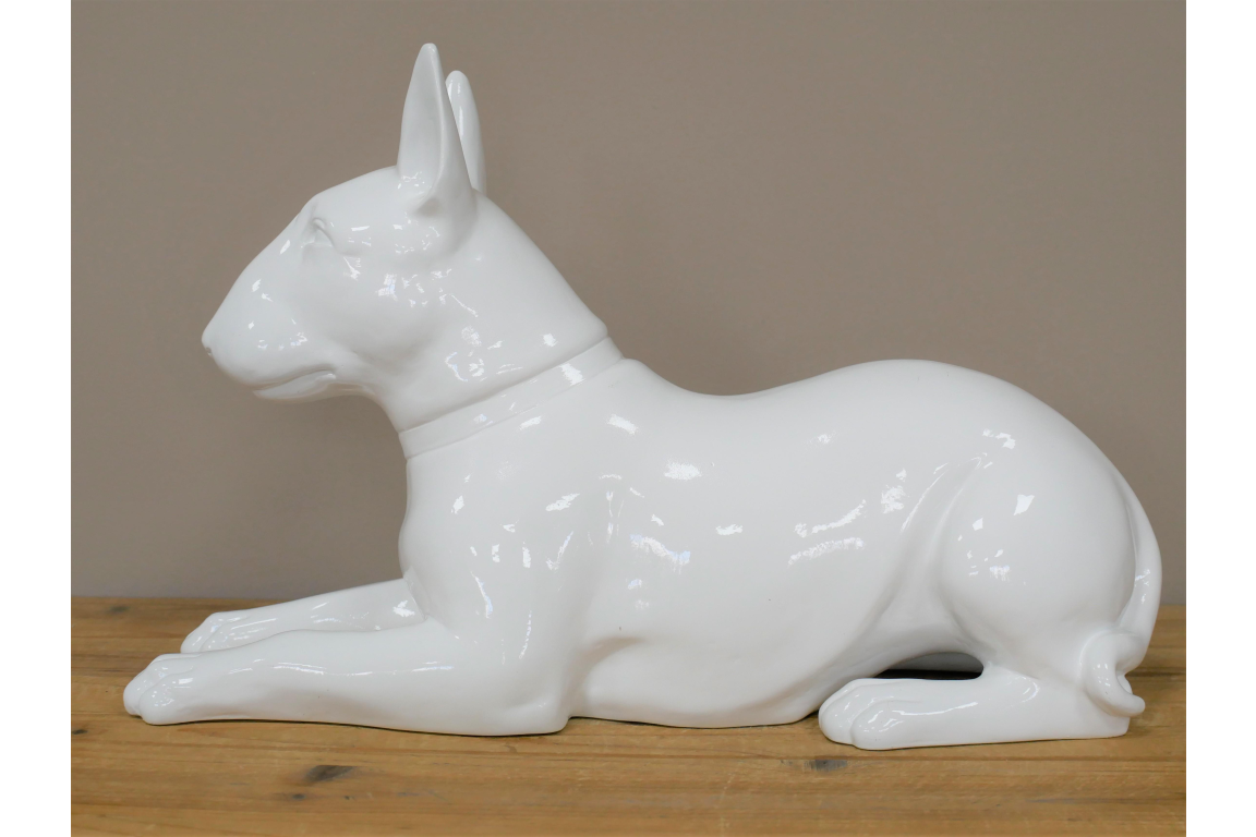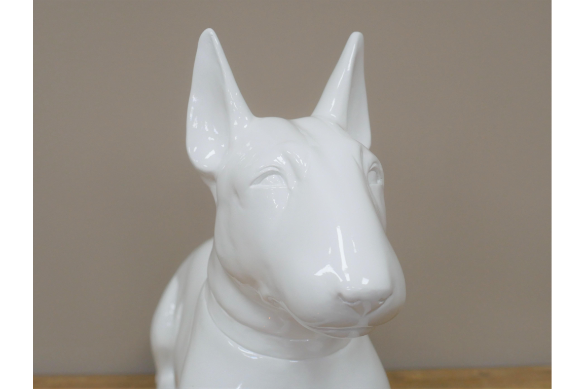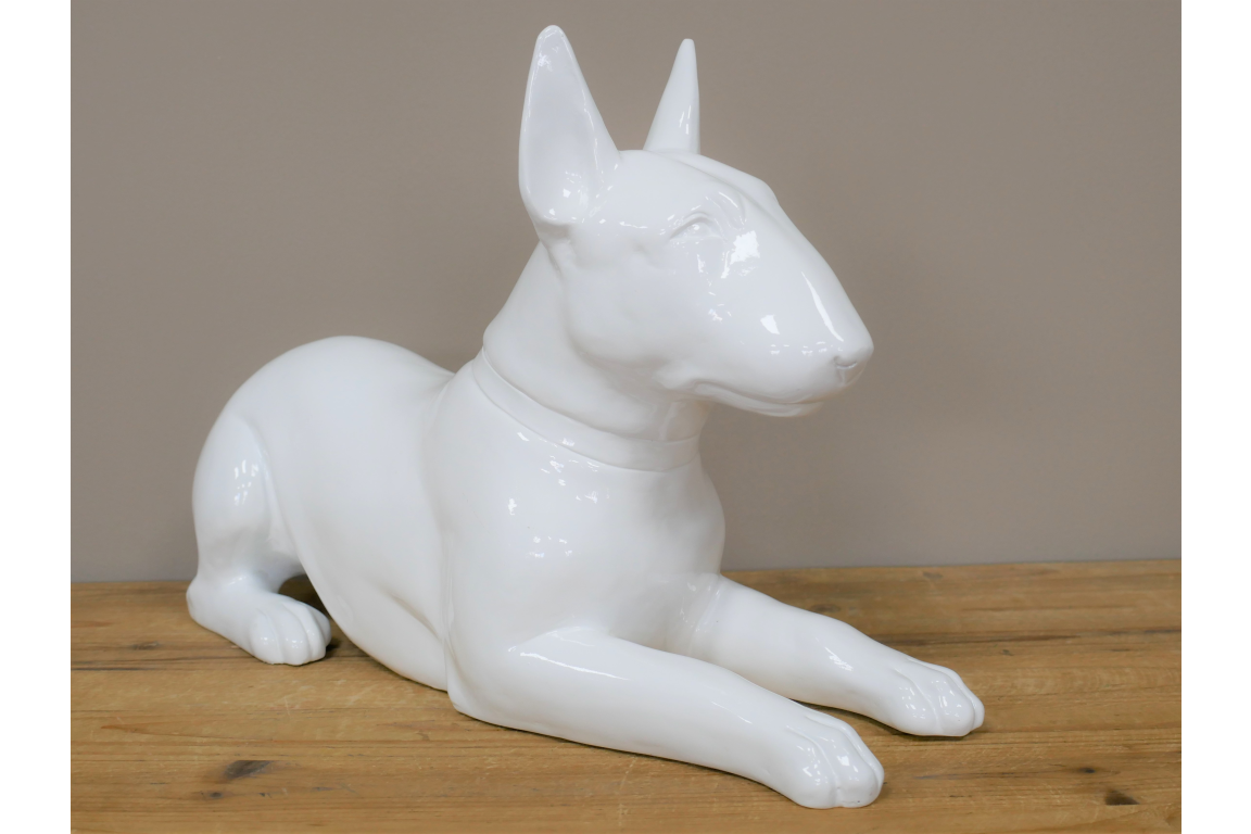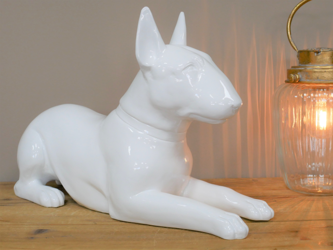 Celebrate your passion for English Bull Terriers with this striking white resin ornament. Meticulously crafted to capture the breed's distinctive features and confident character, this piece makes an ideal gift for devoted enthusiasts. Built from durable resin, it withstands both indoor display and outdoor garden settings without compromising its pristine finish. Whether adorning a shelf, mantelpiece, or outdoor space, this ornament serves as a meaningful tribute to these beloved companions.