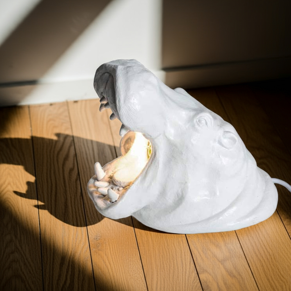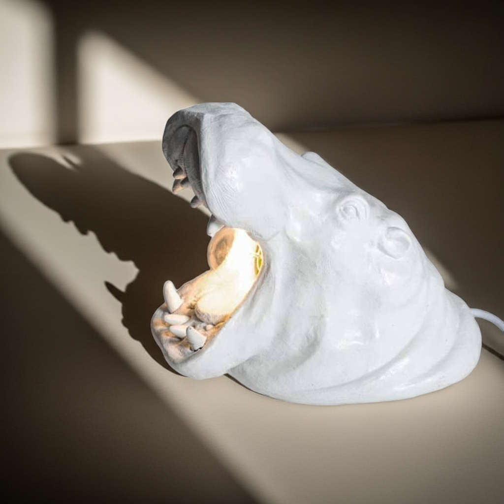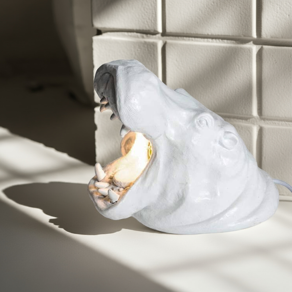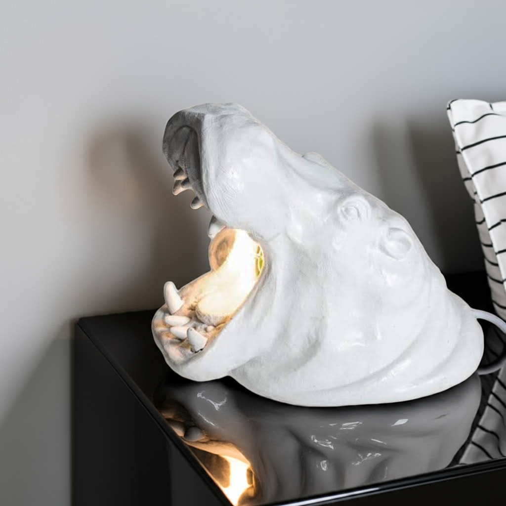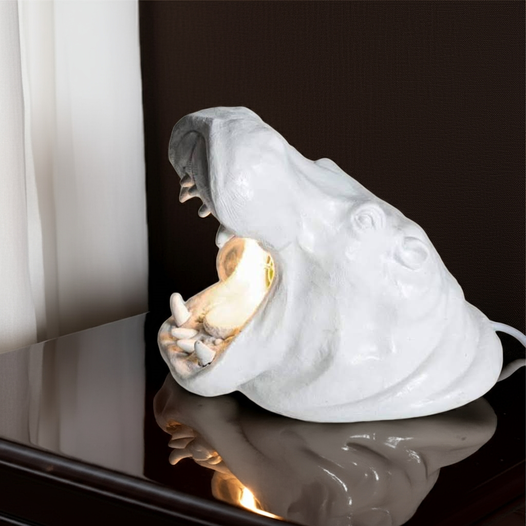Introducing the White Roaring Hippo Table Lamp, expertly handcrafted for those who appreciate the beauty of wild life. With its captivating design and attention to detail, this lamp is perfect for any wildlife lover's home. Enjoy the warm glow of the lamp while being reminded of the majestic power of the hippo.